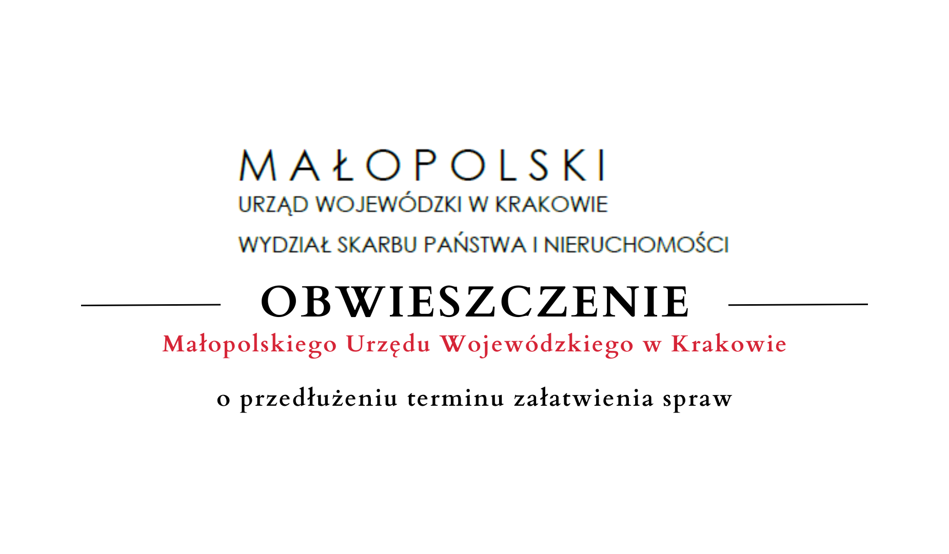 ograniczenia w sposobie korzystania z części nieruchomości położonych w Mordarce i Pisarzowej, ujętych w załączniku do obwieszczenia Wojewody Małopolskiego z dnia 28 października 2024 r. znak: jw., objętych decyzją Wojewody Małopolskiego z dnia 2 czerwca 2023 r. znak: WI-IV.747.2.1.2023, o ustaleniu lokalizacji linii kolejowej dla inwestycji pn.: „Rozbiórka, przebudowa, rozbudowa i budowa obiektu budowlanego pn.: linia kolejowa nr 104 Chabówka - Nowy Sącz na odc. D od km 48+600 (km istn. 49+822) do km 61+220 (km istn. 63+965) wraz z infrastrukturą techniczną wzdłuż linii kolejowej nr 104 na odcinku od km 48+600 (km istn. 49+822) do km 61+581 (km istn. 64+321), realizowanej w ramach projektu: Budowa nowej linii kolejowej Podłęże – Szczyrzyc – Tymbark /Mszana Dolna oraz modernizacja istniejącej linii kolejowej nr 104 Chabówka – Nowy Sącz – Etap I: prace przygotowawcze”, w związku z realizacją inwestycji kolejowej obejmującej budowę lub przebudowę tunelu, a także prace związane z jego konserwacją, utrzymaniem lub usuwaniem awarii, tut. Wydział uprzejmie informuje, że postępowania te nie mogą być zakończone w terminie, z powodu konieczności dalszego kompletowania materiału dowodowego umożliwiającego ustalenie czy, a jeśli tak, to w jakich wysokościach przysługiwać będą odszkodowania z tytułu ograniczenia w sposobie korzystania z części tych nieruchomości.