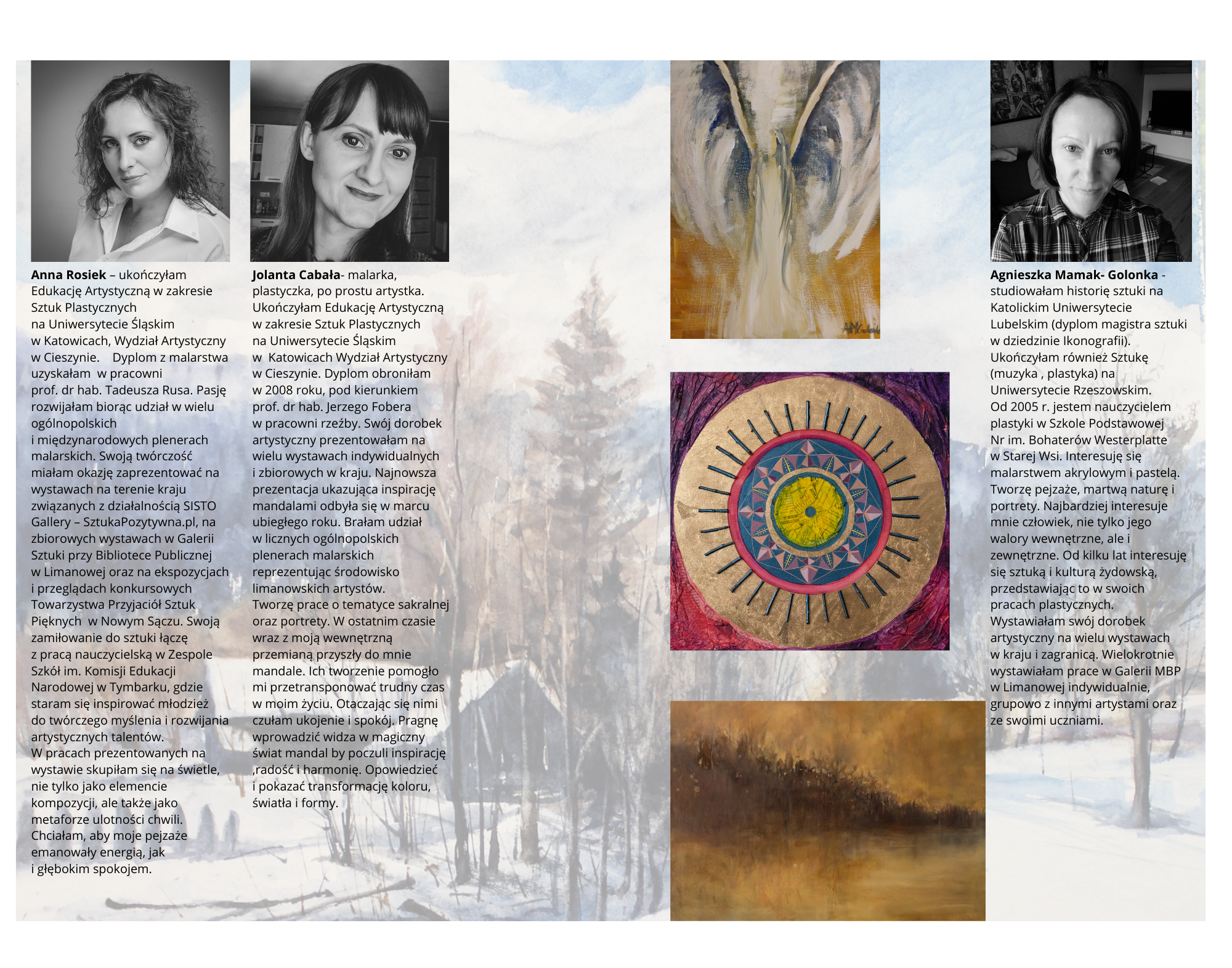 Miejska Biblioteka Publiczna w Limanowej serdecznie zaprasza na wernisaż wystawy Kolory światła w malarstwie Jolanty Cabały, Marioli Kozioł - Rusnarczyk, Agnieszki Mamak - Golonki, Anny Rosiek, Marty Sobczak - Piętoń, która odbędzie się dnia 30 stycznia 2025 r. o godz. 17.00 w Miejskiej Galerii Sztuki.
