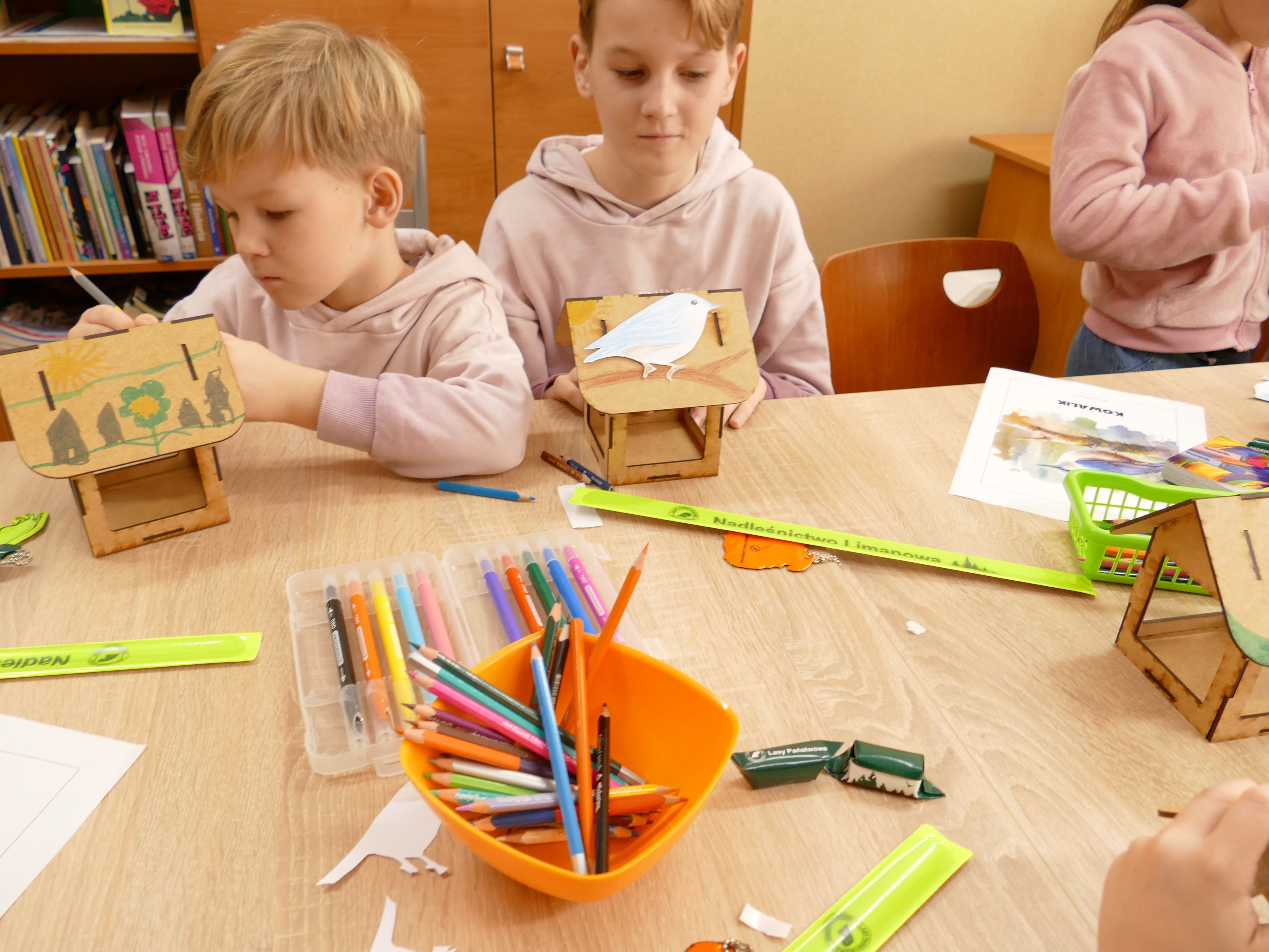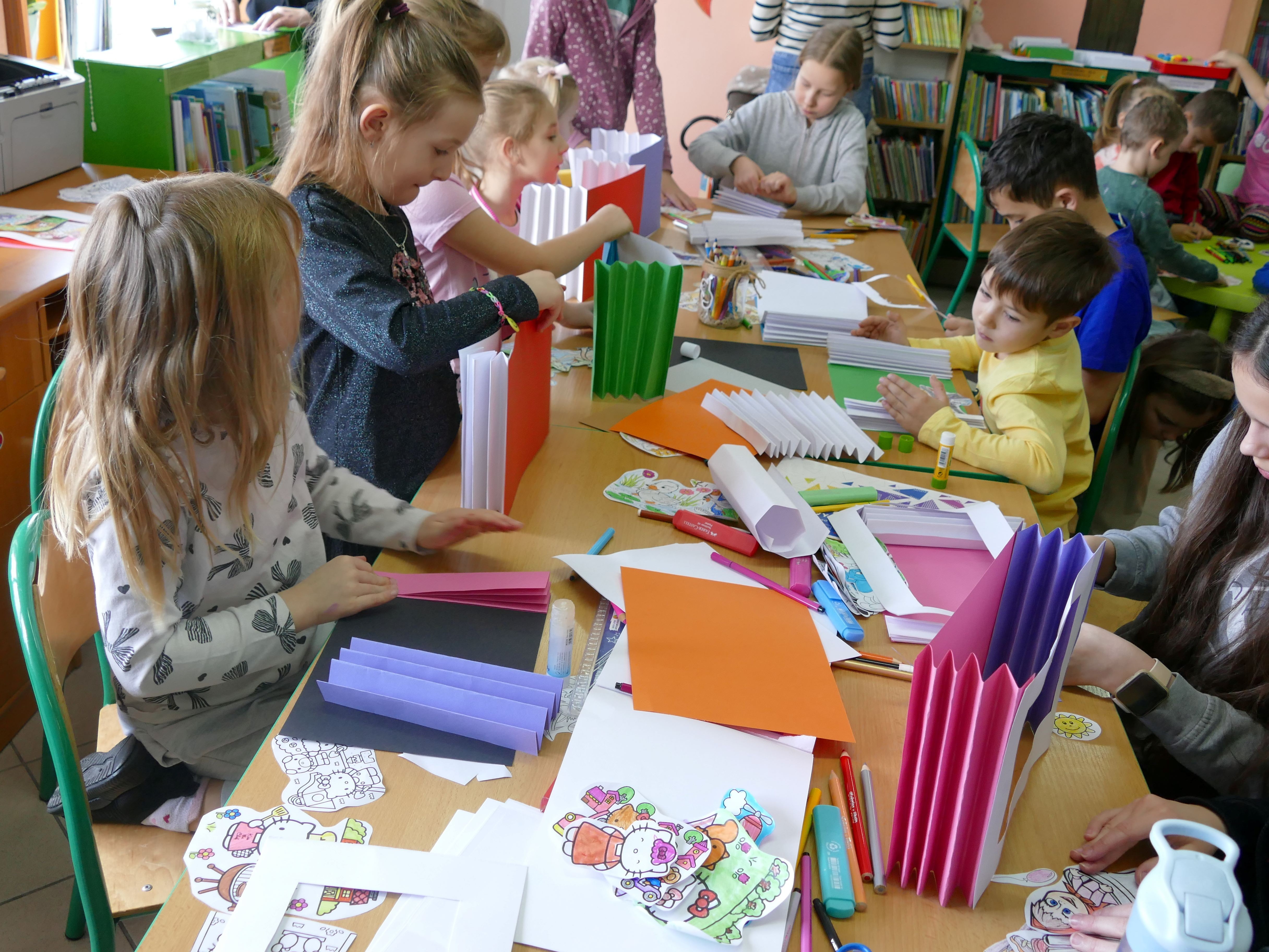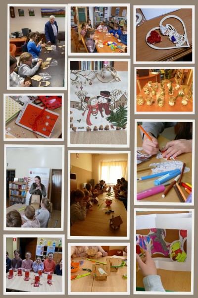 Podczas zajęć dzieci ozdabiały karmniki dla ptaków, tworzyły kartki okolicznościowe, zimowe obrazki, książki tunelowe, świeczniki oraz inne kreatywne prace. W związku z przypadającymi w tym czasie świętami, uczestnicy przygotowywali upominki dla babci i dziadka, a także walentynkowe amorki. Warsztaty pozwoliły najmłodszym na rozwijanie zdolności manualnych oraz wspólną zabawę w inspirującym środowisku.
