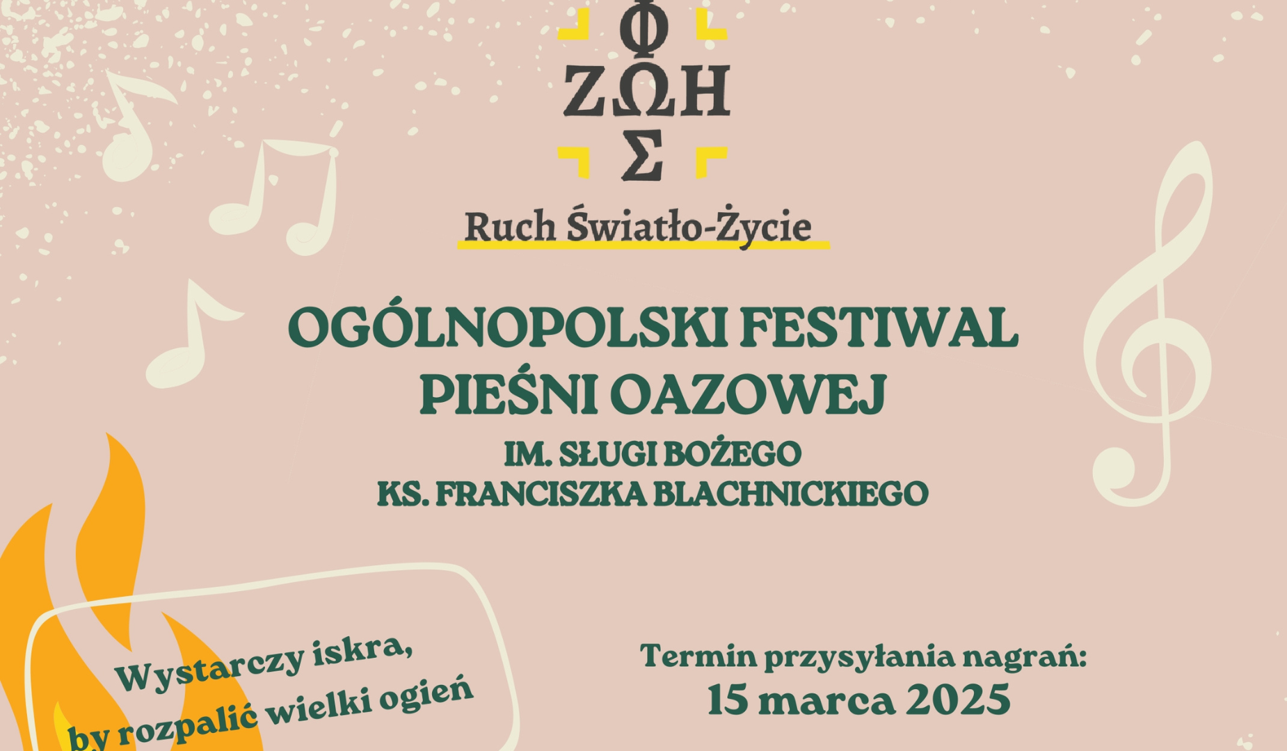 Zaproszenie na Ogólnopolski Festiwal Pieśni Oazowej im. Sługi Bożego ks. Franciszka Blachnickiego