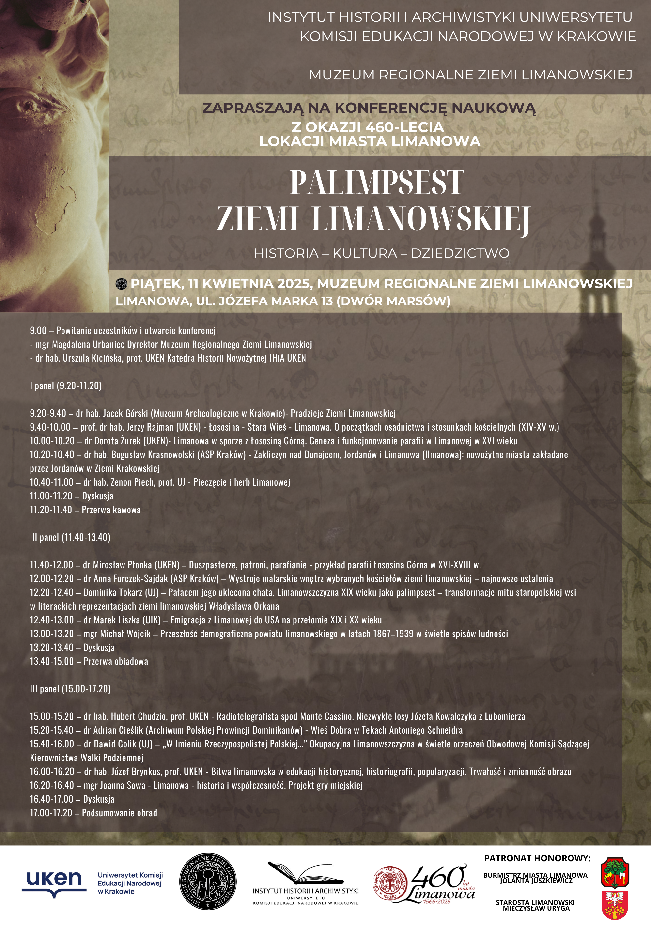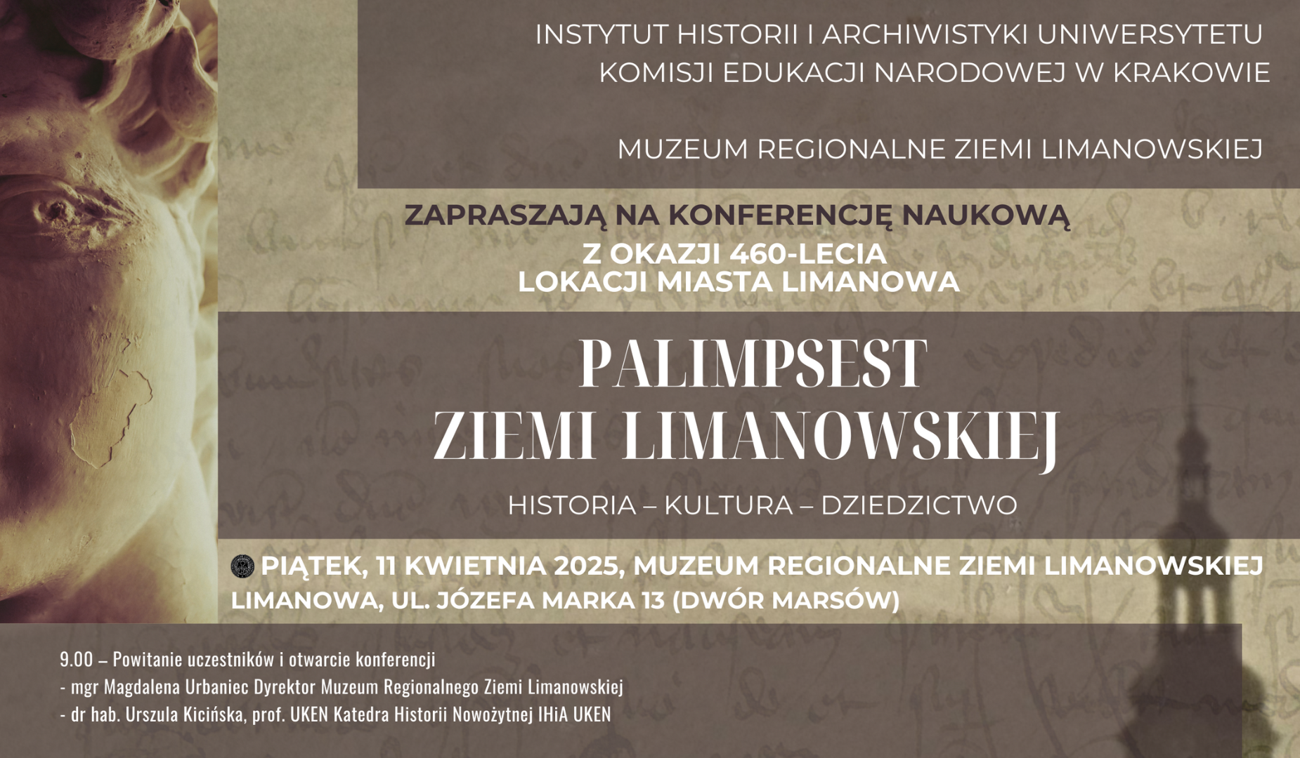 Organizatorzy wydarzenia, czyli Instytut Historii i Archiwistyki Uniwersytetu Komisji Edukacji Narodowej w Krakowie oraz Muzeum Regionalne Ziemi Limanowskiej zapraszają na konferencję naukową