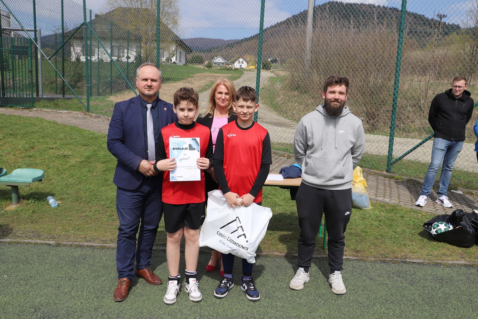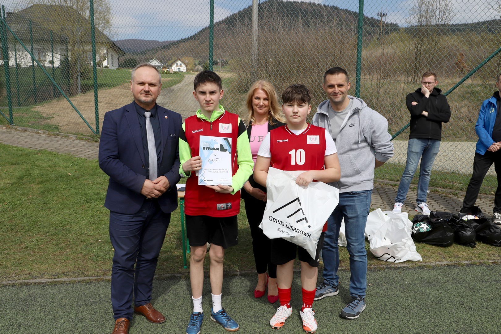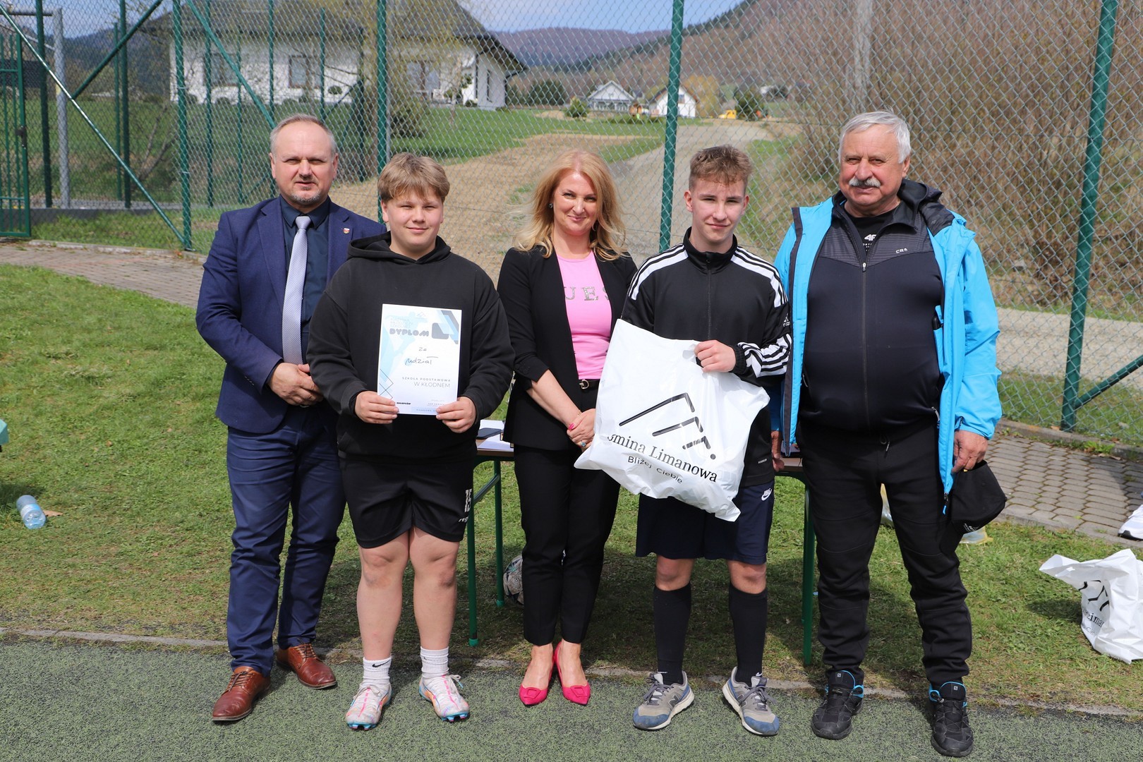Wręczenia dyplomów oraz nagród uczestnikom rozgrywek piłkarskich dokonali, Jan Skrzekut Wójt Gminy Limanowa i dyrektor Szkoły Podstawowej w Pisarzowej Renata Długosz.