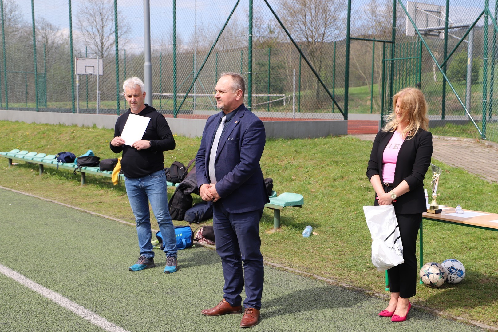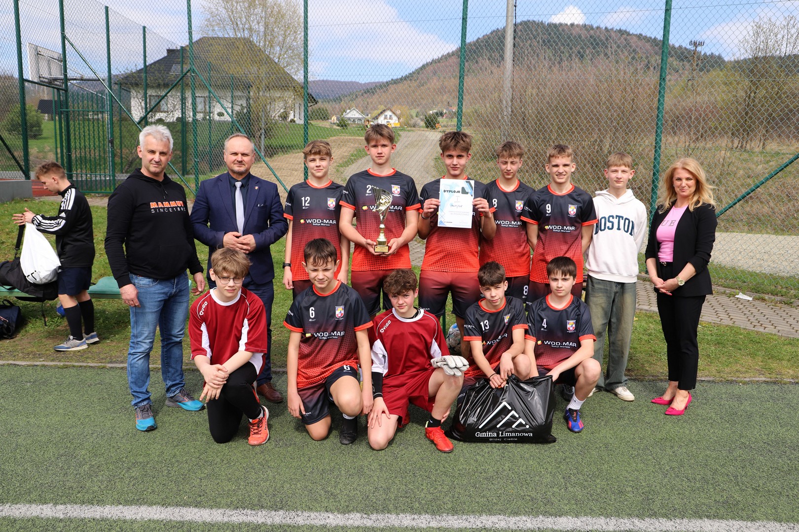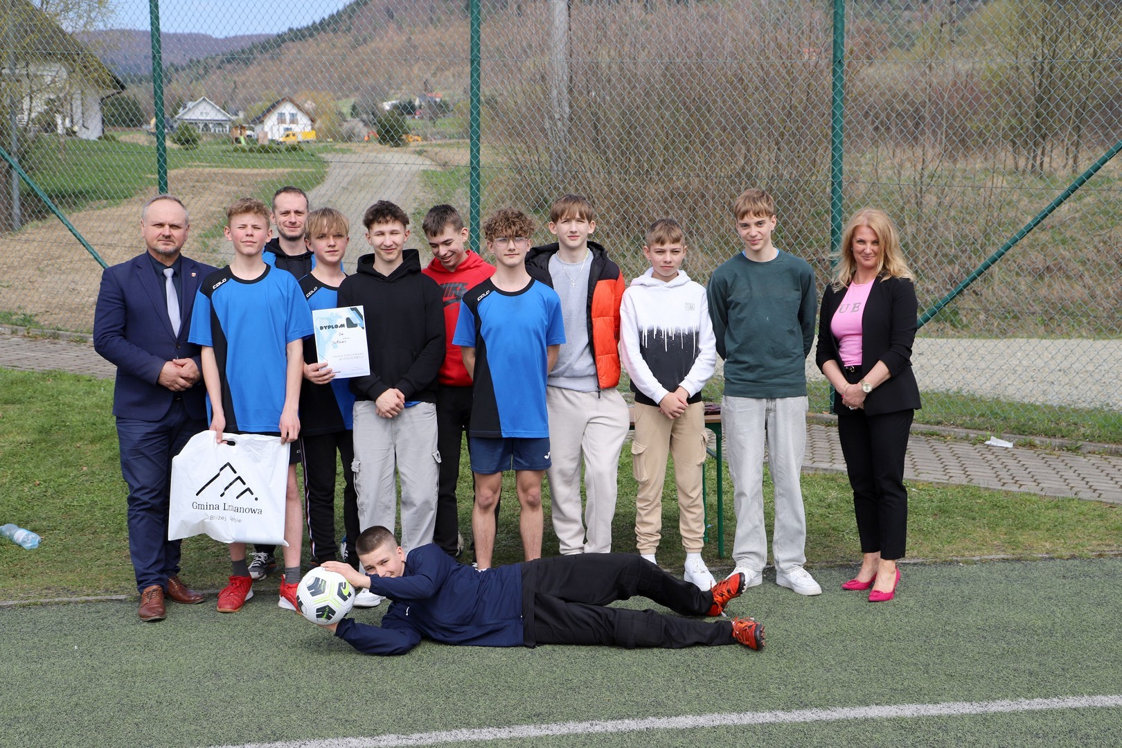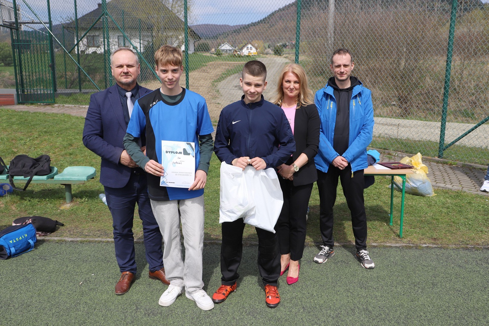 Wręczenia dyplomów oraz nagród uczestnikom rozgrywek piłkarskich dokonali, Jan Skrzekut Wójt Gminy Limanowa i dyrektor Szkoły Podstawowej w Pisarzowej Renata Długosz.