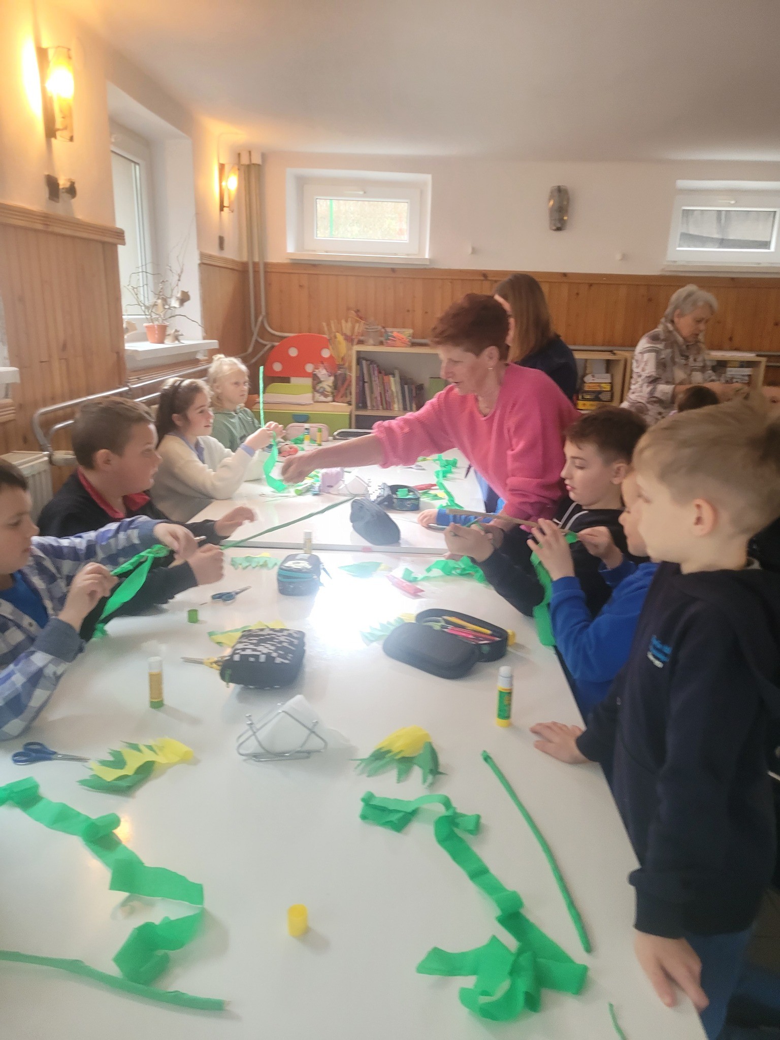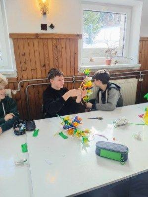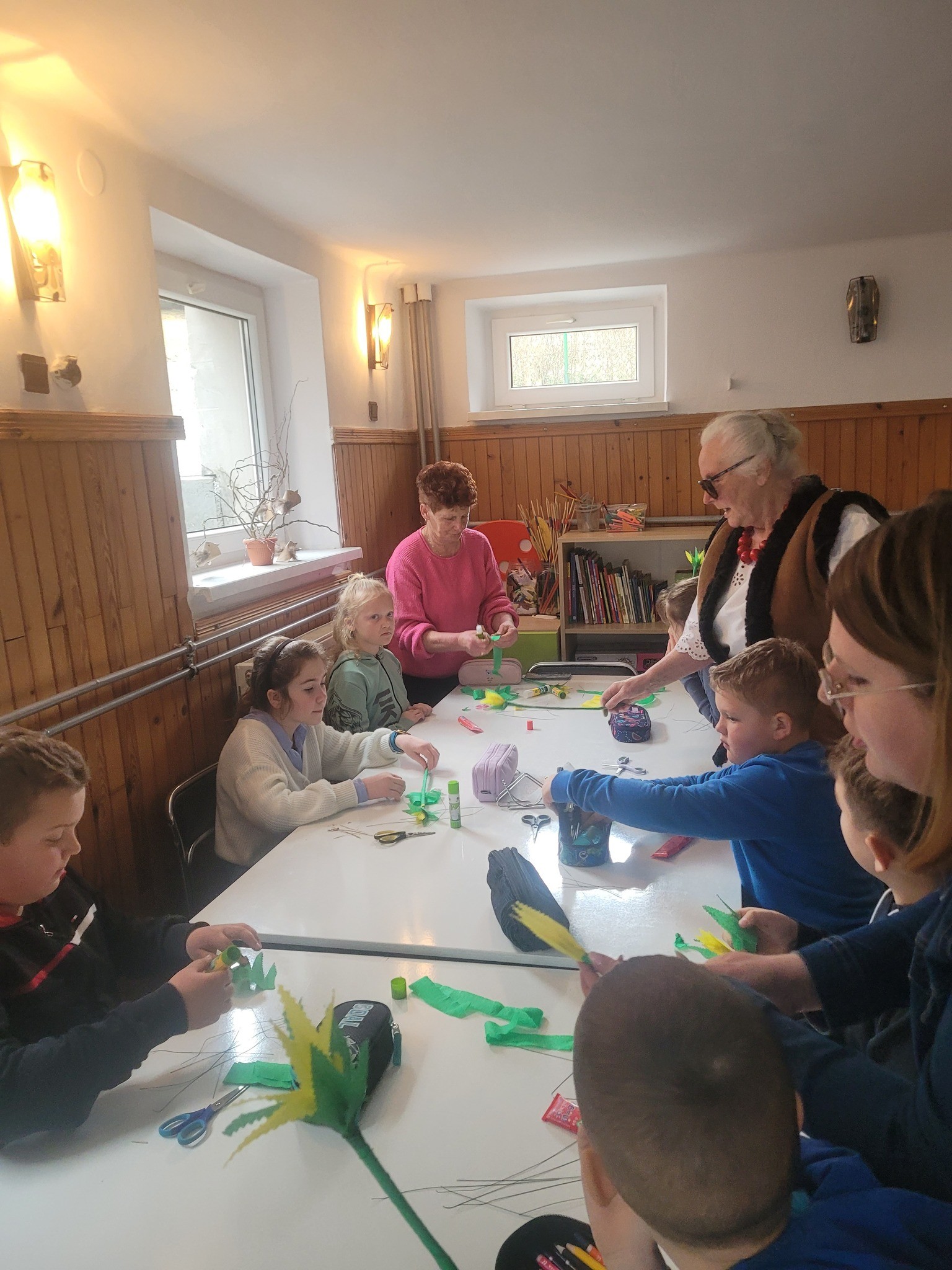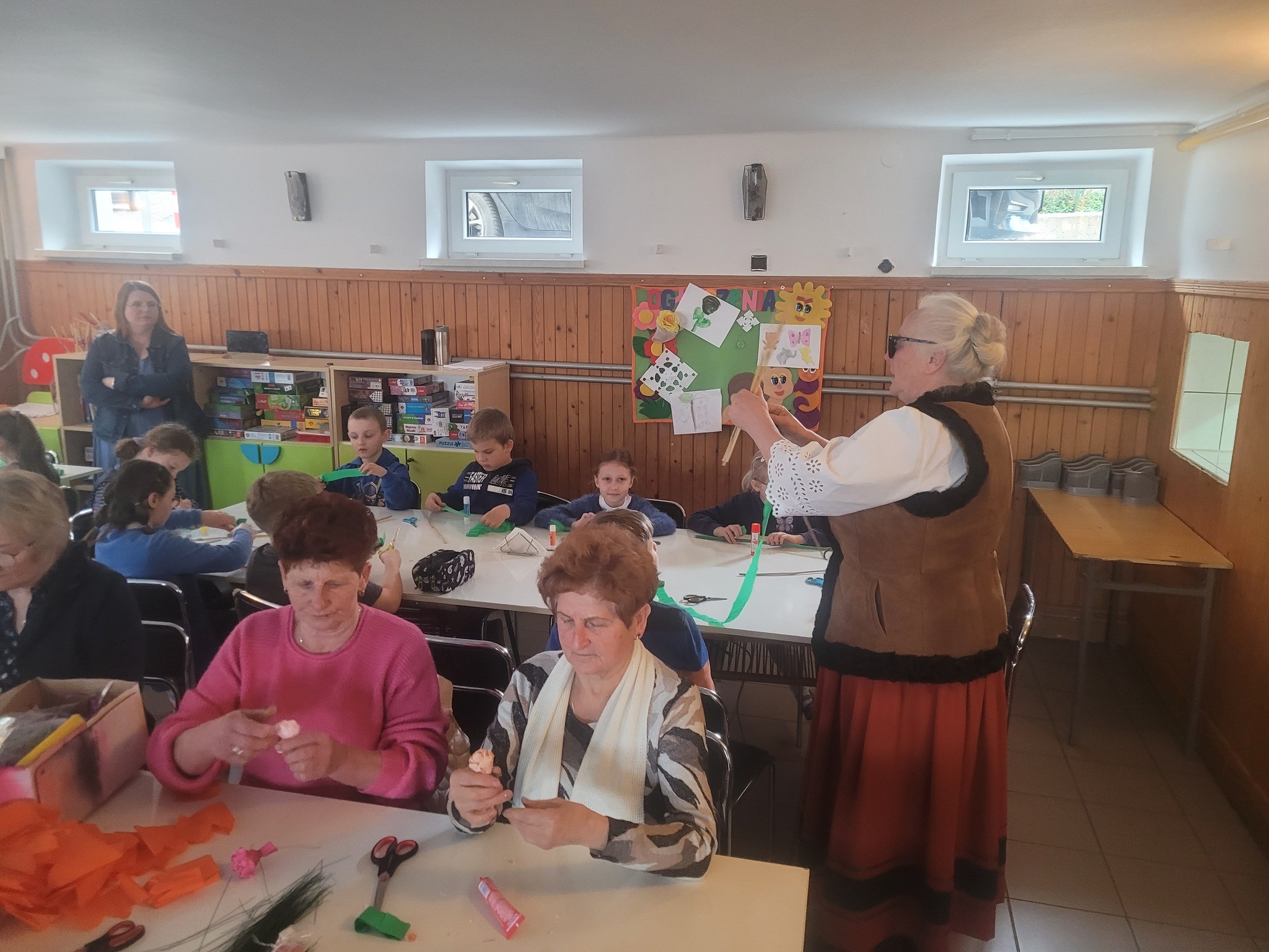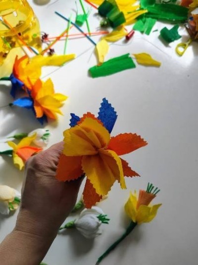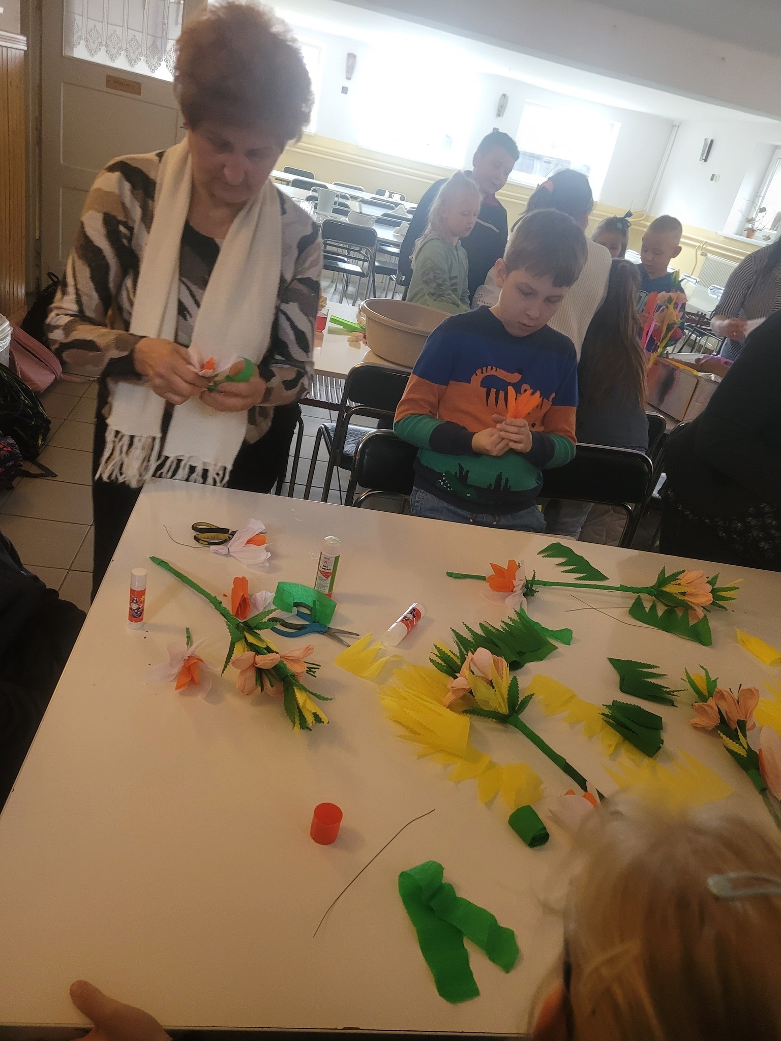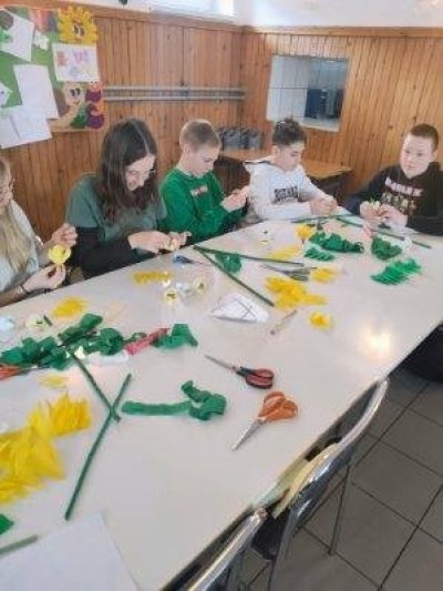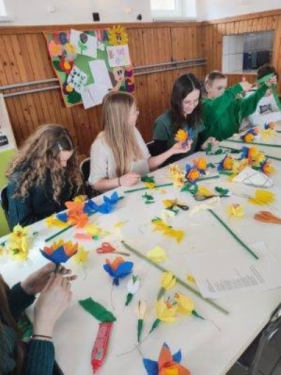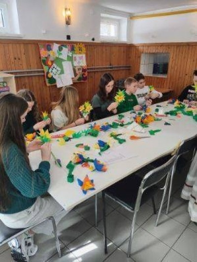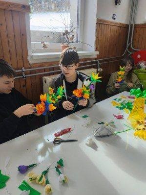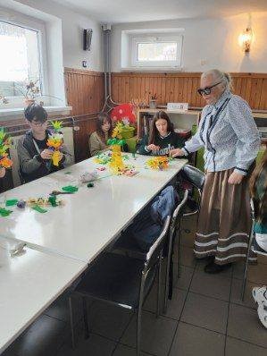 Zbliżające się Święta Wielkanocne to doskonały moment, aby przypomnieć sobie o pięknych, dawnych zwyczajach i nauczyć się czegoś nowego. Seniorki z ogromnym zaangażowaniem przekazywały dzieciom wiedzę na temat tworzenia tradycyjnych kwiatów z bibuły i krepiny. Te ręcznie wykonane ozdoby posłużyły później do stworzenia wielkanocnych palm – nieodłącznego elementu Niedzieli Palmowej.