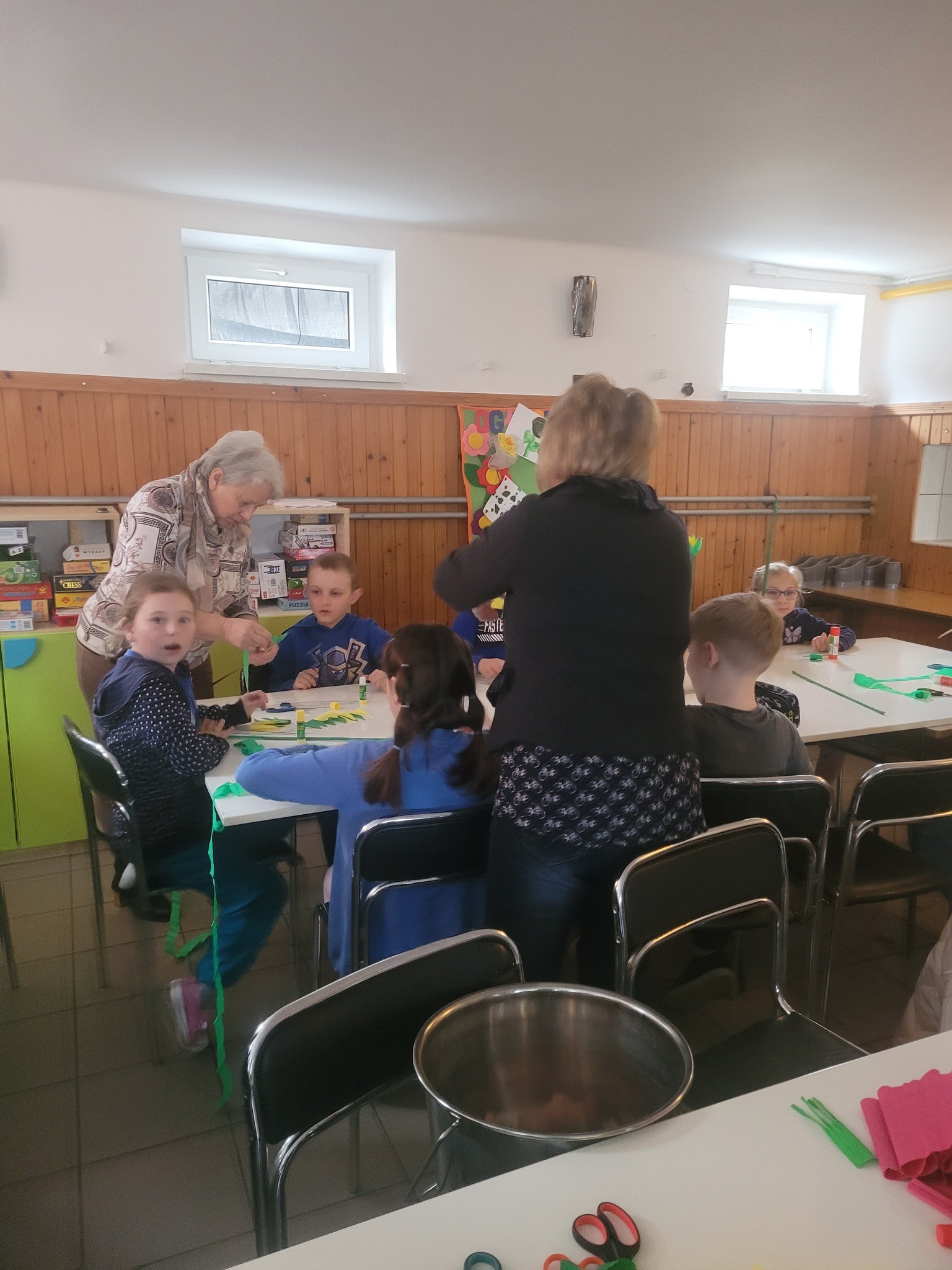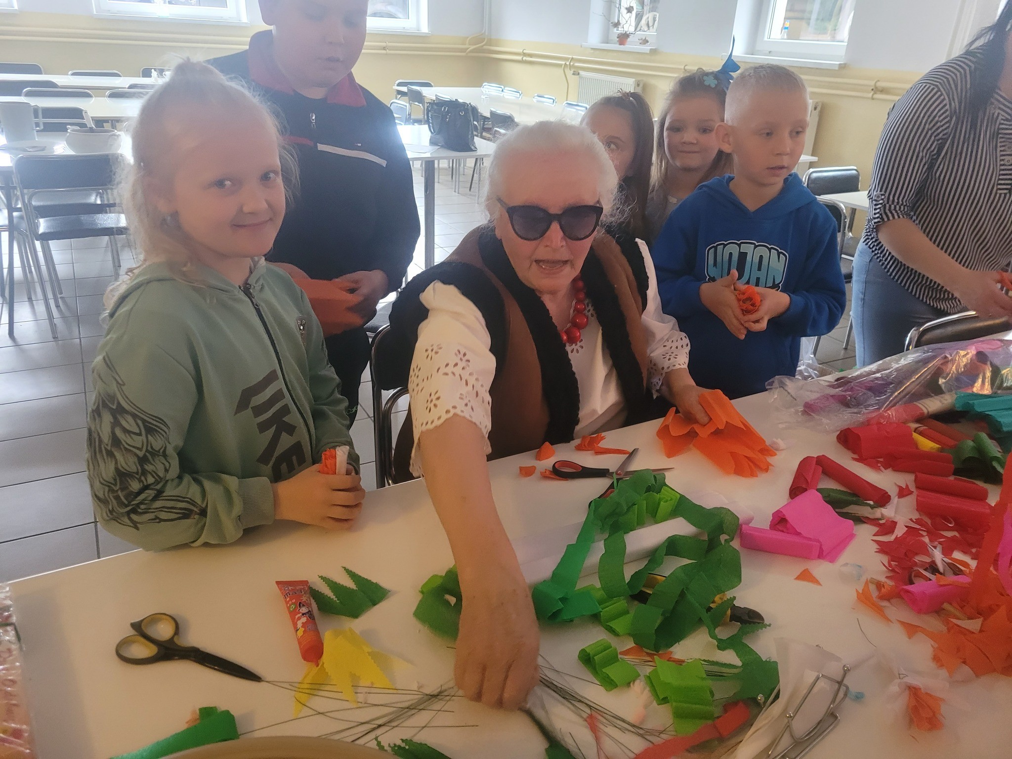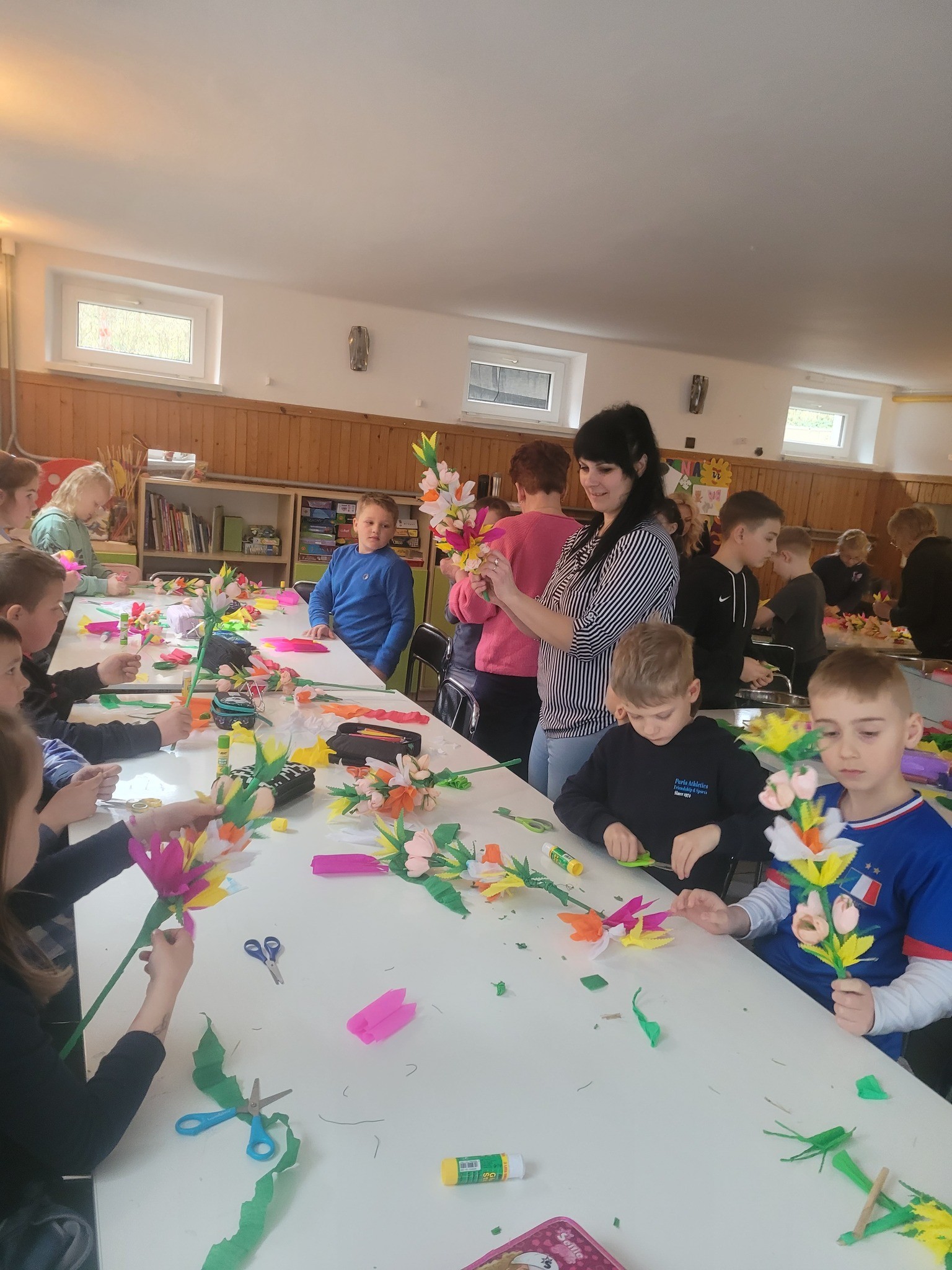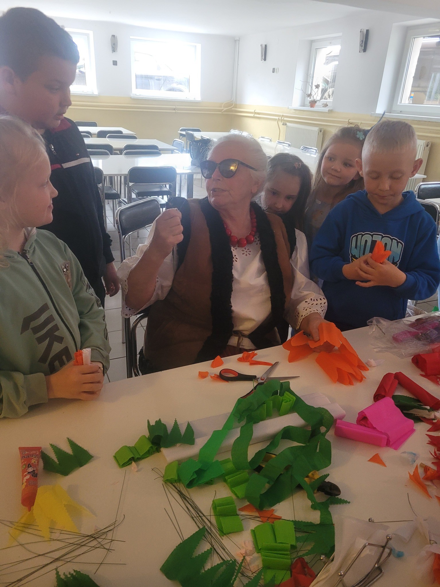Zbliżające się Święta Wielkanocne to doskonały moment, aby przypomnieć sobie o pięknych, dawnych zwyczajach i nauczyć się czegoś nowego. Seniorki z ogromnym zaangażowaniem przekazywały dzieciom wiedzę na temat tworzenia tradycyjnych kwiatów z bibuły i krepiny. Te ręcznie wykonane ozdoby posłużyły później do stworzenia wielkanocnych palm – nieodłącznego elementu Niedzieli Palmowej.