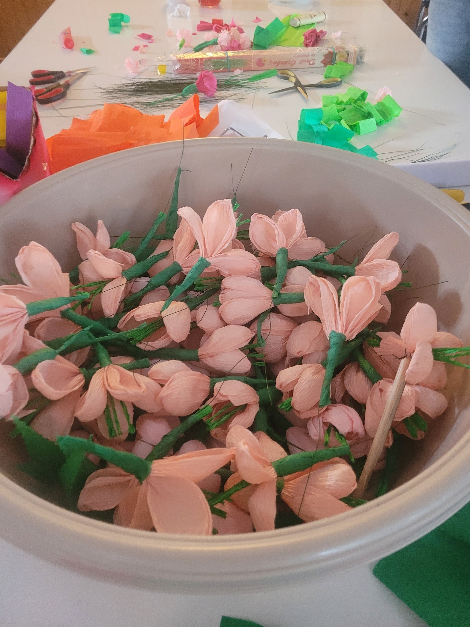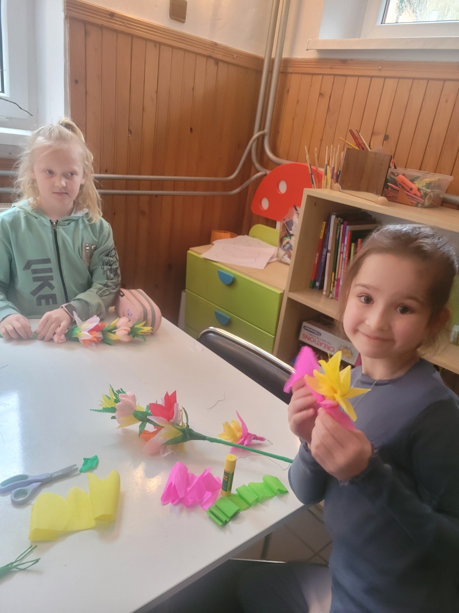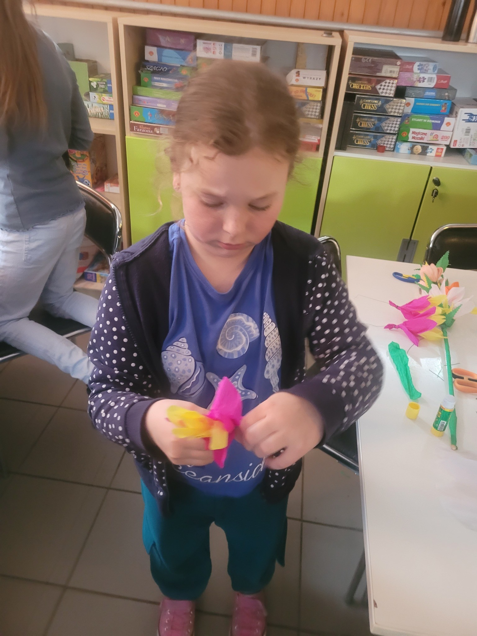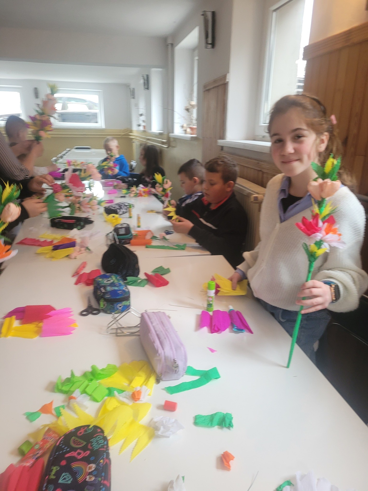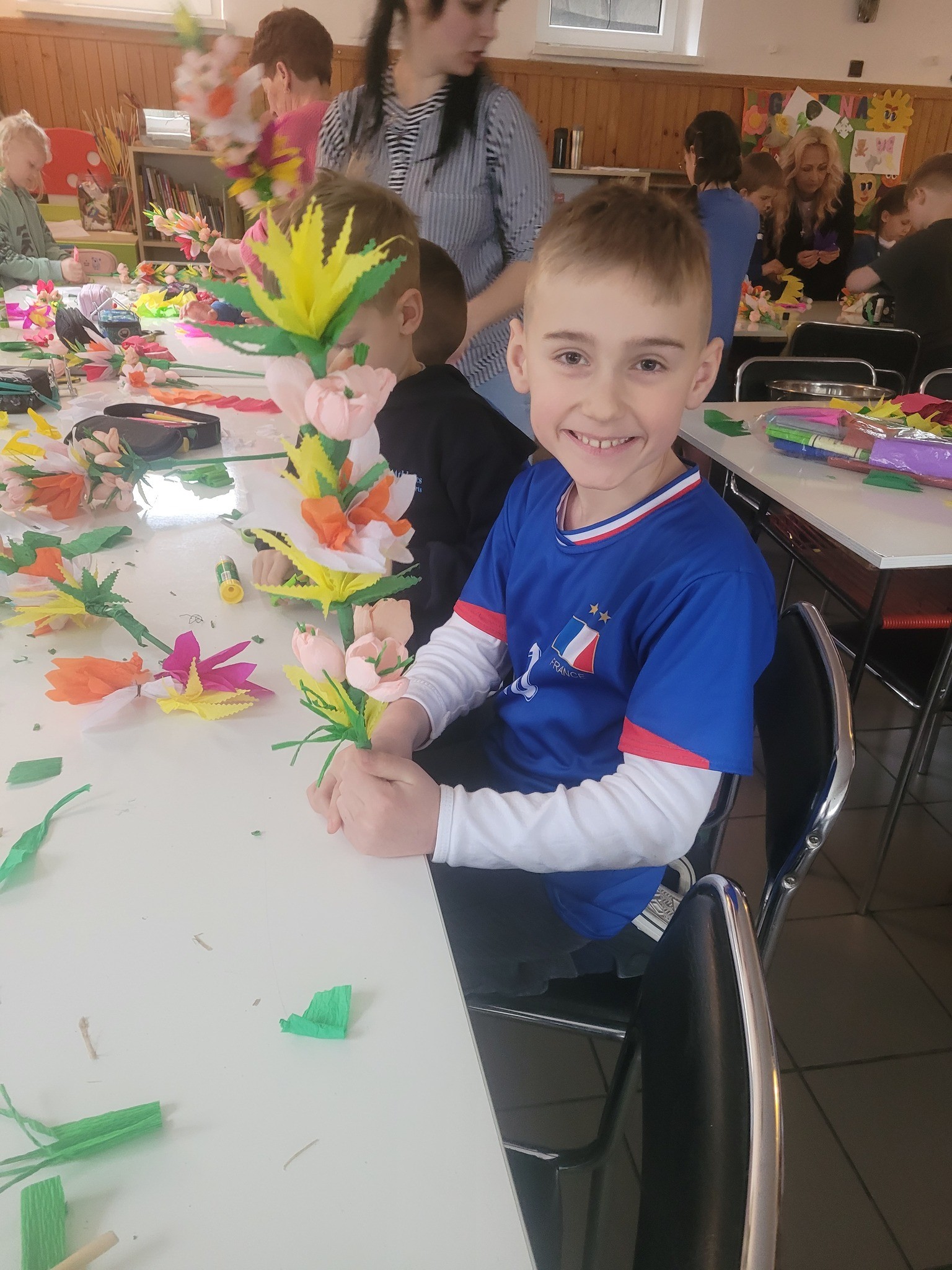 Zbliżające się Święta Wielkanocne to doskonały moment, aby przypomnieć sobie o pięknych, dawnych zwyczajach i nauczyć się czegoś nowego. Seniorki z ogromnym zaangażowaniem przekazywały dzieciom wiedzę na temat tworzenia tradycyjnych kwiatów z bibuły i krepiny. Te ręcznie wykonane ozdoby posłużyły później do stworzenia wielkanocnych palm – nieodłącznego elementu Niedzieli Palmowej.