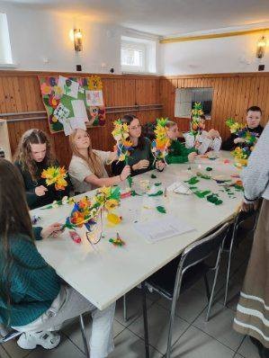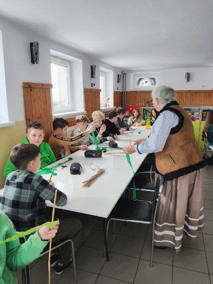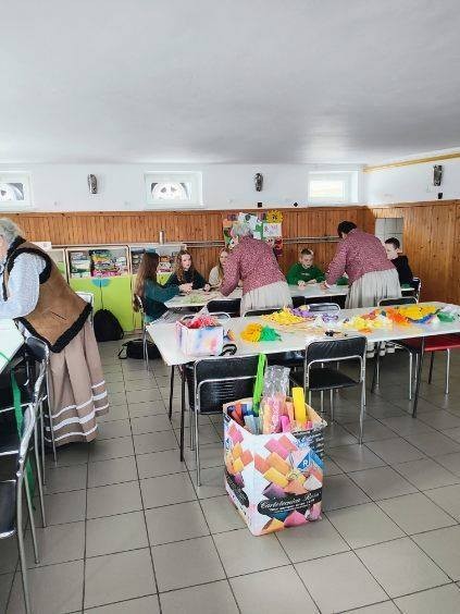 Spotkanie to odbyło się w ramach warsztatów wielkanocnych, których celem było przekazywanie ludowych tradycji oraz umiejętności rękodzielniczych najmłodszym mieszkańcom naszej wsi. Warsztaty odbyły się w trzech zespołach – dla dzieci z klas 1-3 oraz dla starszych uczniów z klas 4- 5 i 6- 8. Dzięki temu każda grupa mogła dostosować poziom trudności prac do swoich umiejętności. Dzieci z wielką radością uczestniczyły w zajęciach, rozwijając swoje zdolności manualne oraz poznając tajniki sztuki ludowej.