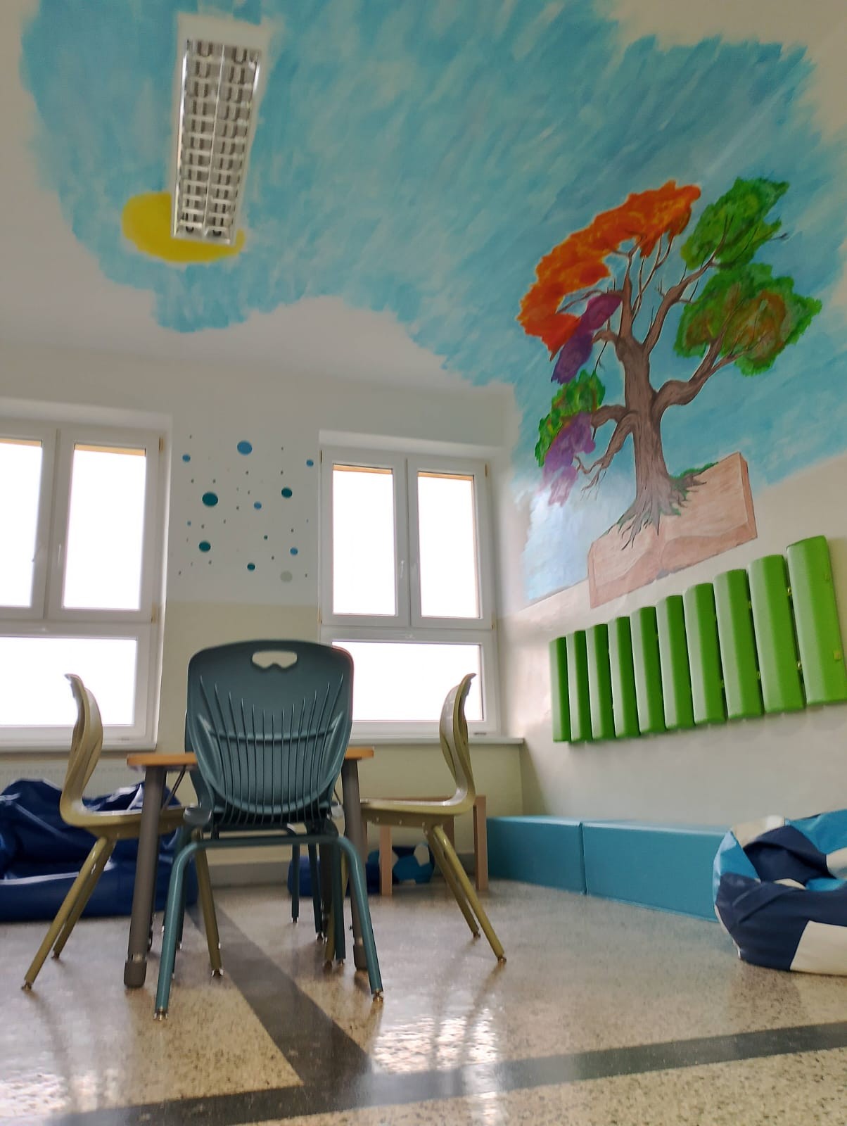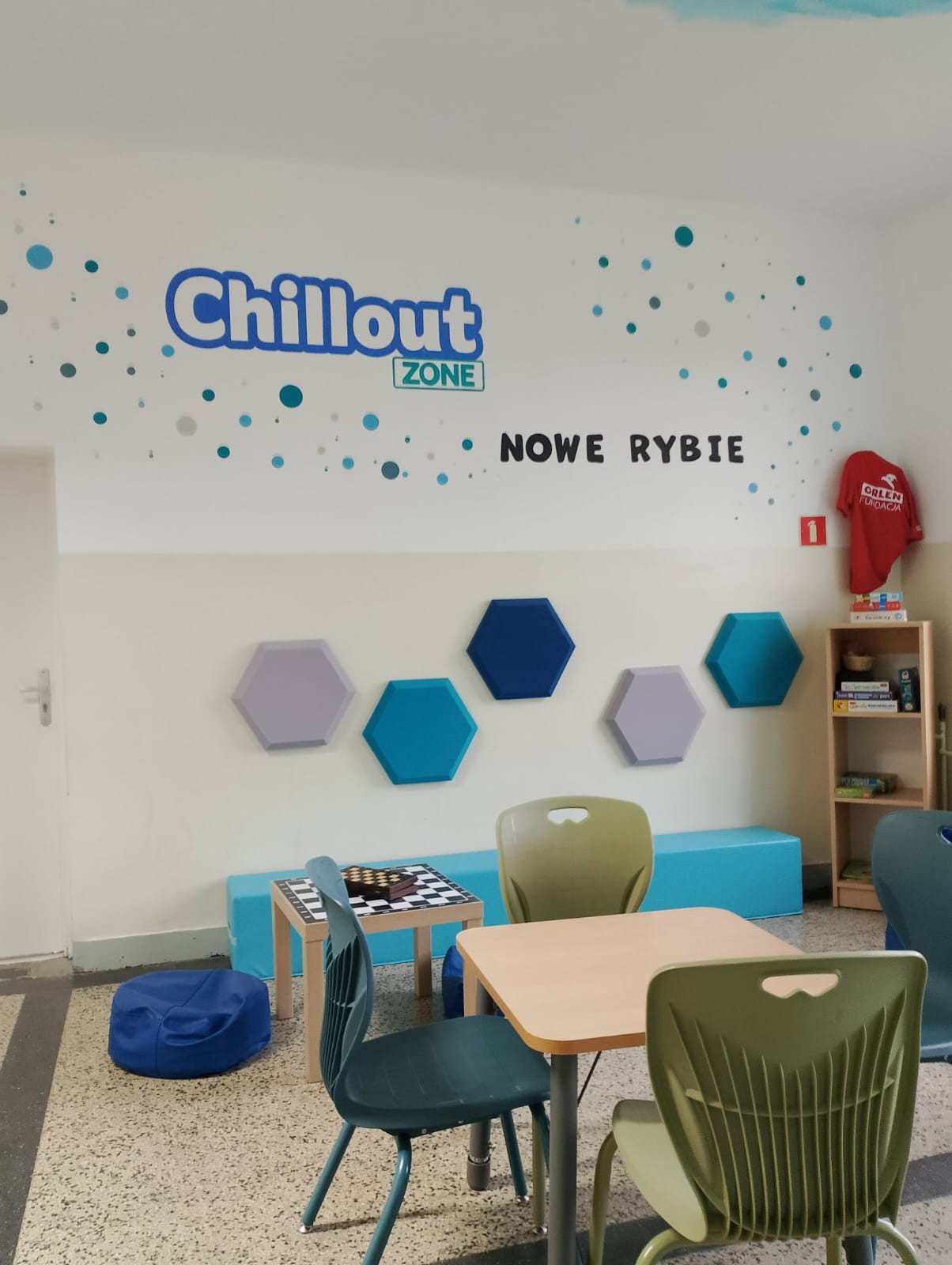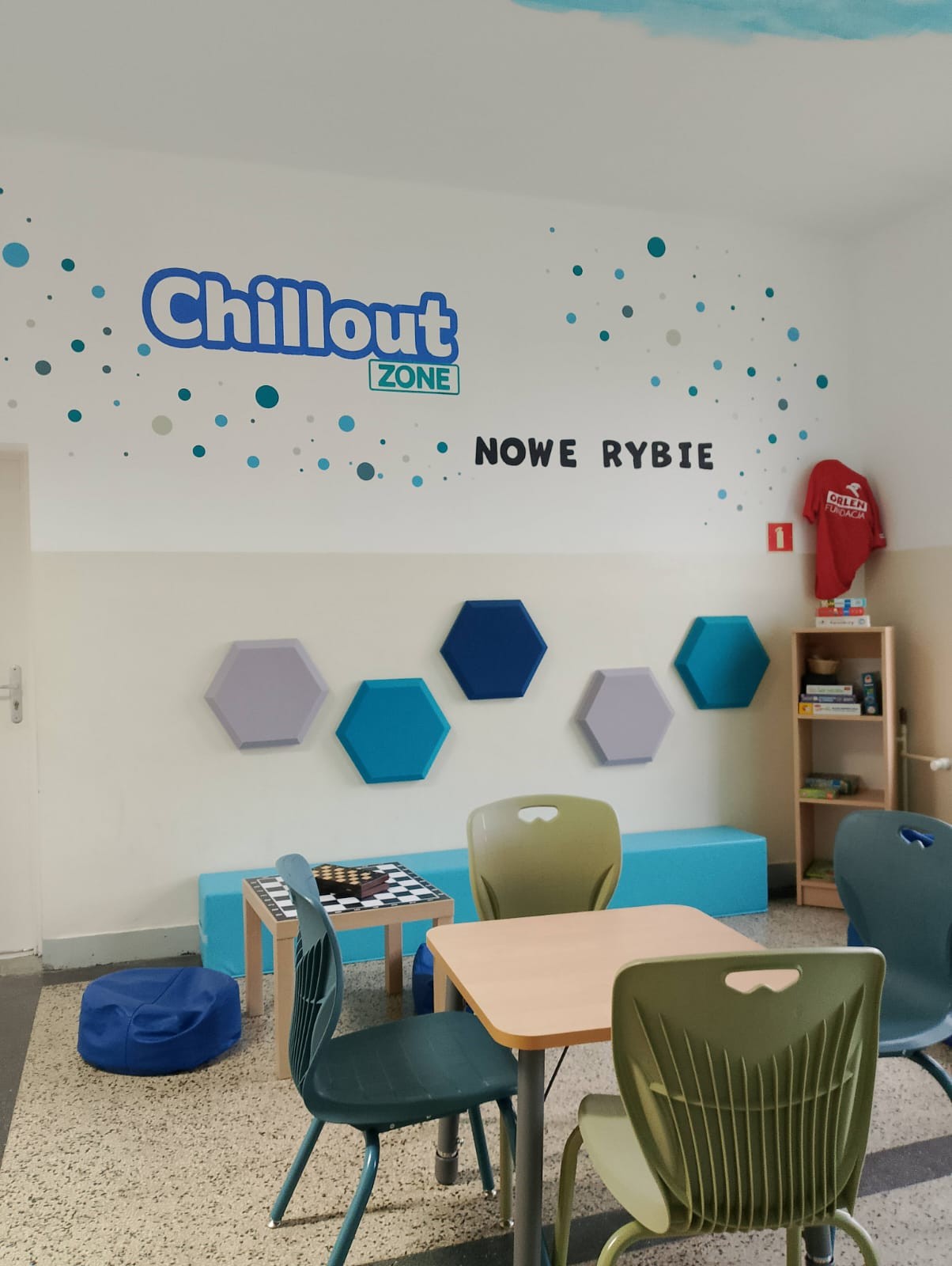 Strefy RelaksuChillout Zone– przestrzeni dedykowanej odpoczynkowi, wyciszeniu oraz budowaniu dobrego samopoczucia wśród uczniów i nauczycieli.