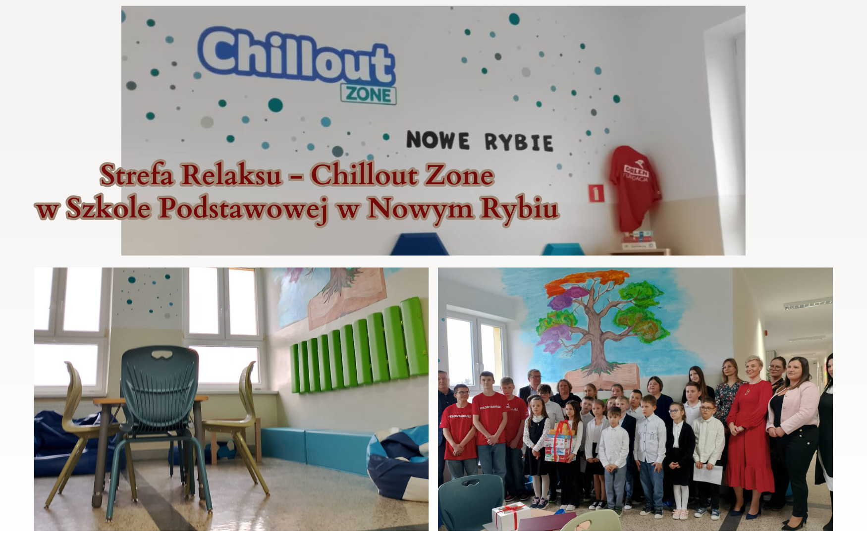 Dzięki inicjatywie Joanny Janoty nauczyciela języka angielskiego w Szkole Podstawowej w Nowym Rybiu oraz zaangażowaniu i wsparciu: wolontariuszy Fundacji ORLEN, ORLEN Budonaft, Teresy i Grzegorza Chudych, Januszowi Muchy, Banku Spółdzielczego w Limanowej i firmie Joniec, uczniowie Szkoły Podstawowej w Nowym Rybiu zyskali wyjątkowe miejsce, które z pewnością wpłynie pozytywnie na ich samopoczucie, rozwój emocjonalny oraz relacje międzyludzkie.