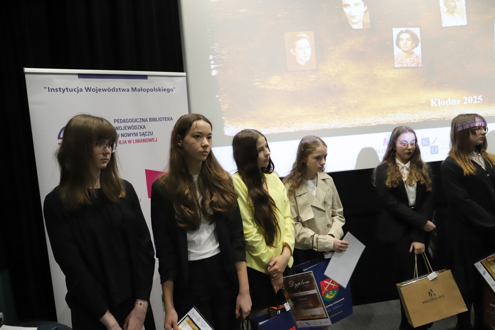 Następnie wystąpiła przedstawicielka Instytutu Pamięci Narodowej – Roksana Szczypta-Szczęch, która pogratulowała organizatorom inicjatywy i wyraziła uznanie dla zaangażowania młodzieży w kultywowaniu pamięci o wydarzeniach z czasów II wojny światowej. Podkreśliła rolę takich konkursów w kształtowaniu świadomości historycznej i patriotycznej. Z kolei Wójt Gminy Limanowa, Jan Skrzekut, wyraził wdzięczność wszystkim uczestnikom i organizatorom za wrażliwość, z jaką podjęli trudną tematykę obozową.