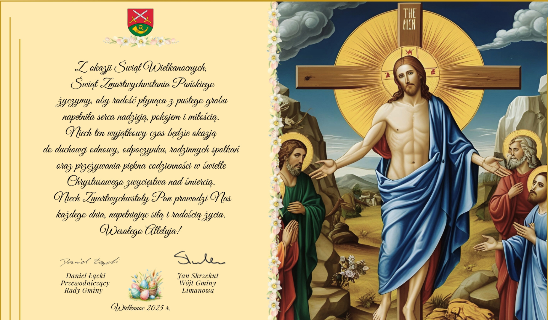 Niech ten wyjątkowy czas będzie okazją do duchowej odnowy, odpoczynku, rodzinnych spotkań oraz przeżywania piękna codzienności w świetle Chrystusowego zwycięstwa nad śmiercią. Niech Zmartwychwstały Pan prowadzi Nas każdego dnia napełniając siłą i radością życia.