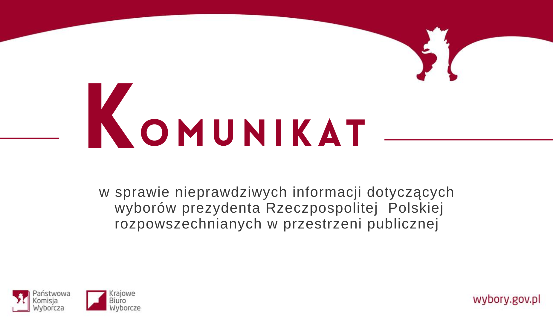 Państwowa Komisja Wyborcza zaleca, aby w przypadku wątpliwości wyborcy weryfikowali źródła, na które powołuje się autor danego artykułu. Należy mieć na uwadze, że oficjalne i wiarygodne informacje na temat wyborów znajdują się na stronach internetowych Państwowej Komisji Wyborczej pkw.gov.pl oraz wybory.gov.pl. Rzetelnych informacji udzielić może również Krajowe Biuro Wyborcze zapewniające obsługę Państwowej Komisji Wyborczej, w tym też delegatury Krajowego Biura Wyborczego zapewniające obsługę okręgowych komisji wyborczych.