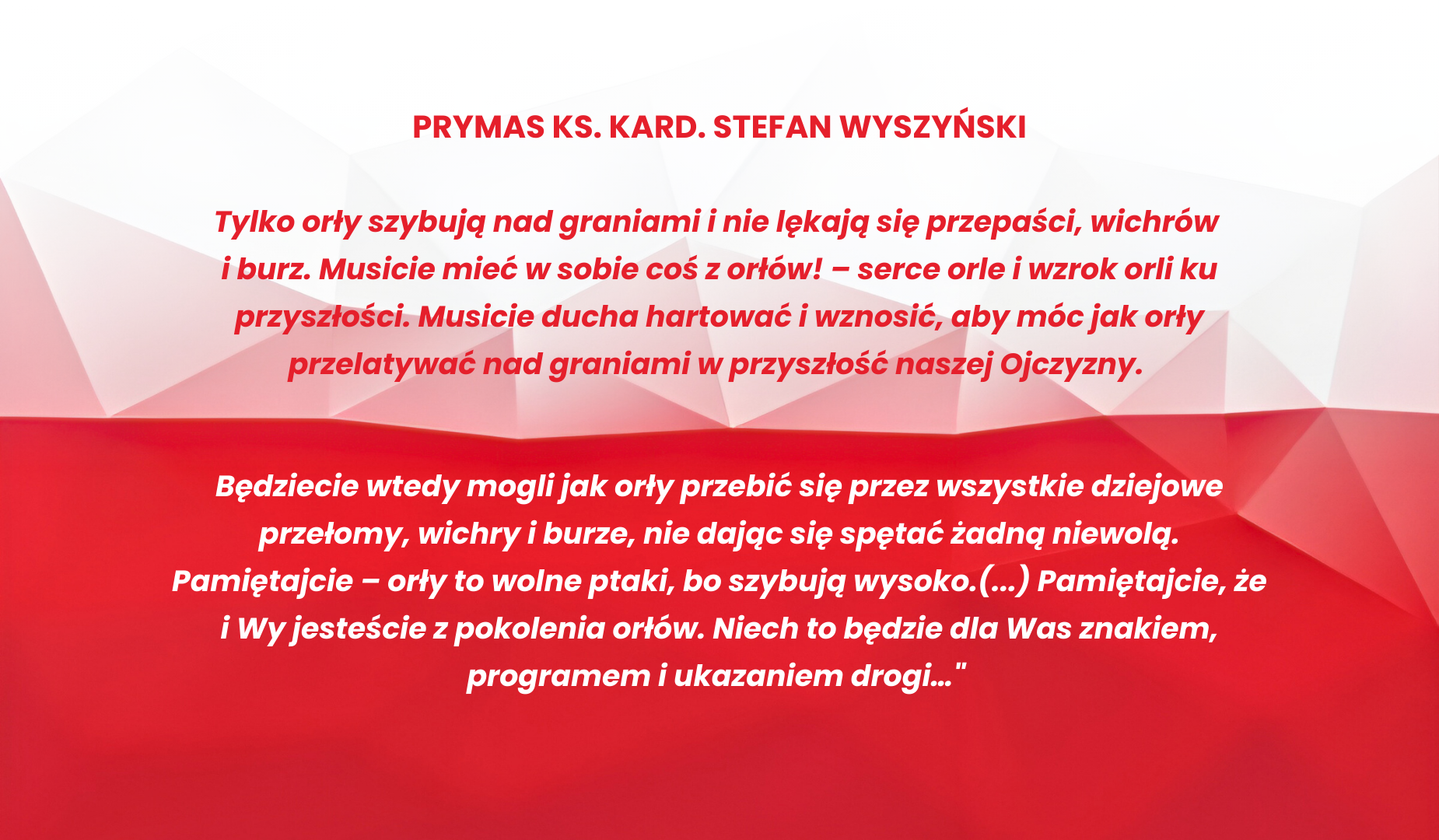 „Nie wystarczy urodzić się człowiekiem. Ale trzeba nim być Dzisiaj potrzeba nam wiary, która góry przenosi, która wszystkich jednoczy, która nigdy nie zawodzi.” Kardynał Stefan Wyszyński