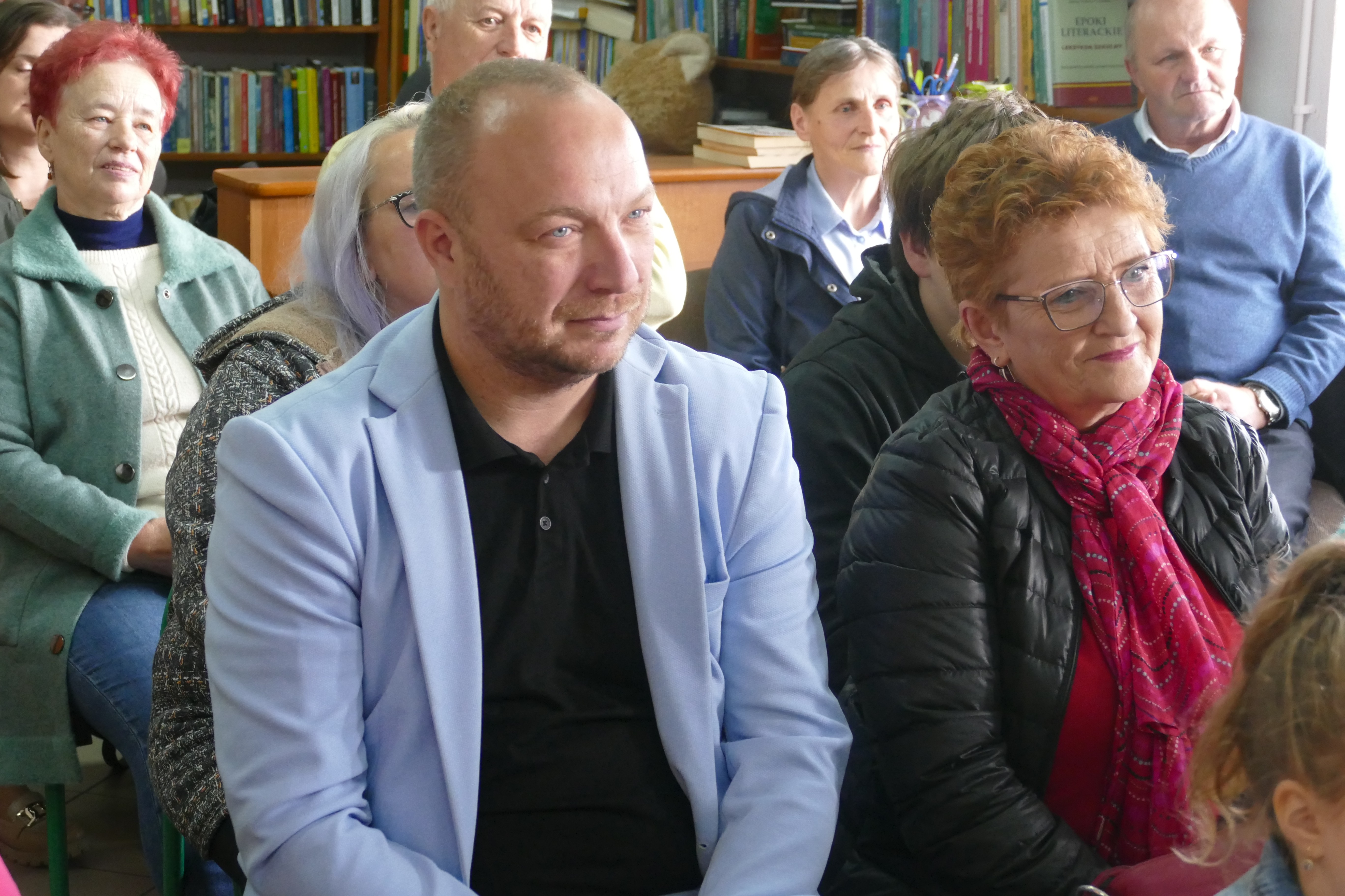Współtwórczynią tej niezwykłej wieczornej podróży była pani Grażyna Biskup, emerytowana kierowniczka Gminnej Biblioteki Publicznej w Łukowicy, która czytała wybrane wiersze razem z autorką. Ich głosy – dopełniające się, spokojne, doświadczone – wprowadzały słuchaczy w świat pełen światła, wzruszeń i wspomnień. Nie zabrakło również lżejszych akcentów – humorystycznych opowieści w gwarze, które wywoływały uśmiechy i salwy śmiechu wśród publiczności.