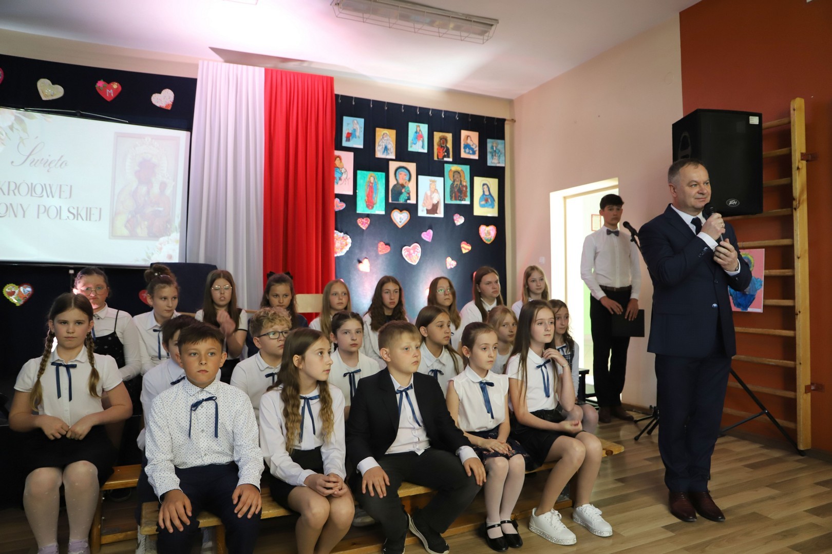 Po programie słowno-muzycznym głos zabrał dyrektor szkoły, który dodatkowo przybliżył postać ojca Juliusza Mancinellego – włoskiego jezuity, któremu objawiła się Matka Boża i poleciła nazywać się Królową Polski. W dalszej kolejności wójt Gminy Limanowa podkreślił wyjątkowość Patronki szkoły i złożył wszystkim okolicznościowe życzenia.