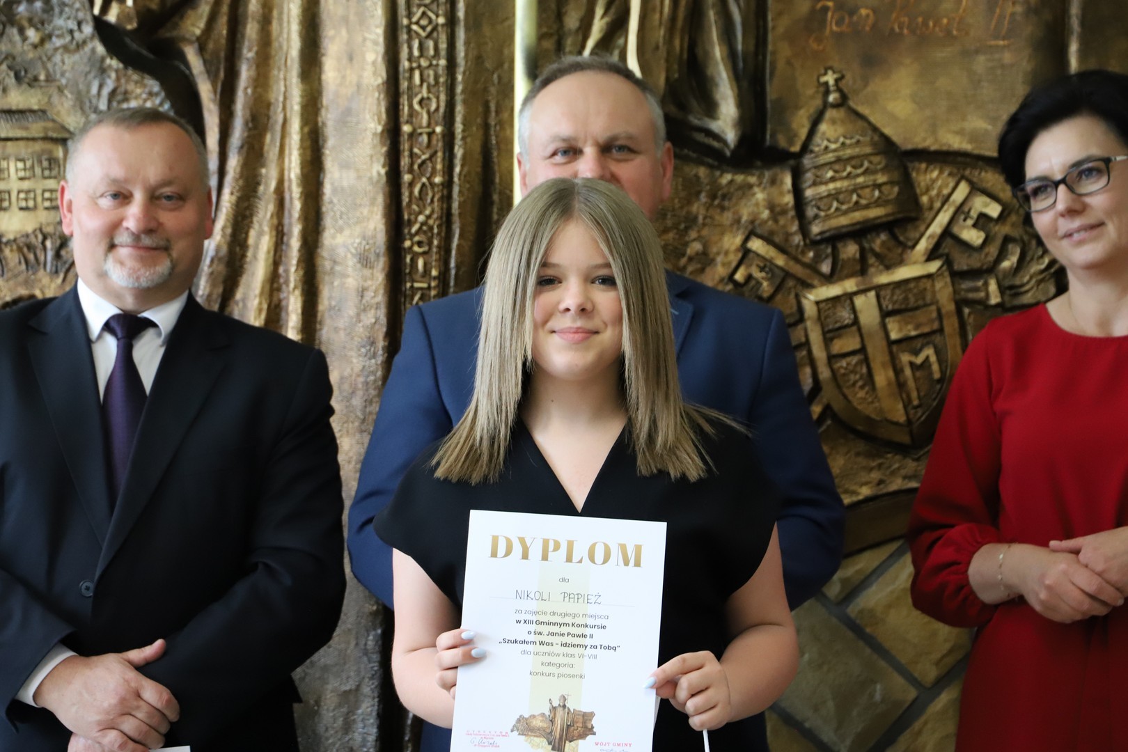 XIII edycji Gminnego Konkursu o Janie Pawle II „Szukałem Was – idziemy za Tobą”. W tegorocznej jego odsłonie wzięło udział 55 uczniów z trzynastu szkół. Uczestnicy rywalizowali w trzech kategoriach tematycznych i dwóch wiekowych.