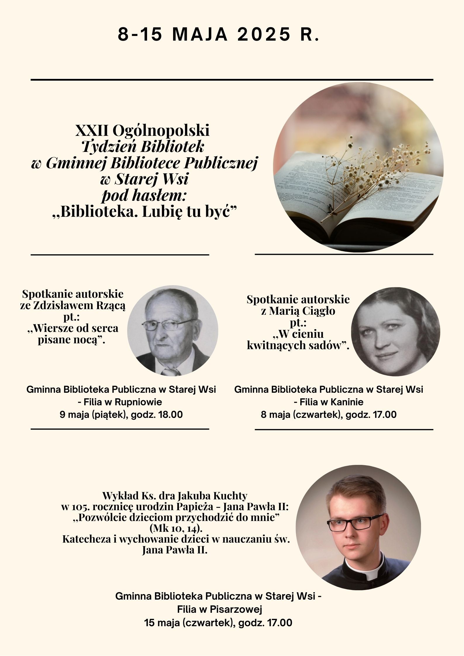 Gminna Biblioteka Publiczna w Starej Wsi zaprasza na XXII Ogólnopolski Tydzień Bibliotek pod hasłem "Biblioteka. Lubię tu być", który odbędzie się 8-15 maja 2025 roku.