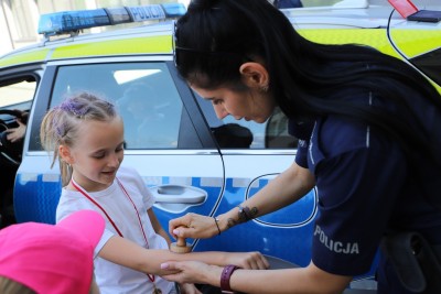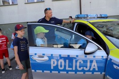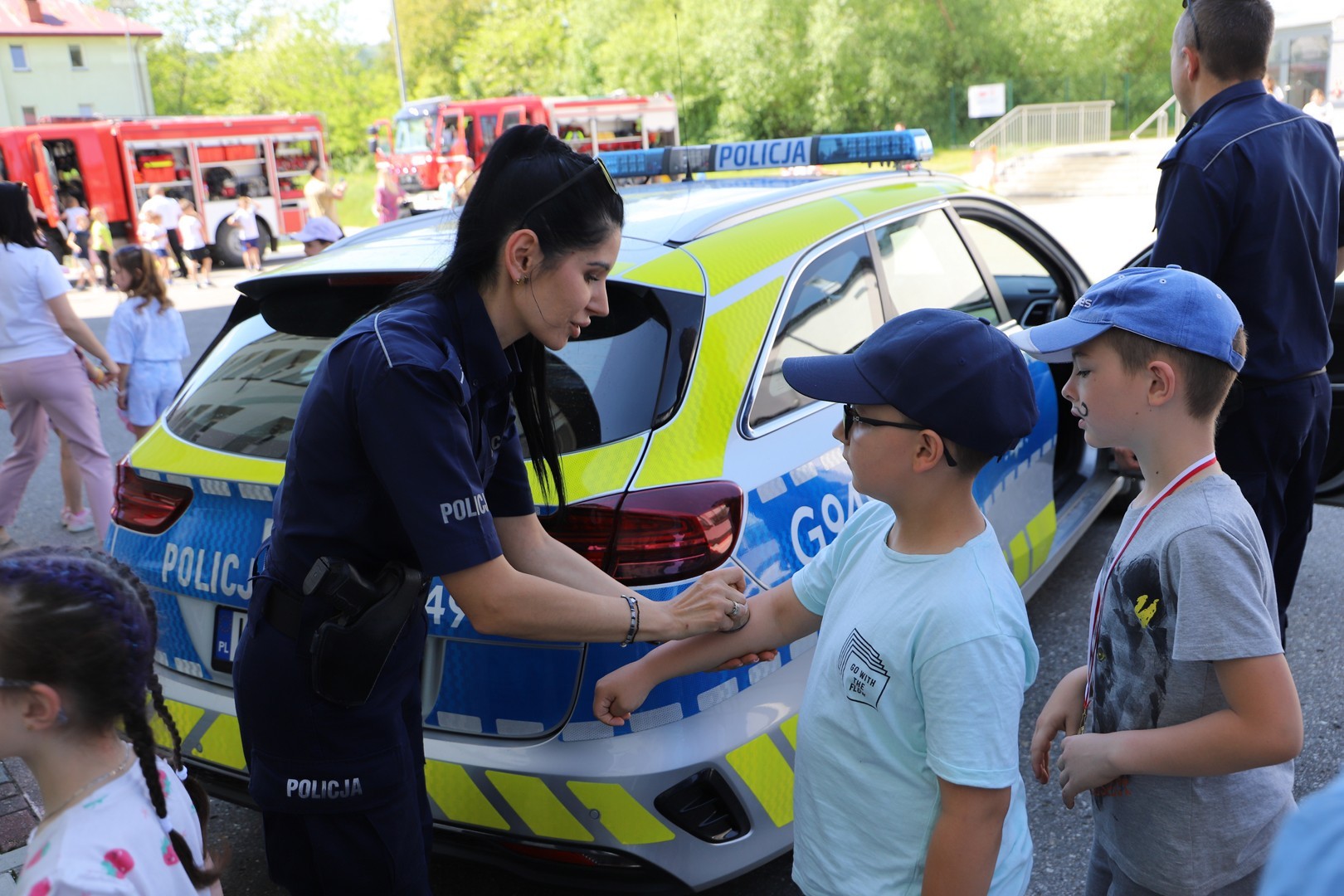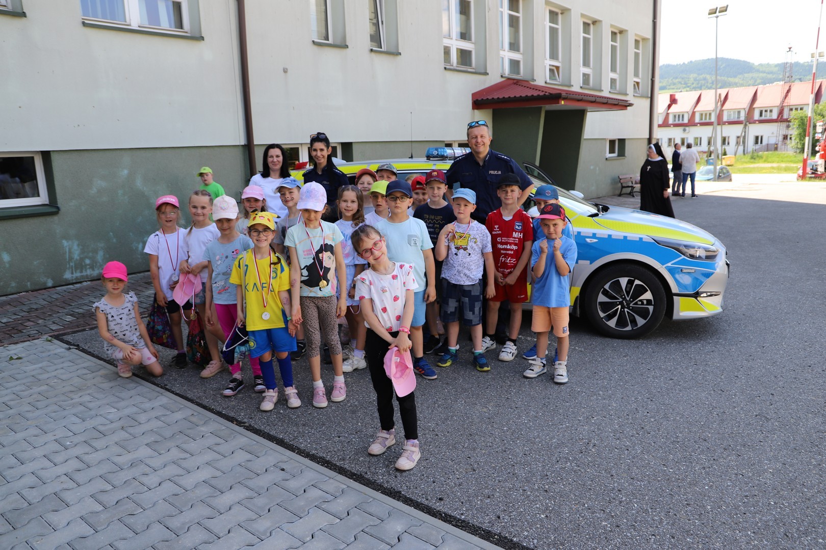 policjantów z Komendy Powiatowej Policji w Limanowej, którzy opowiadali dzieciom o zasadach bezpieczeństwa, prezentowali wyposażenie radiowozu oraz chętnie odpowiadali na pytania. Nie zabrakło również