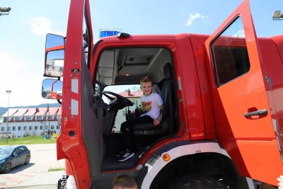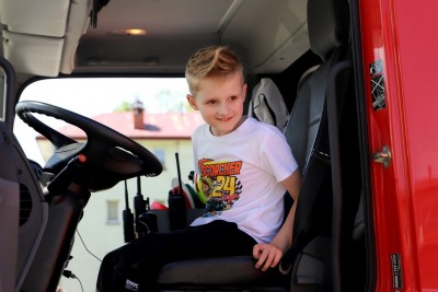 wielkiej frajdy dla najmłodszych – wozu strażackiego Ochotniczej Straży Pożarnej w Męcinie, który można było obejrzeć z bliska, a nawet wejść do środka i poczuć się jak prawdziwy strażak.