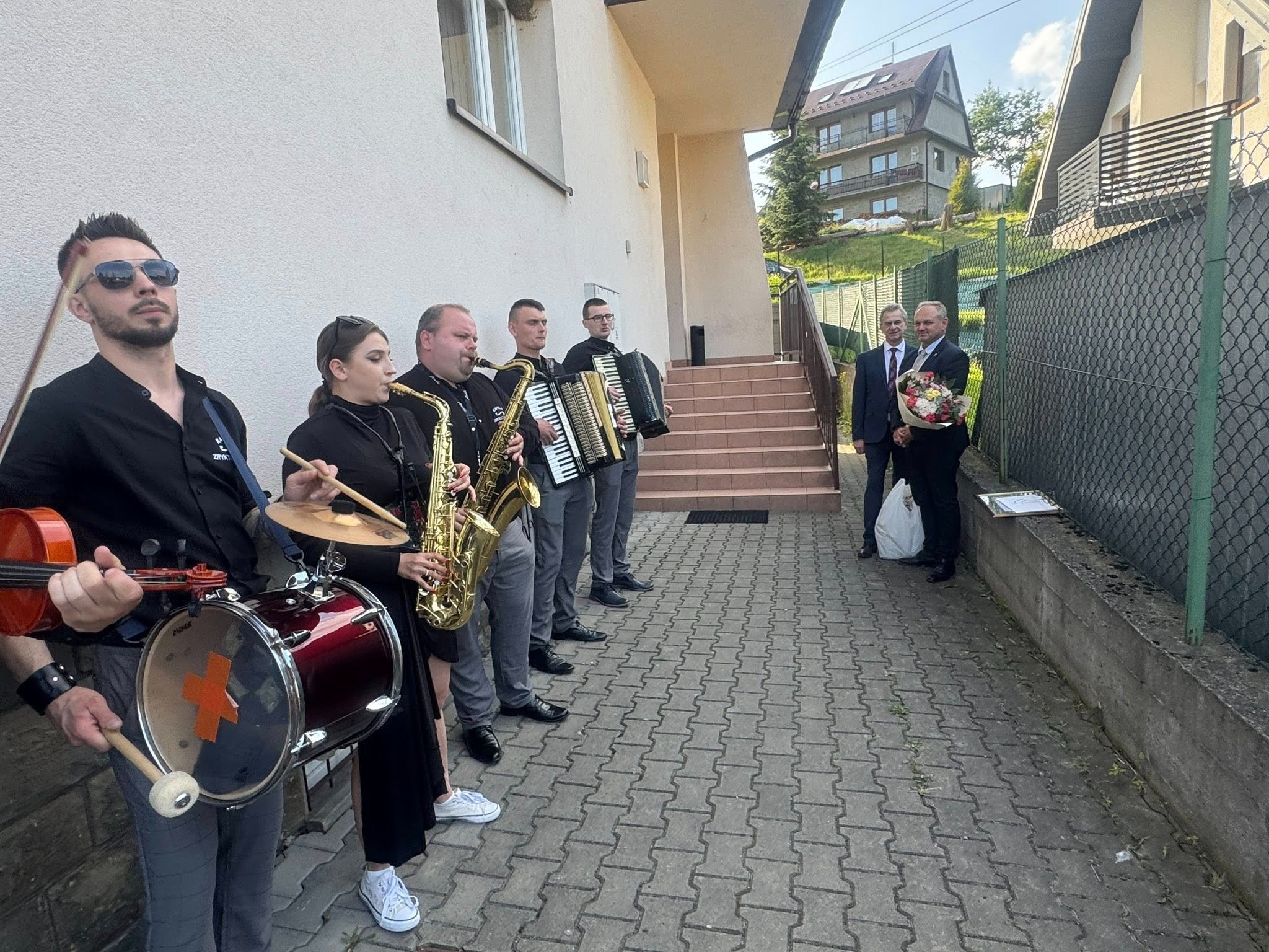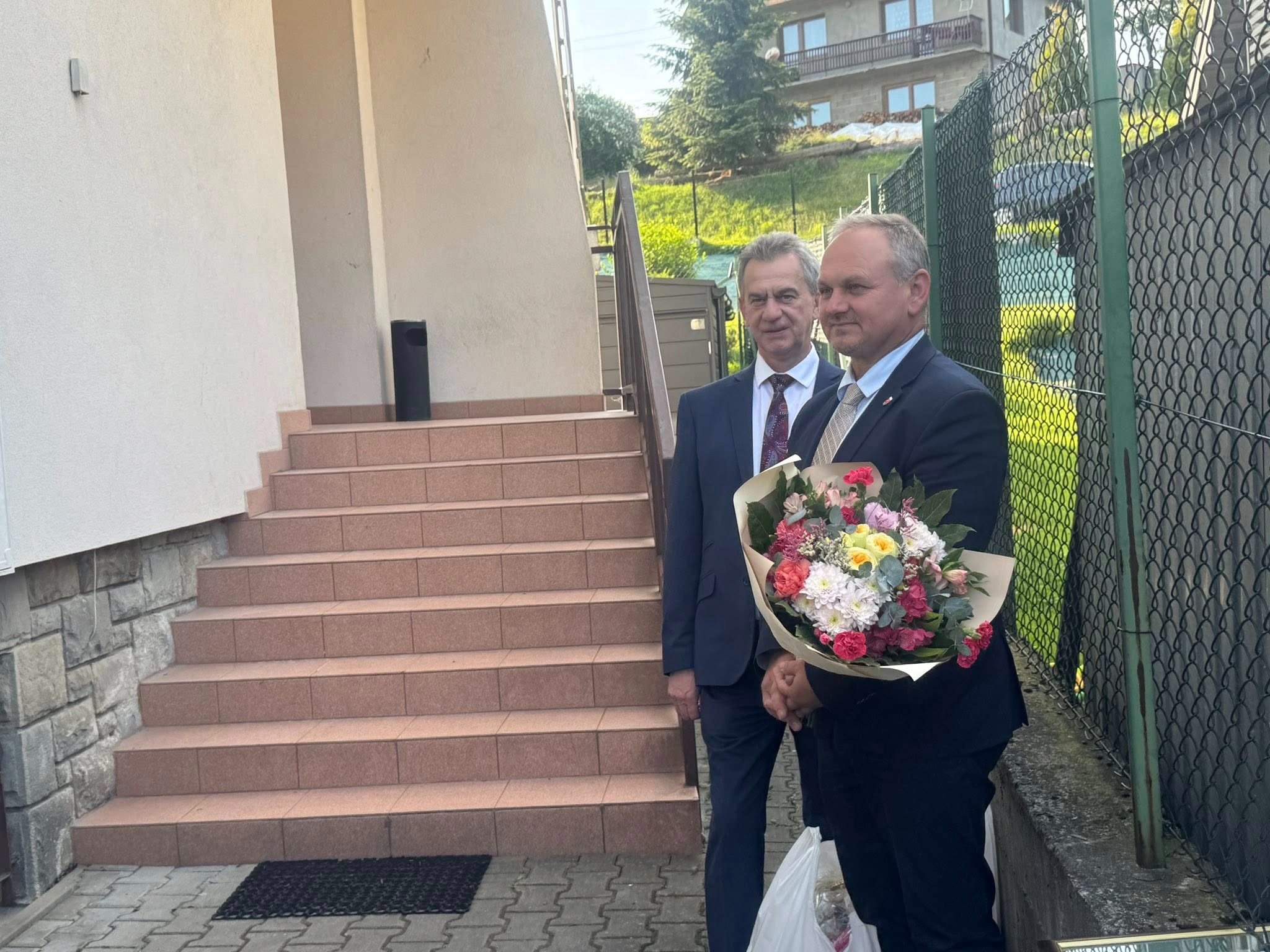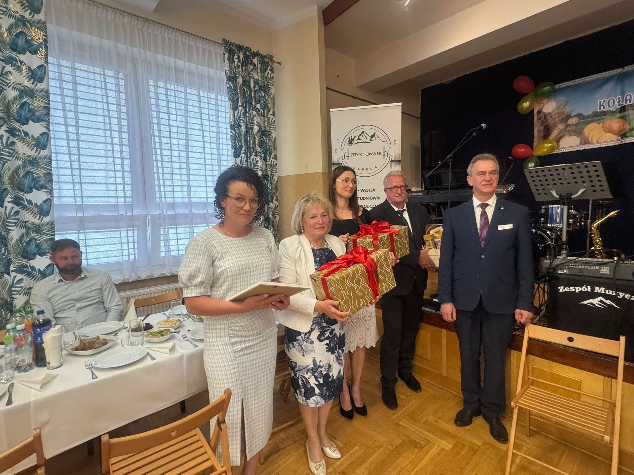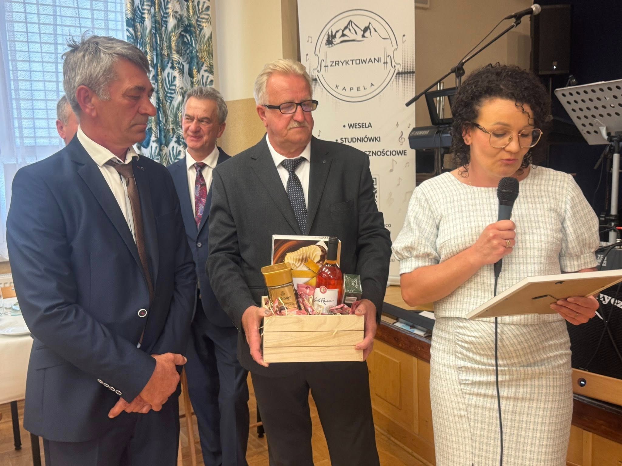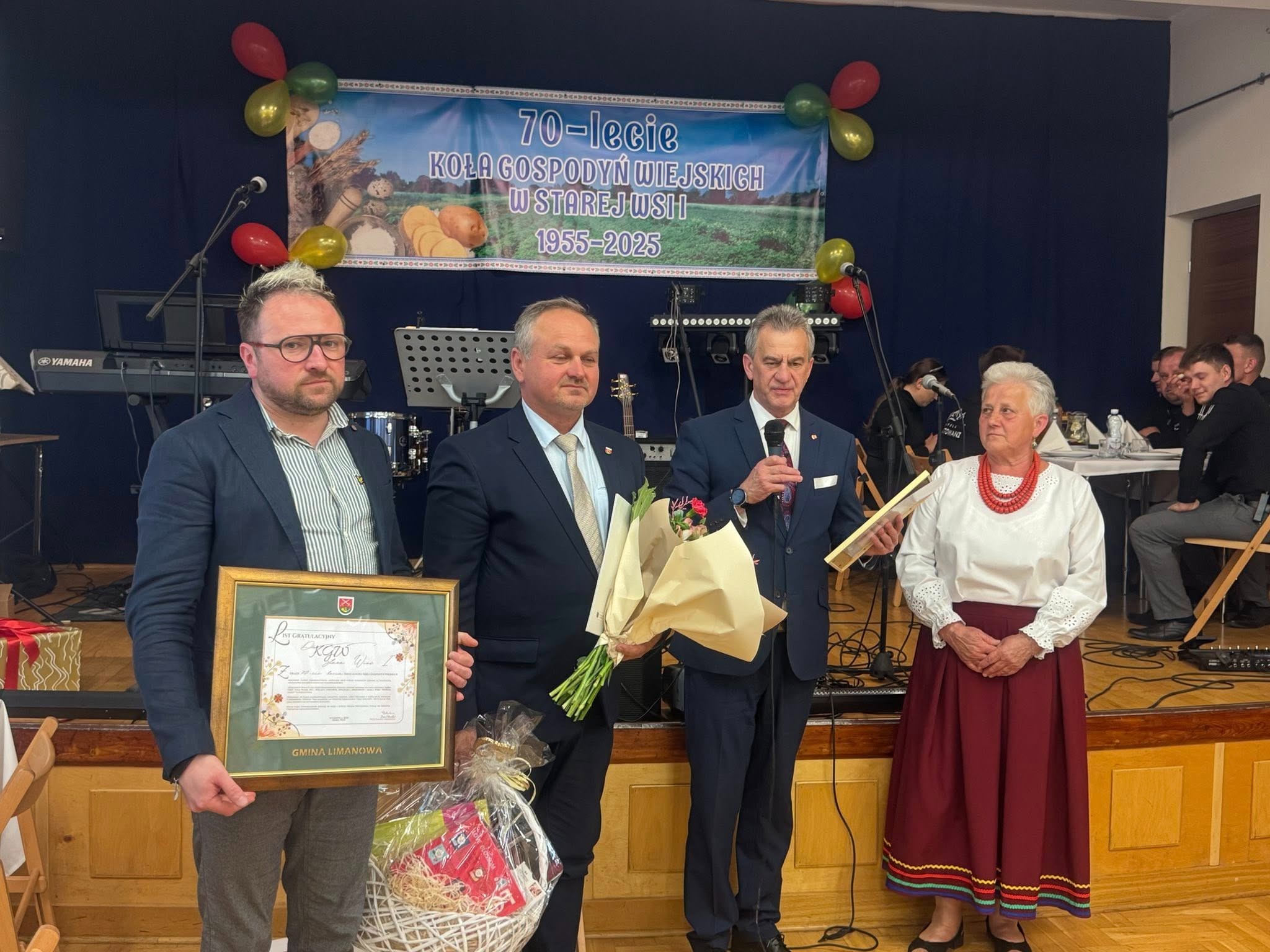 Gratulacje paniom złozyl Wójy Gminy Limanowa Jan Skrzeku, Kierownik Wydziału Kultury i Promocji Urzędu Gminy Limanowa Wojciech Korabik, Starosta Powiatu Limanowskiego Mieczysław Uryga, Radny Gminy Limanowa Bogdan Pałka, Sołtys Starej Wsi Roli Magdalena Krzyżak wraz z radą sołecką.