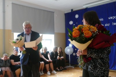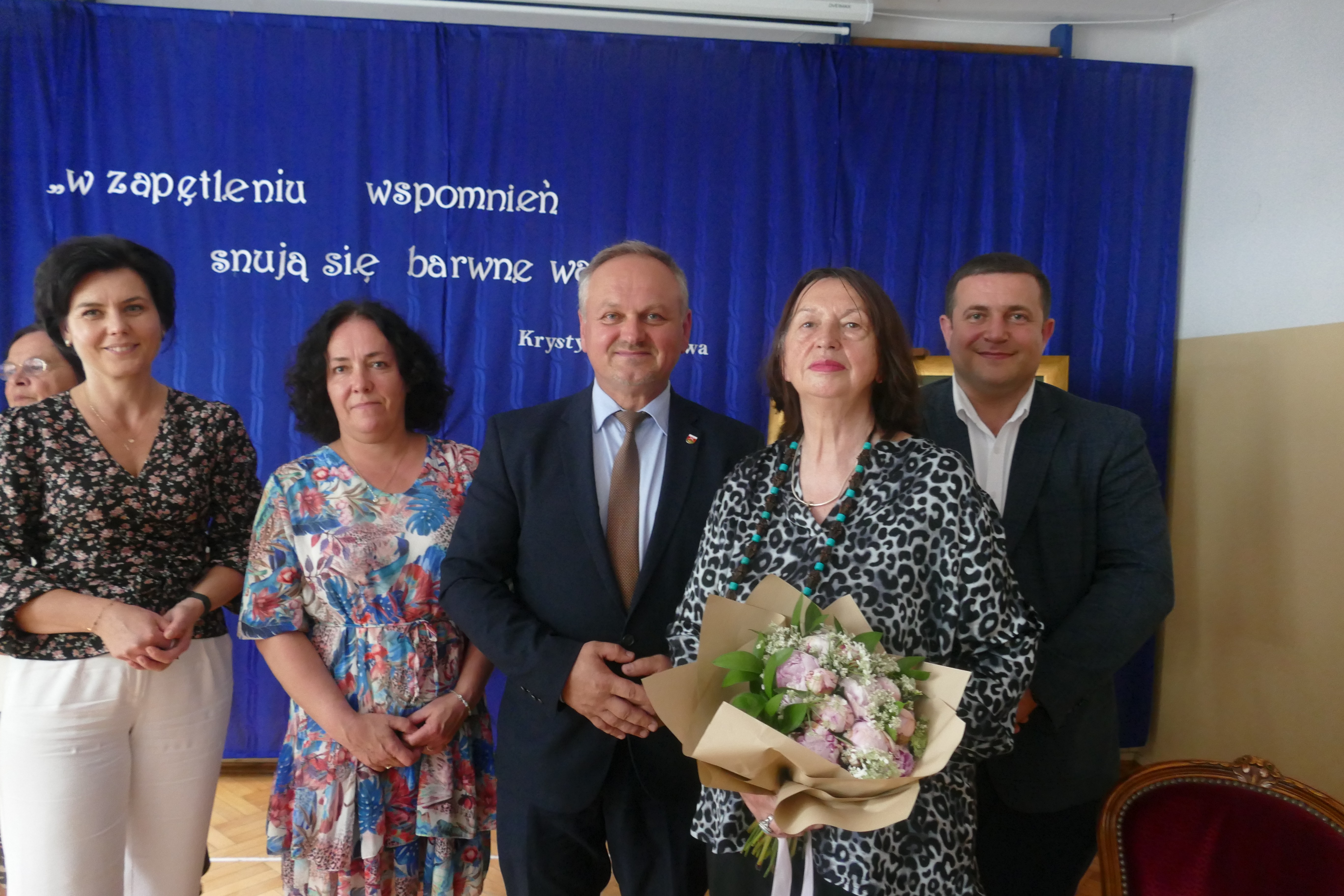 Wójt Gminy Limanowa Jan Skrzekut, Przewodniczący Rady Gminy Damian Łącki, Radna Maria Rzeźnik oraz Dyrektor Edyta Król przekazali Pani Krystynie gratulacje i życzenia. Dołączyła do nich również Dyrektor Szkoły Podstawowej Bożena Golonka wraz z uczniami oraz Józef Golonka – kolega z klasy i inicjator wydarzenia. Prowadzący spotkanie Jacenty Musiał wręczył artystce list gratulacyjny: