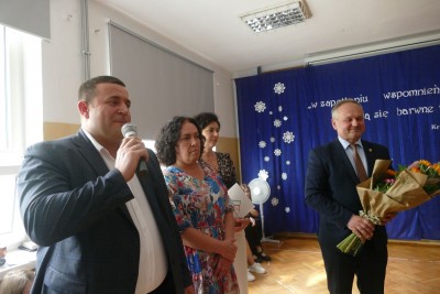 Gospodarz uroczystości, Dyrektor Szkoły Podstawowej w Młynnem, Bożena Golonka, serdecznie powitała wszystkich zebranych, wyrażając radość z obecności tak wielu gości i absolwentów. Następnie przekazała prowadzenie uroczystości Jacentemu Musiałowi – Dyrektorowi Gminnej Biblioteki Publicznej w Starej Wsi.