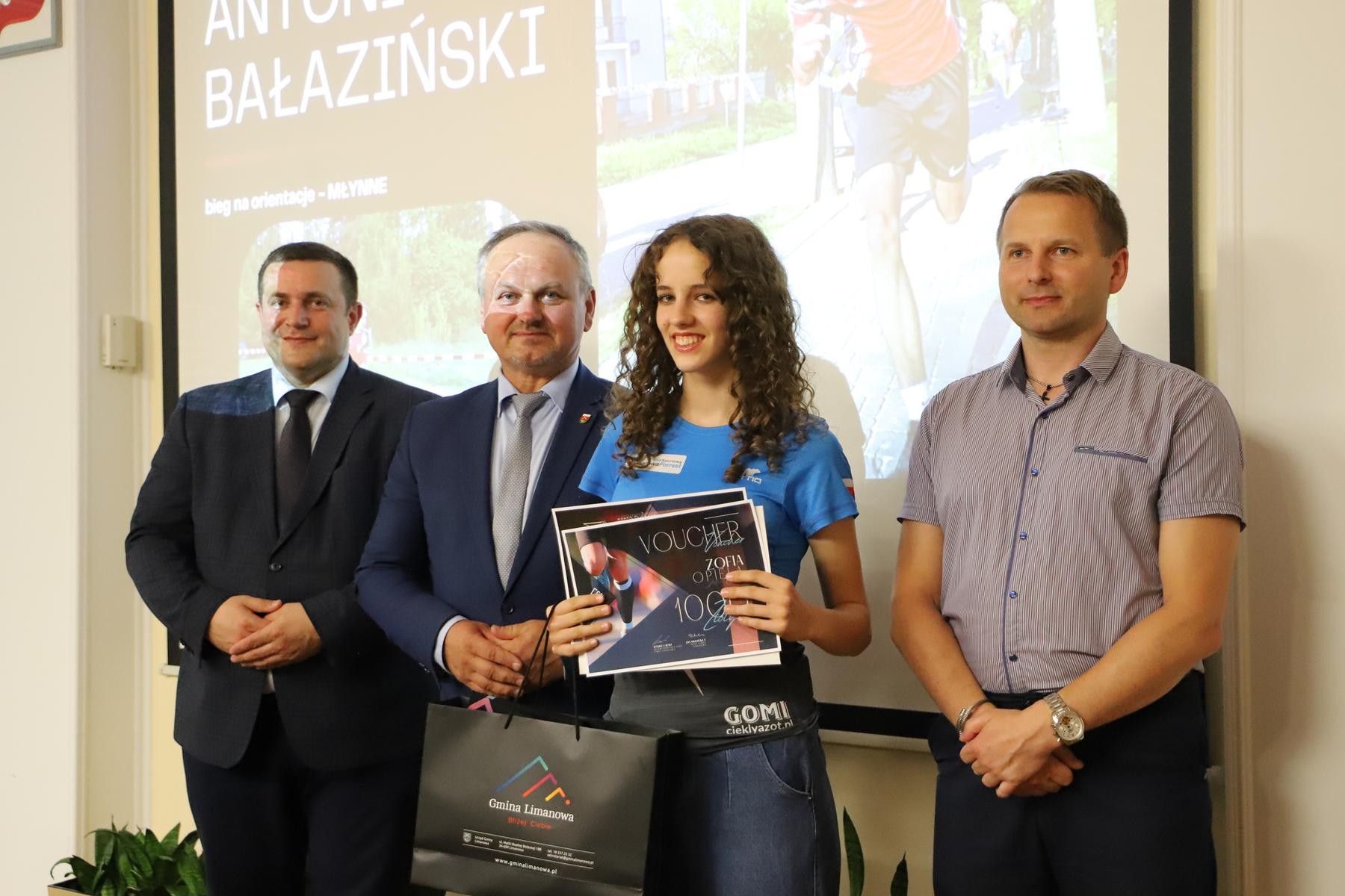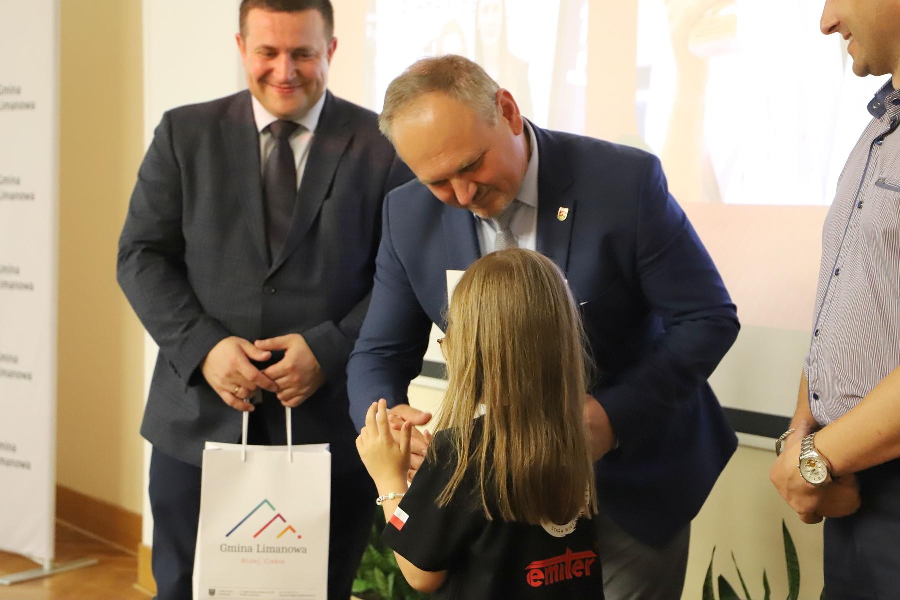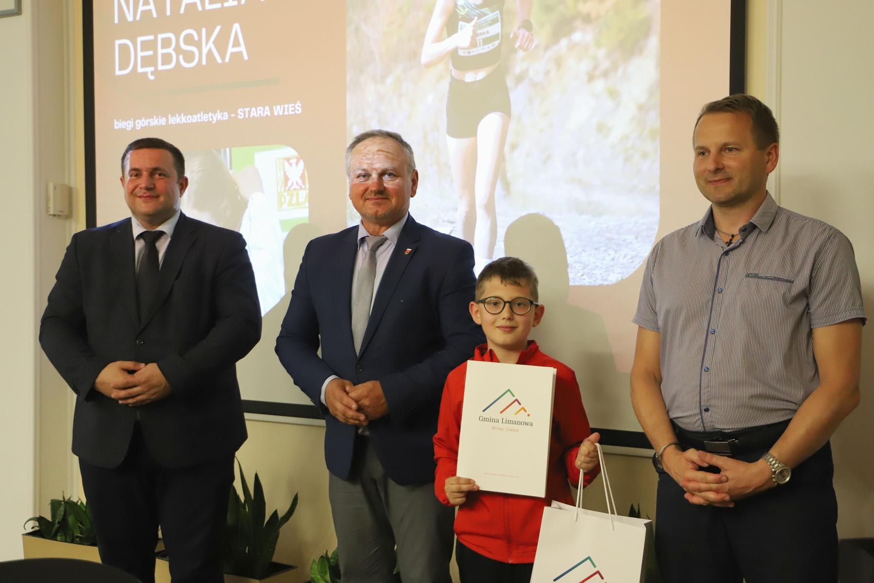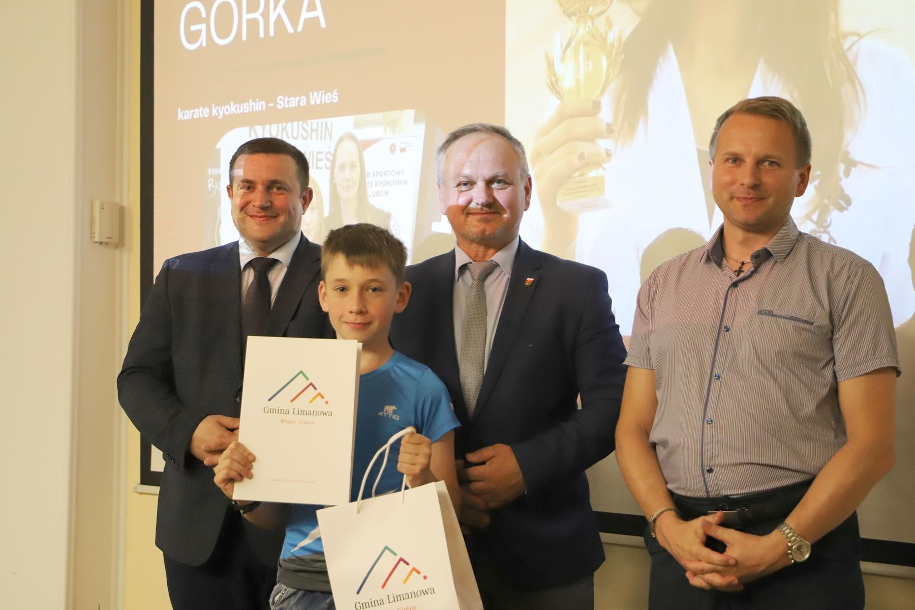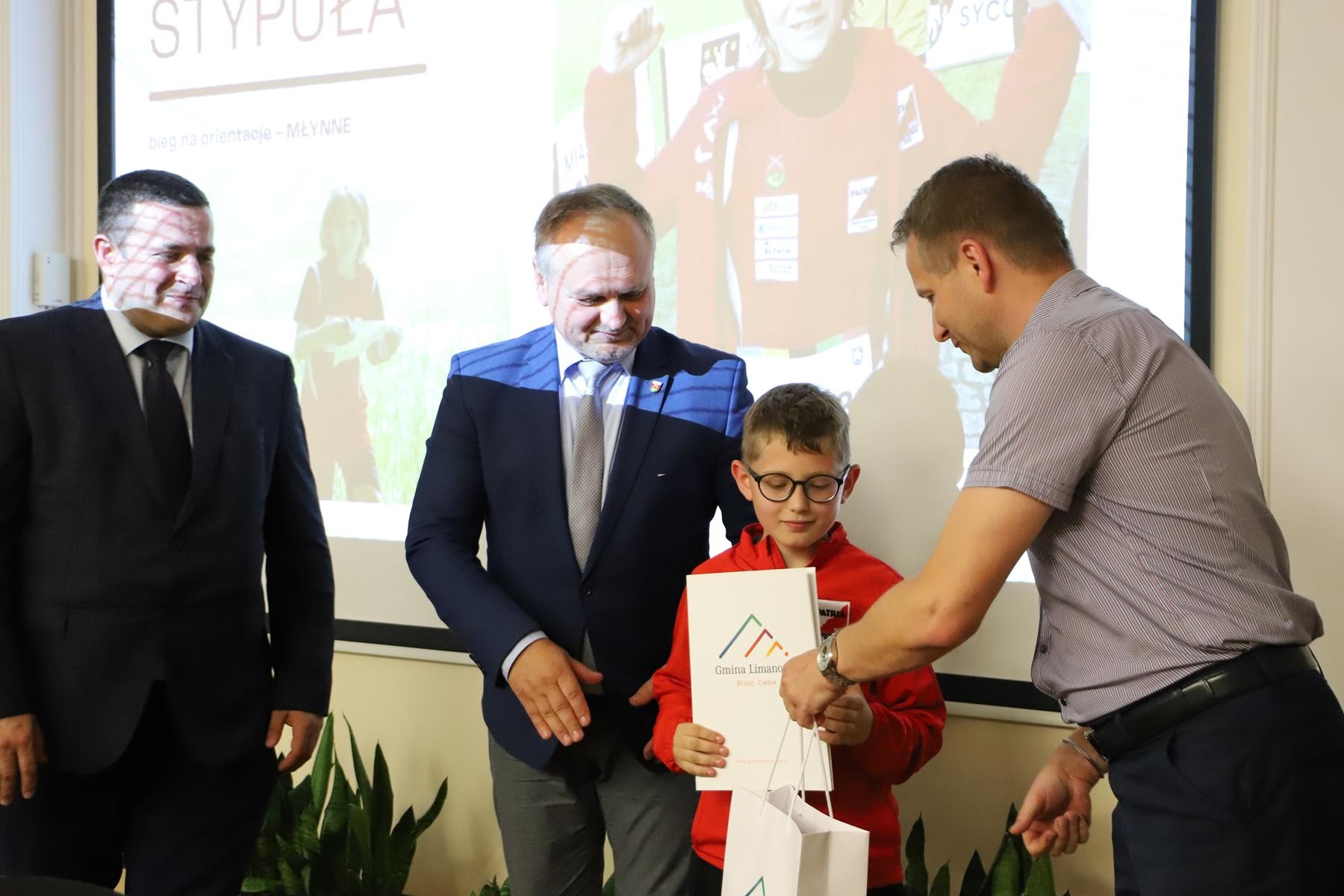 Sportowcy odebrali nagrody oraz okolicznościoe dyplomy gratulacyjne z rąk Wójta Gminy Limanowa