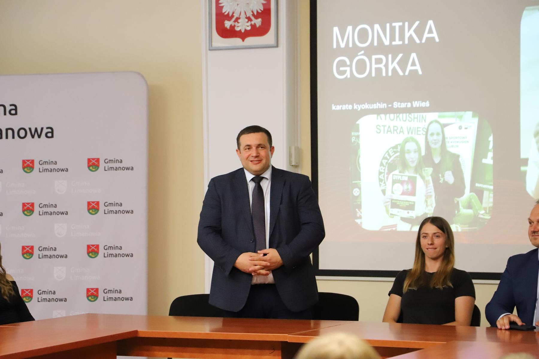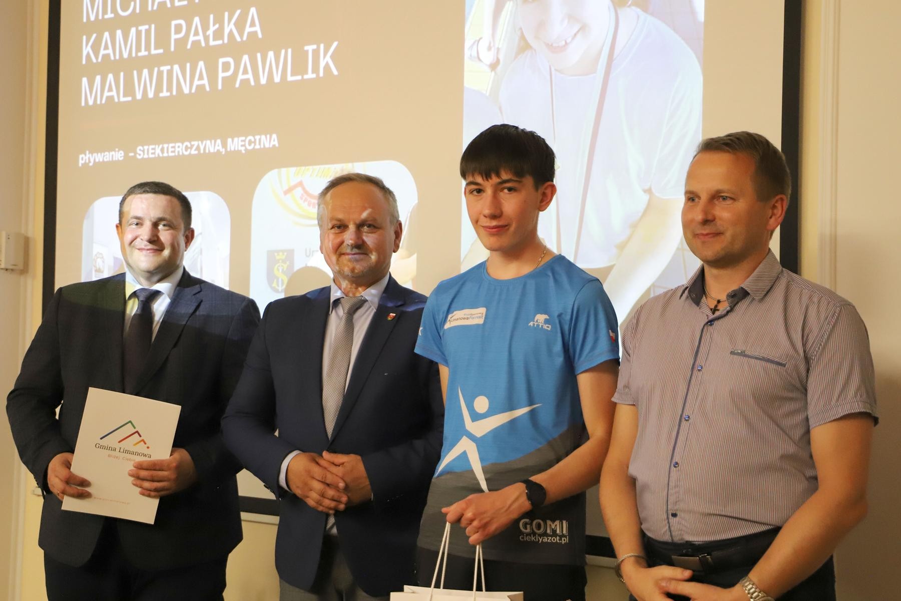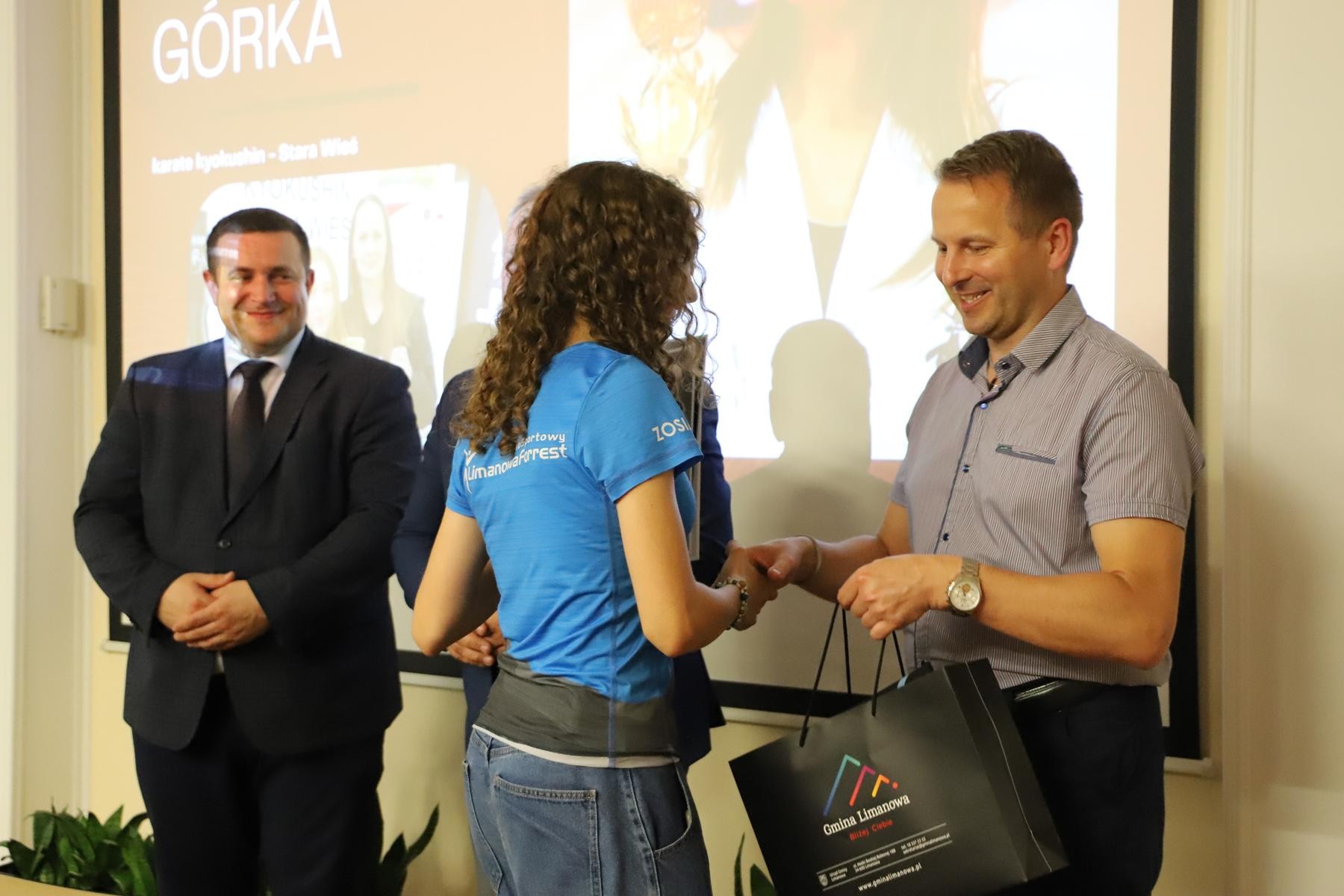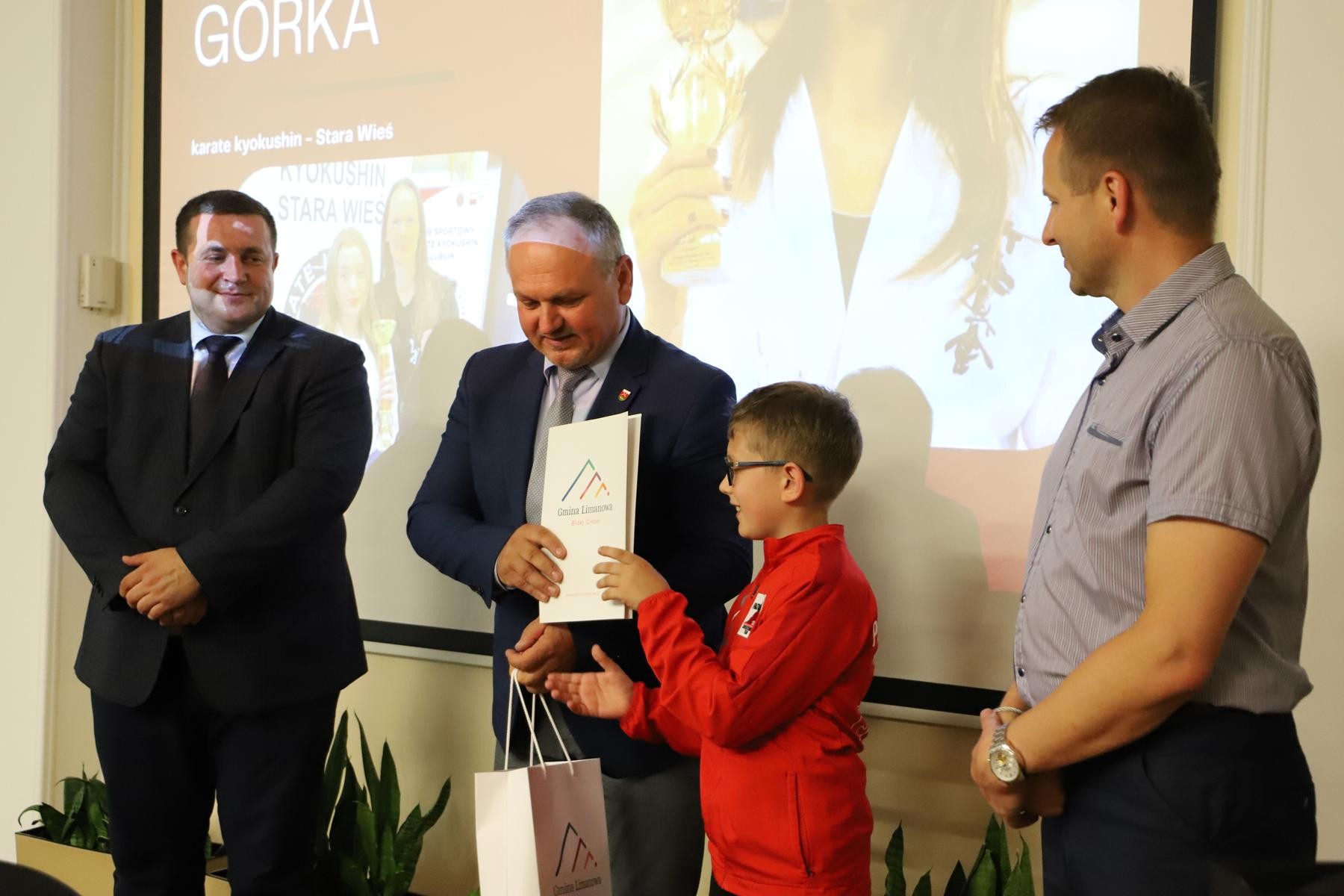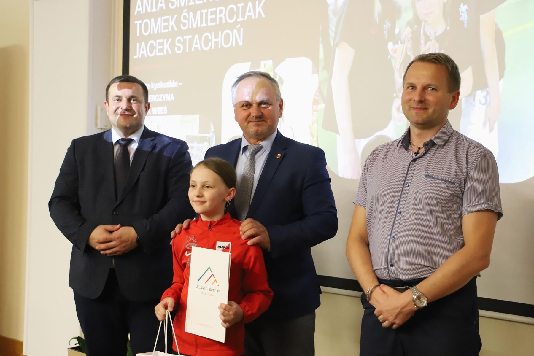 Sportowcy odebrali nagrody oraz okolicznościoe dyplomy gratulacyjne z rąk Wójta Gminy Limanowa