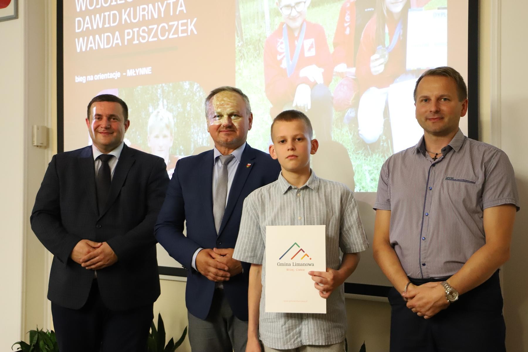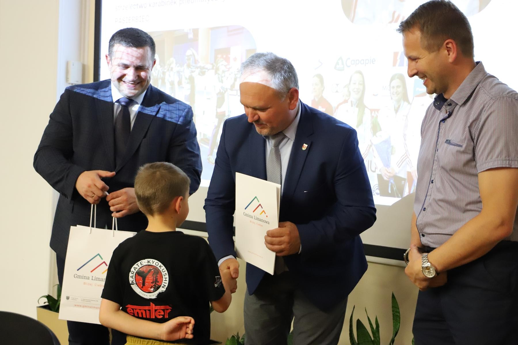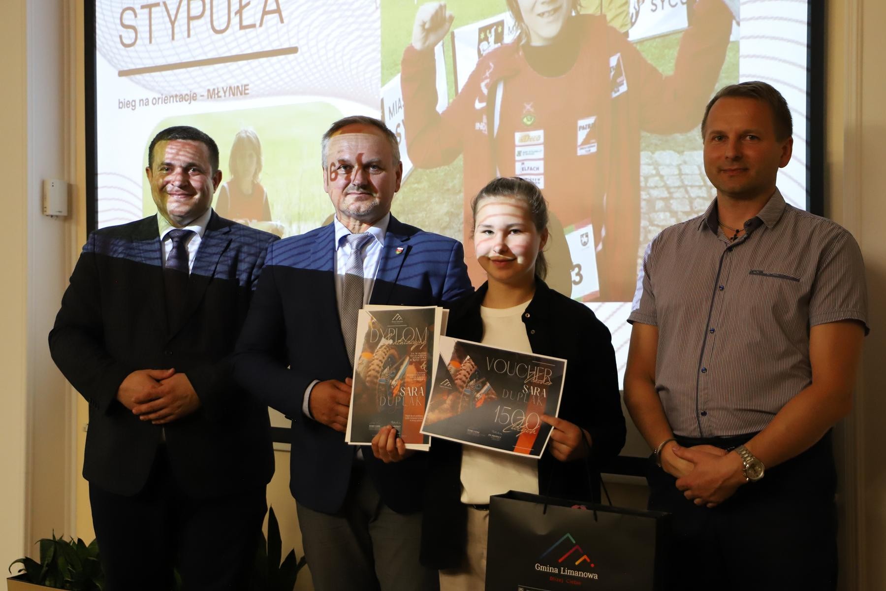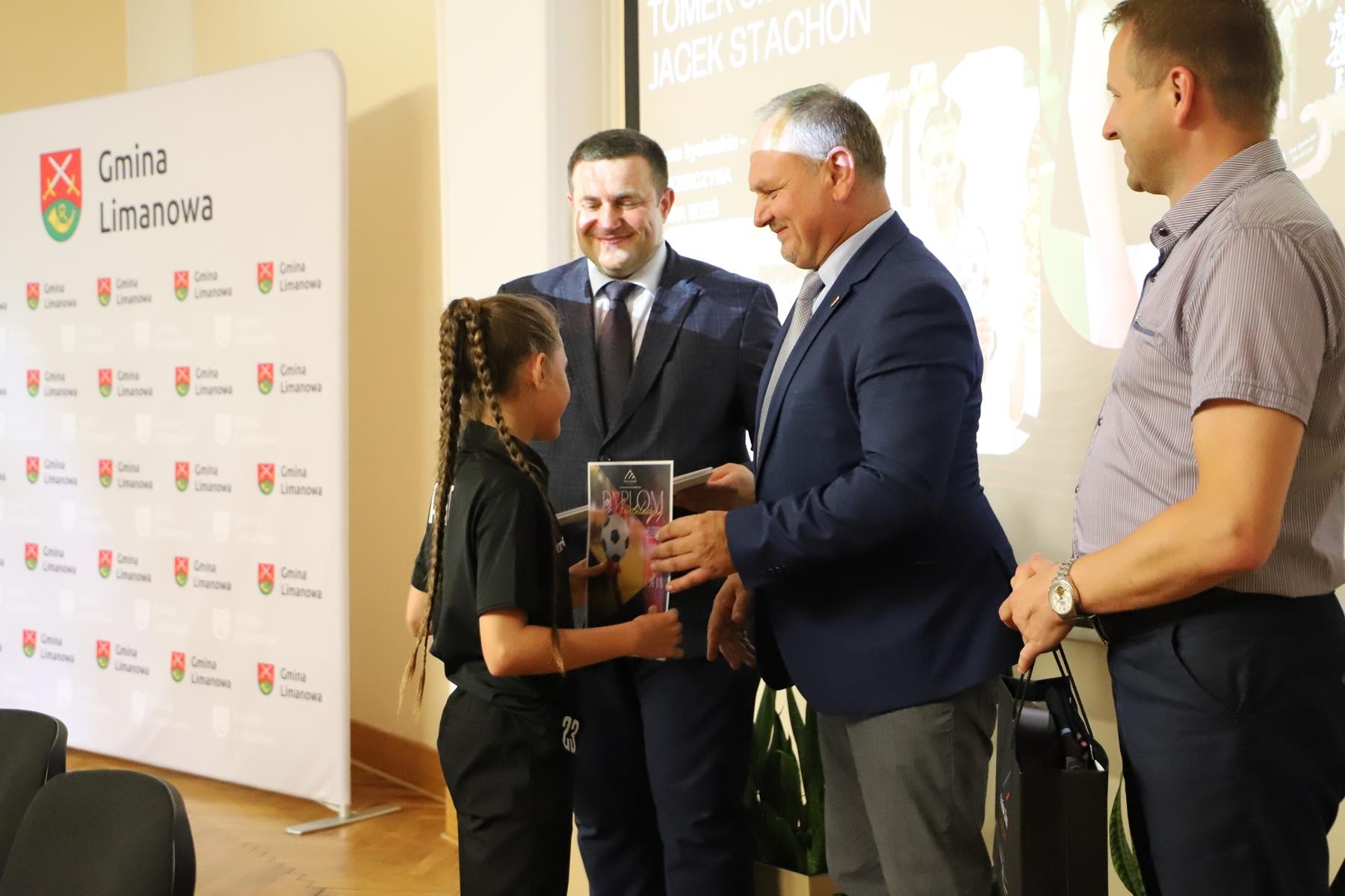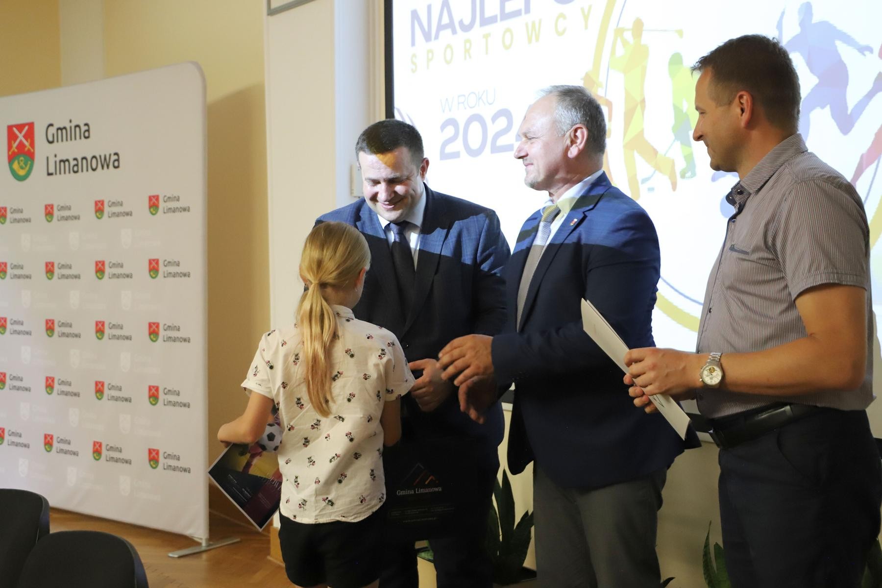 Sportowcy odebrali nagrody oraz okolicznościoe dyplomy gratulacyjne z rąk Wójta Gminy Limanowa