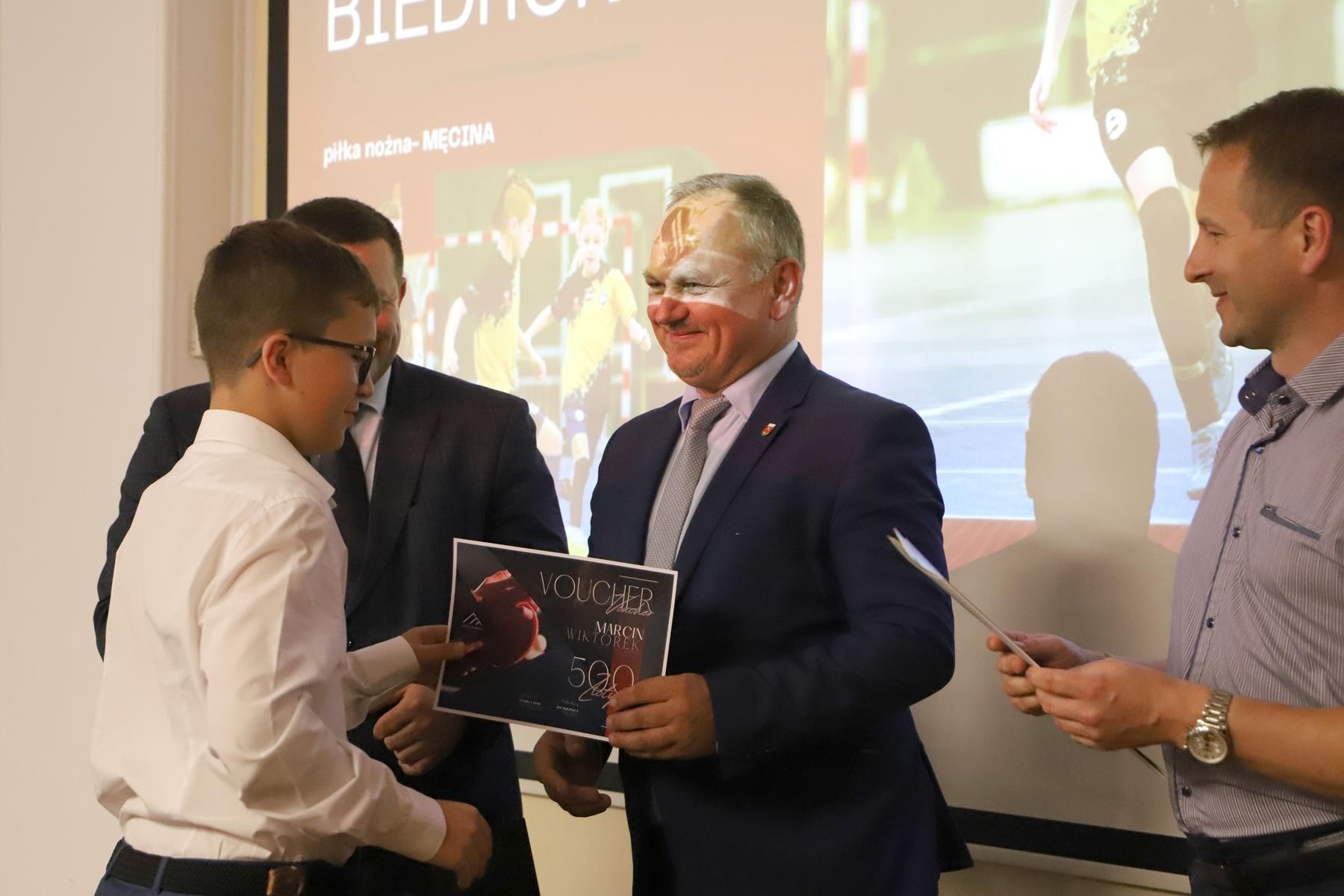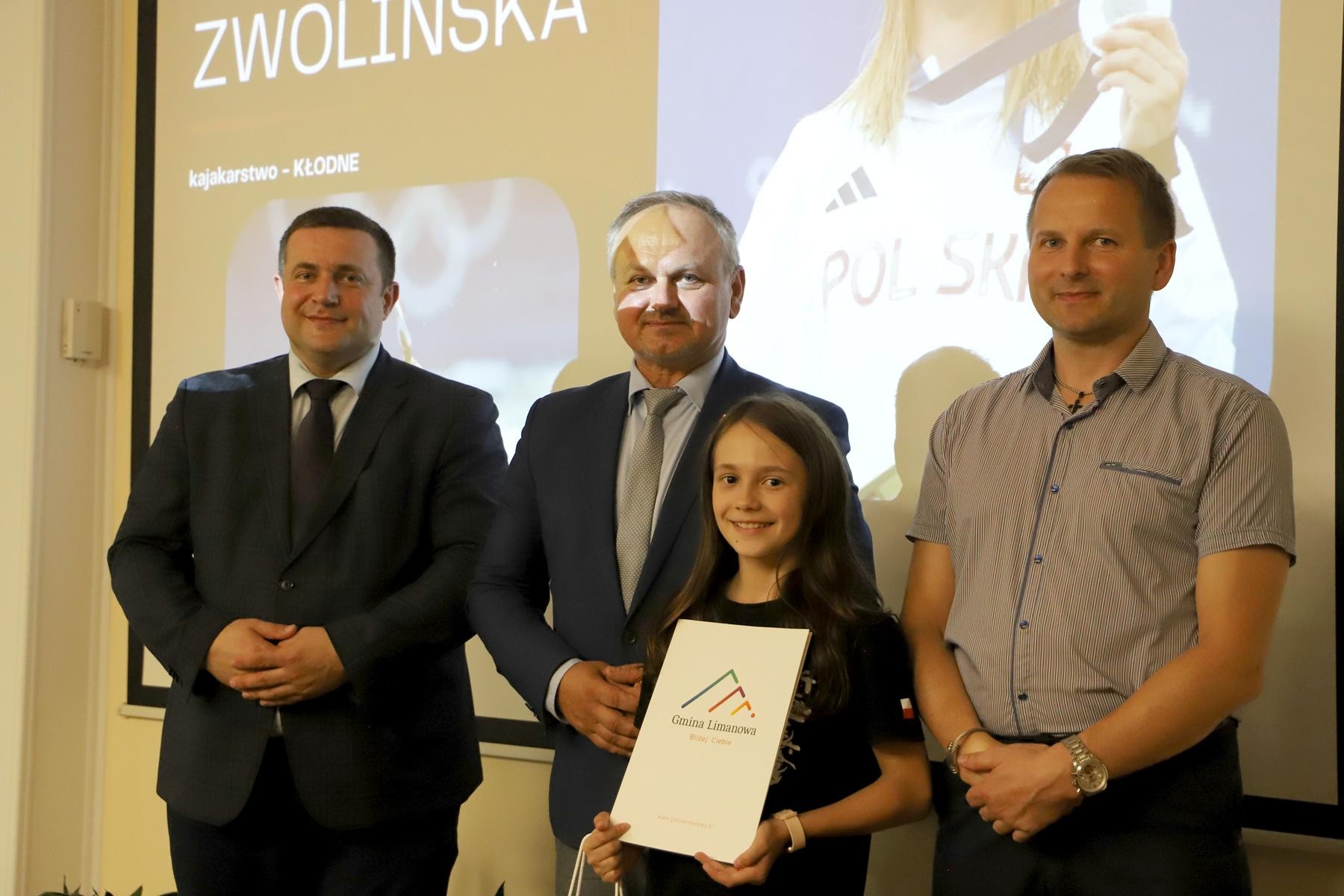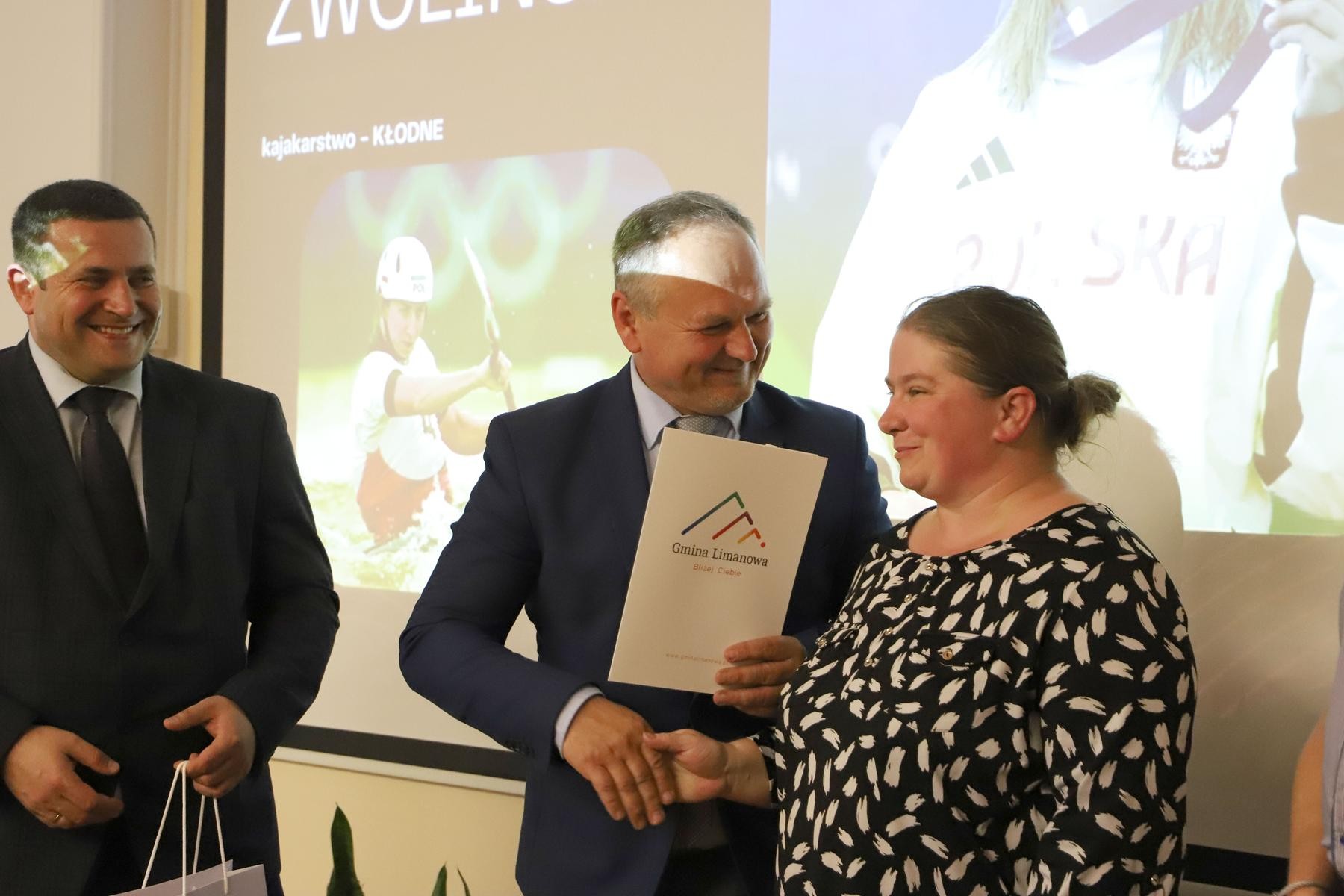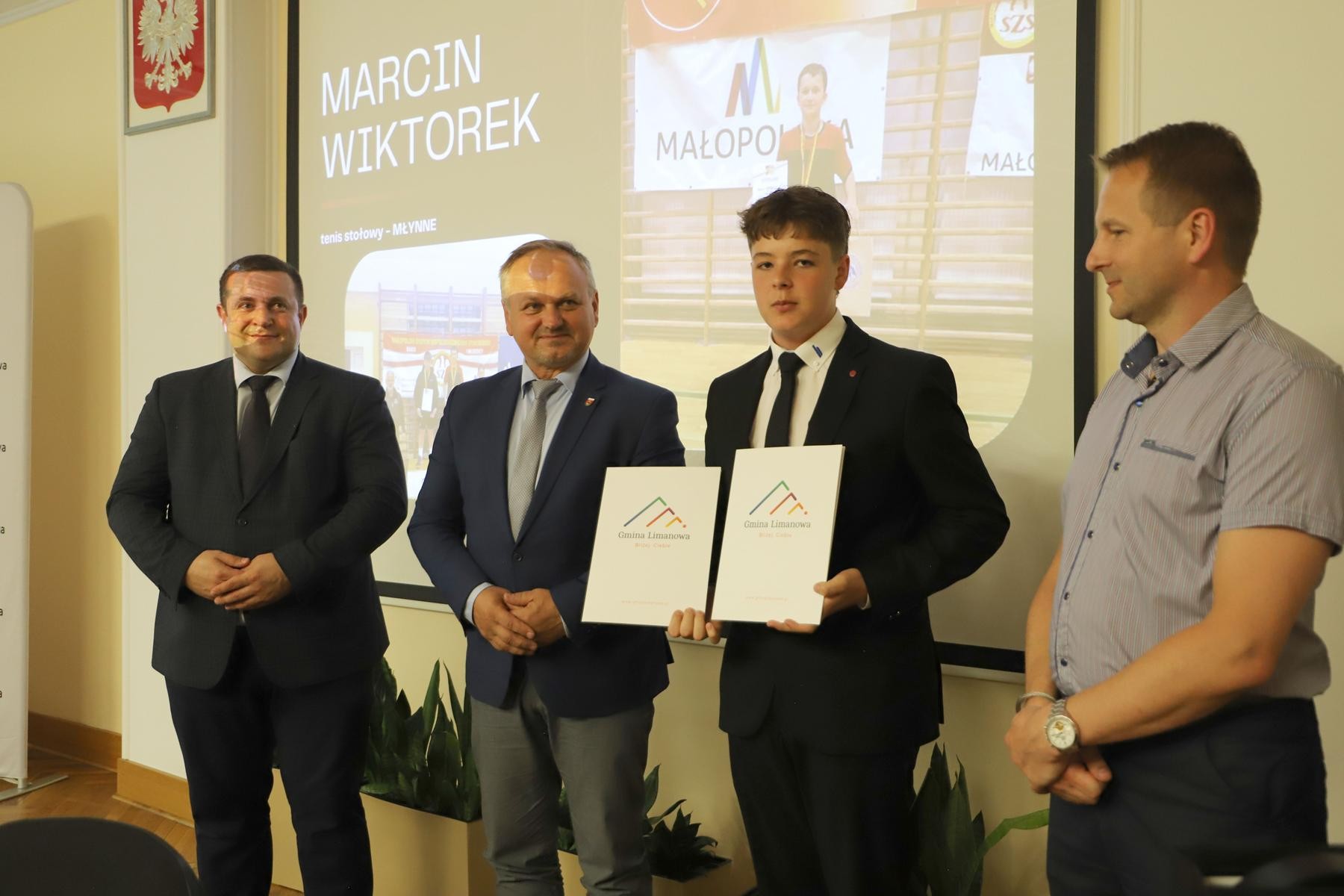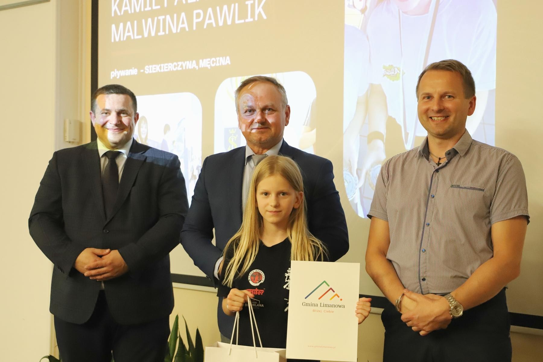 Sportowcy odebrali nagrody oraz okolicznościoe dyplomy gratulacyjne z rąk Wójta Gminy Limanowa