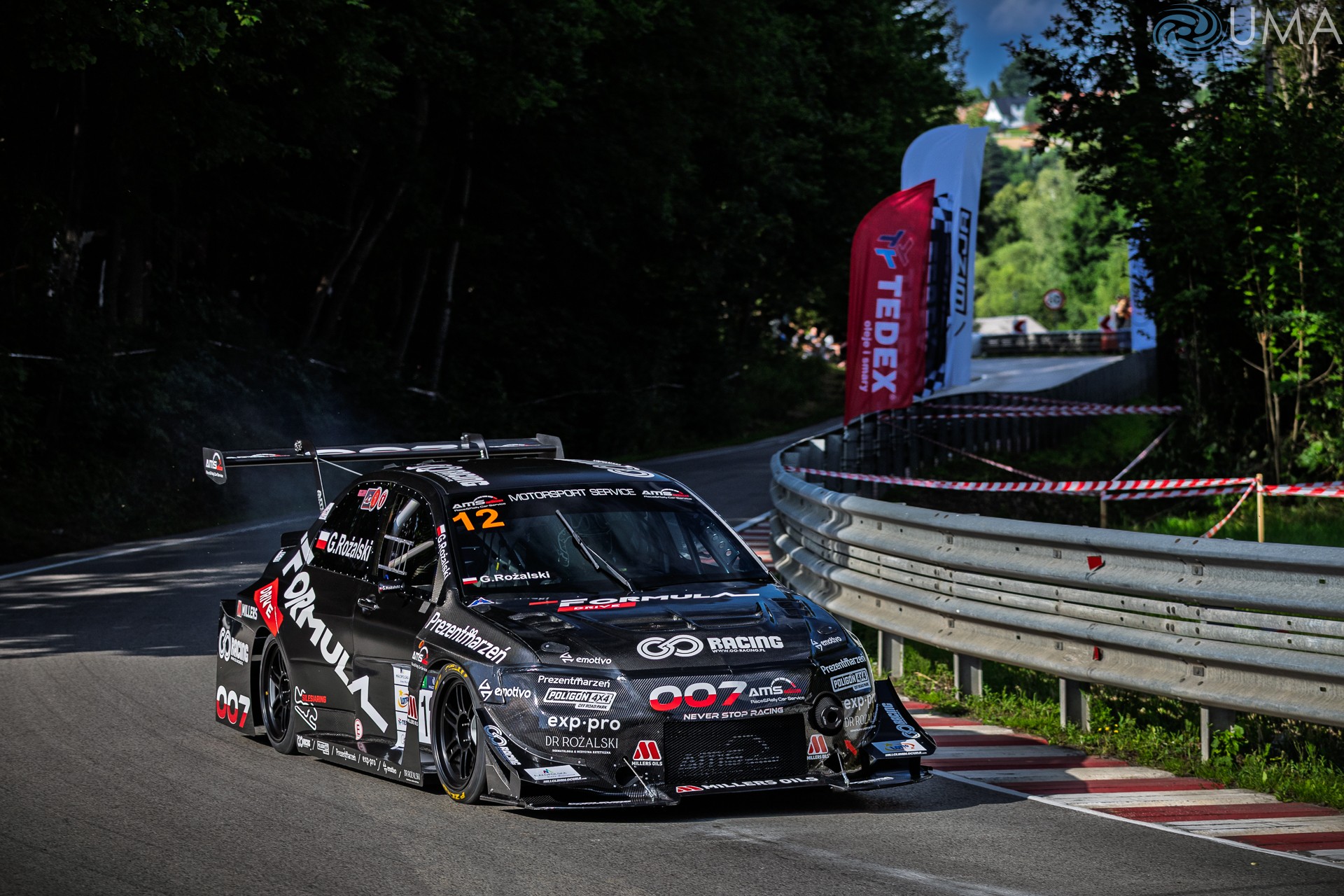 W klasyfikacji mistrzostw Polski oba podjazdy najszybciej pokonał Rożalski, bijąc z czasem 2:04,215 o 0:0102 sekundy swój własny rekord trasy dla samochodów Kategorii 1 ( pojazdy z nadwoziem zamkniętym). W pierwszym podjeździe wyścigowym na miejscu drugim sklasyfikowano Roberta Sługockiego ( Mitsubishi lancer), który po przerwie spowodowanej awarią auta wcześniejsza podczas wcześniejszych rund GSMP, trzeci czas zanotował karol Krupa ( Skoda Fabia CT). W drugim podjeździe kolejność nieco się zmieniła, tym razem Krupa był szybszy od Sługockiego o 1,6 sekundy). W ostatecznych wynikach 7 Rundy GSMO w Kat. 1 pierwsze miejsce zajął Grzegorz Rożalski, z czasem 4:10,535 i średnią prędkością 158 km/h. Drugie miejsce przypadło Robertowi Sługockiemu, który zaliczył czas 4:20,944. Na najniższym stopniu podium stanął Karol Krupa ( 4:23,982). Dla porównania: Christian Merli pokonywał swoim bolidem liczącą 5493 metry trasę o ok. 8-9 sekund szybciej w każdym podjeździe niż konkurenci jeżdżący samochodami.