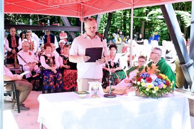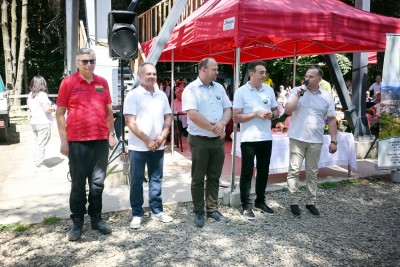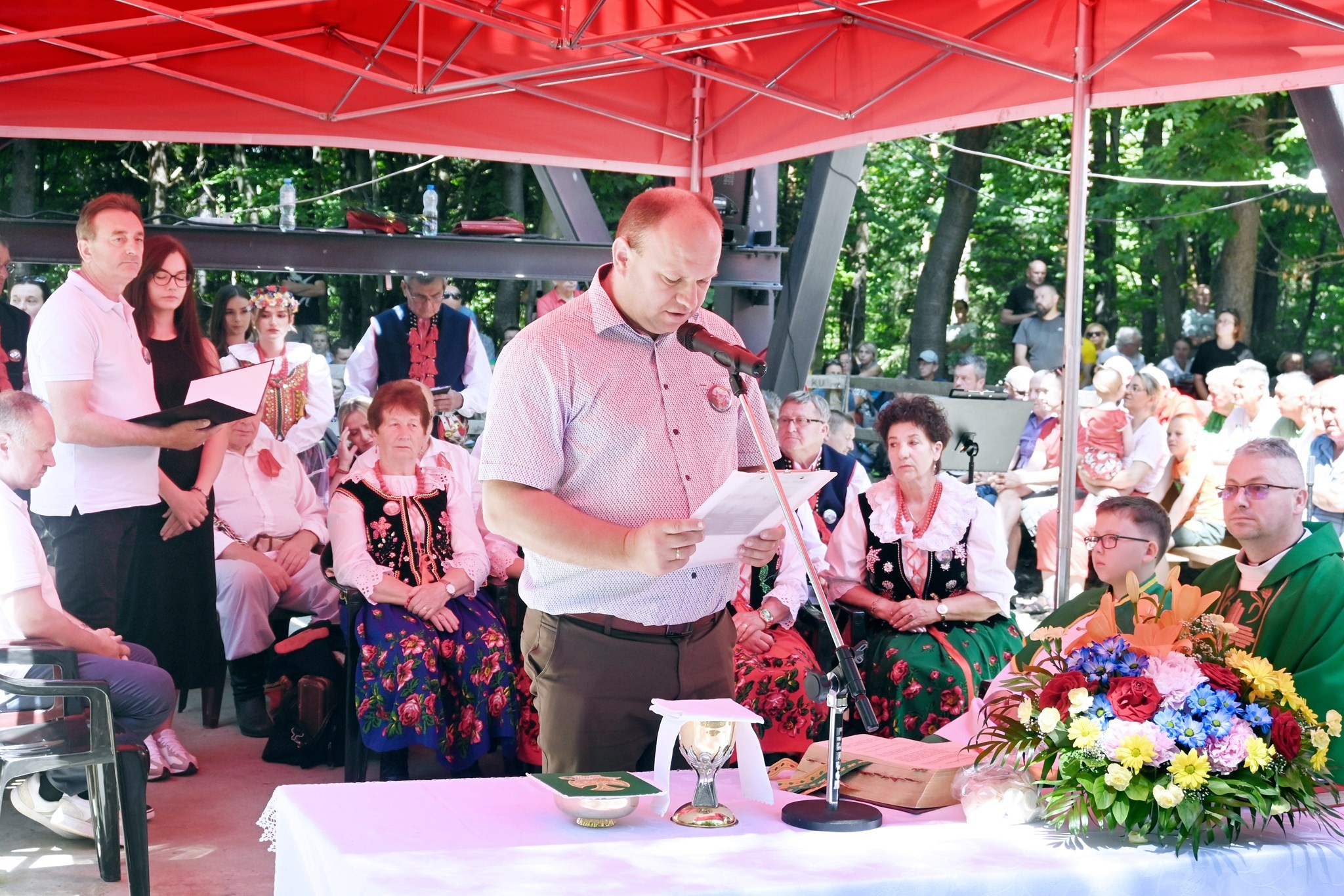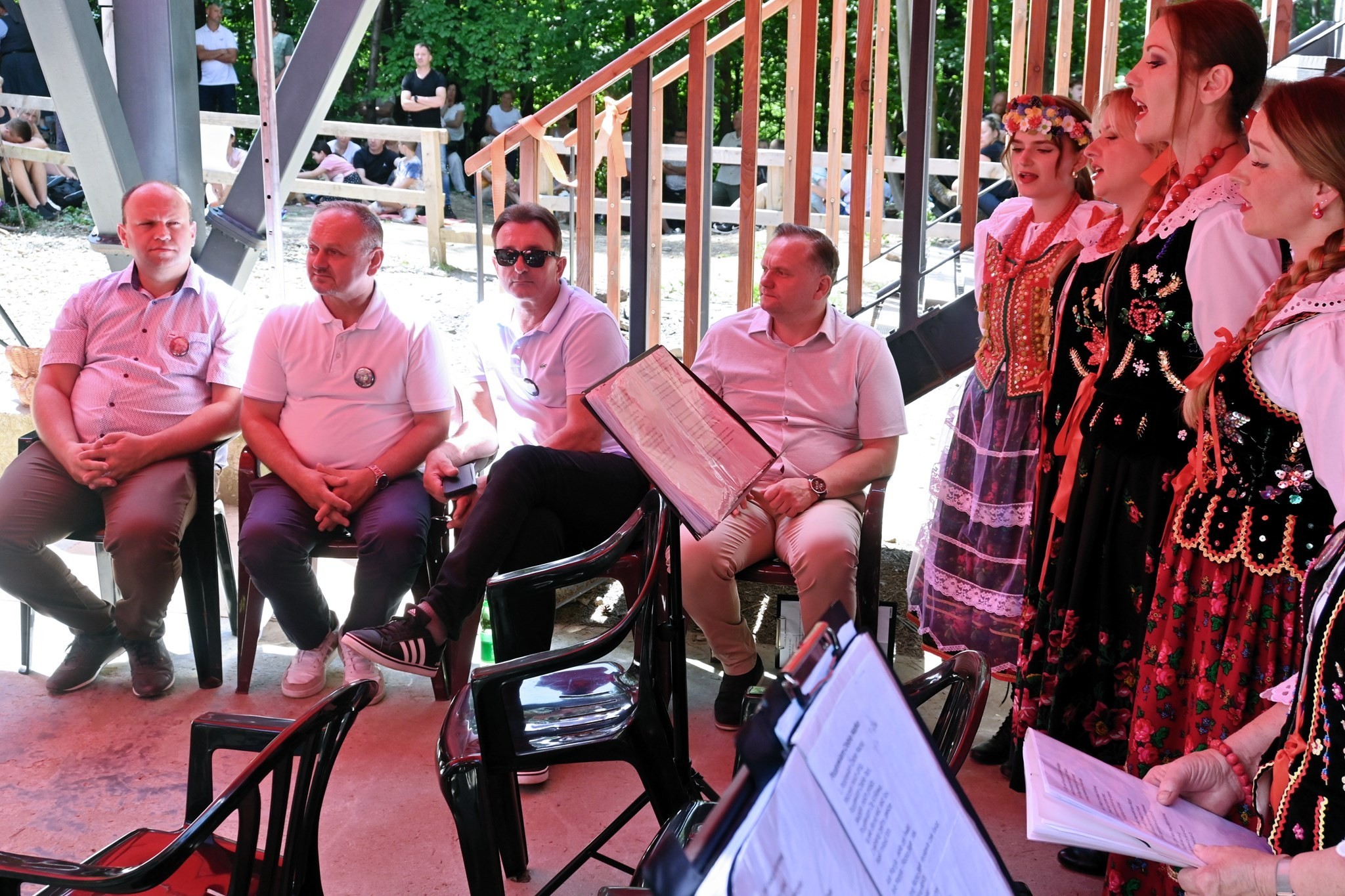 Powitanie: Piotr Stach- Wójt Gminy Laskowa, Wojciech Wrona- Wójt Gminy Żegocina, Cezary Stawarz- Wójt Gminy Trzciana, Jan Skrzekut- Wójt Gminy Limanowa..