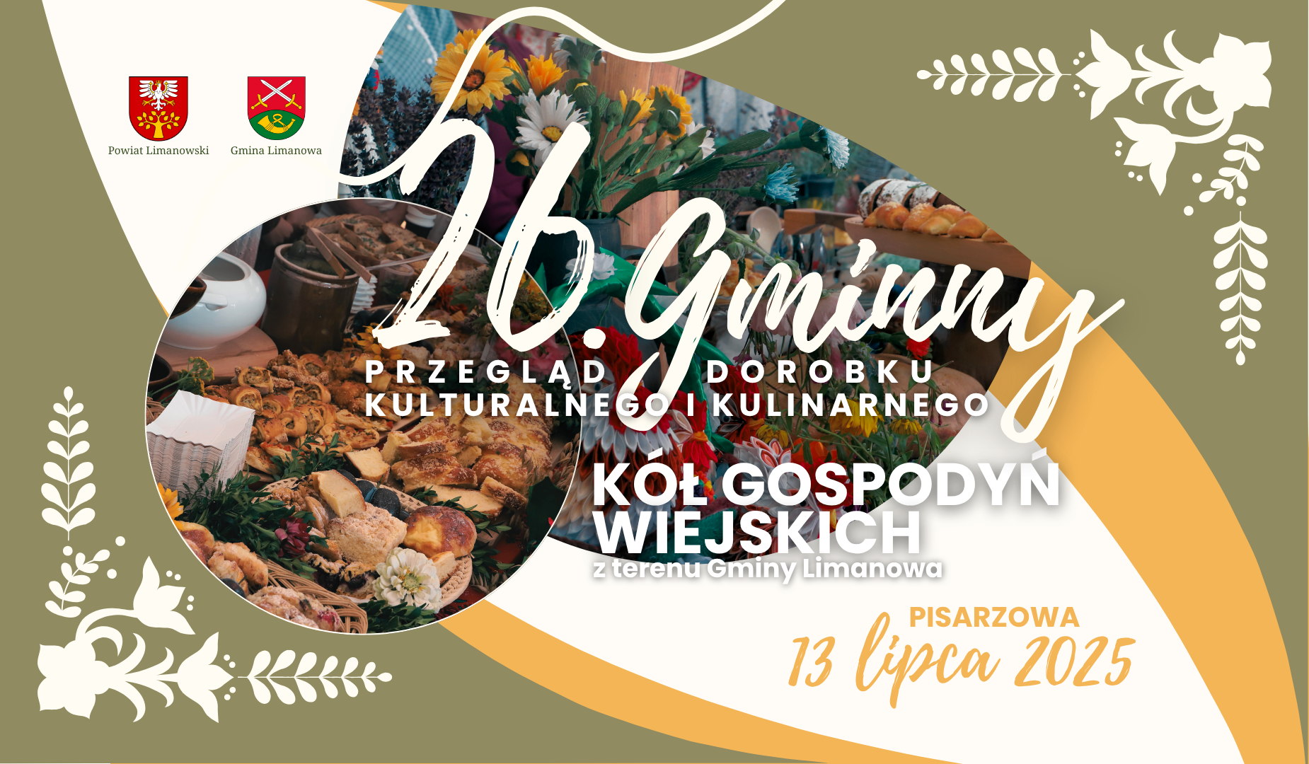 W niedzielę 13 lipca 2025 r. w Pisarzowej obok stadionu sportowego LKS Olimpia Pisarzowa odbędzie się 26. Gminny Przegląd Dorobku Artystycznego i Kulinarnego Kół Gospodyń Wiejskich.