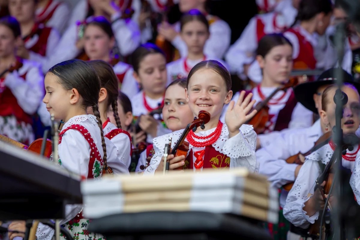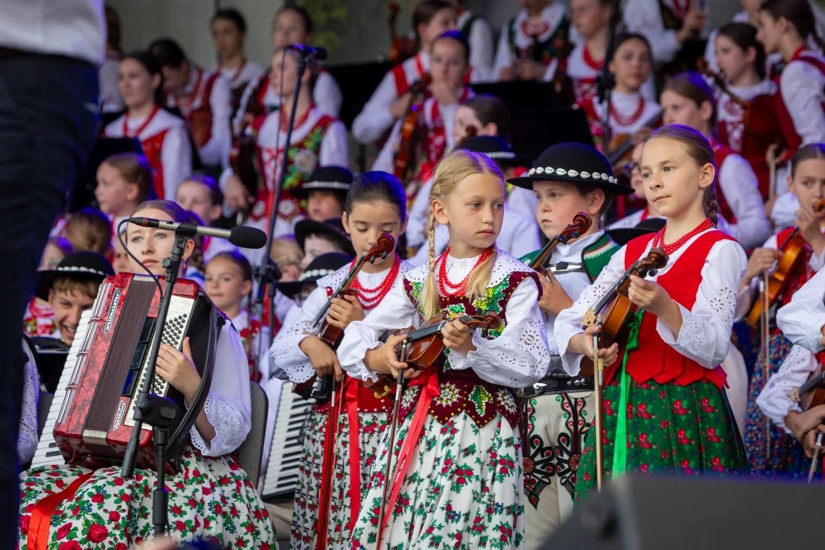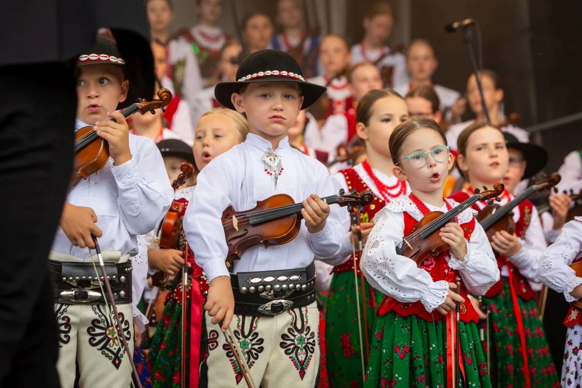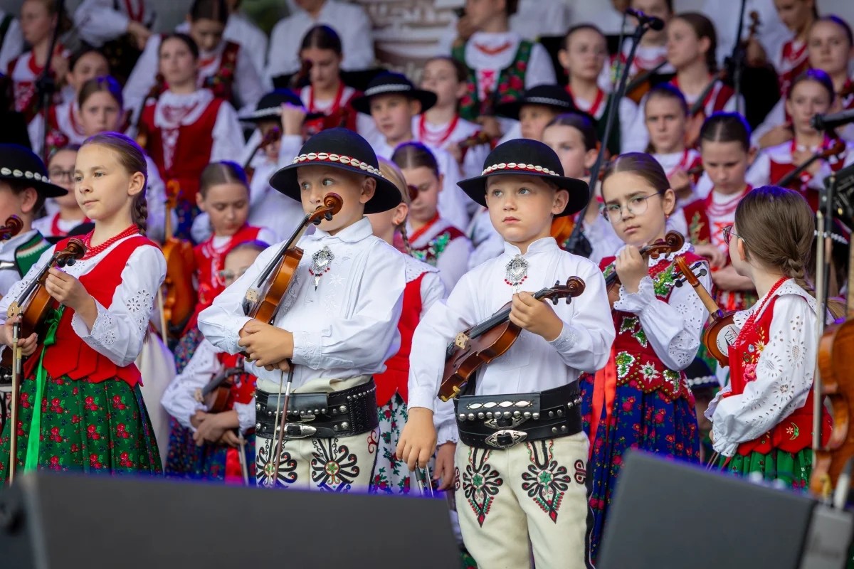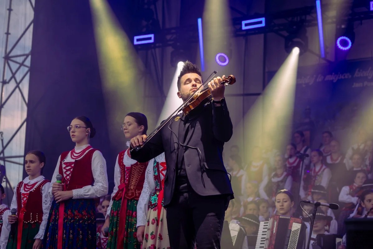 Małej Armii Janosika. Młodzi artyści, ubrani w tradycyjne, góralskie stroje, stworzyli niezapomniane widowisko. Ich występ był nie tylko hołdem dla muzyki i dziedzictwa regionu, ale również głębokim wyrazem wiary i jedności. W ich wykonaniu zabrzmiały utwory przeplatane słowami Świętego Jana Pawła II, co dodało koncertowi duchowej głębi i refleksyjnego tonu. Szczególnie wzruszające były momenty, gdy dziecięce głosy niosły się pod niebo – czyste, pełne nadziei, oddające piękno i niewinność młodego pokolenia. Widać było, że to, co najcenniejsze – tradycja, kultura i wiara – przekazywane są z serca do serca, z pokolenia na pokolenie.