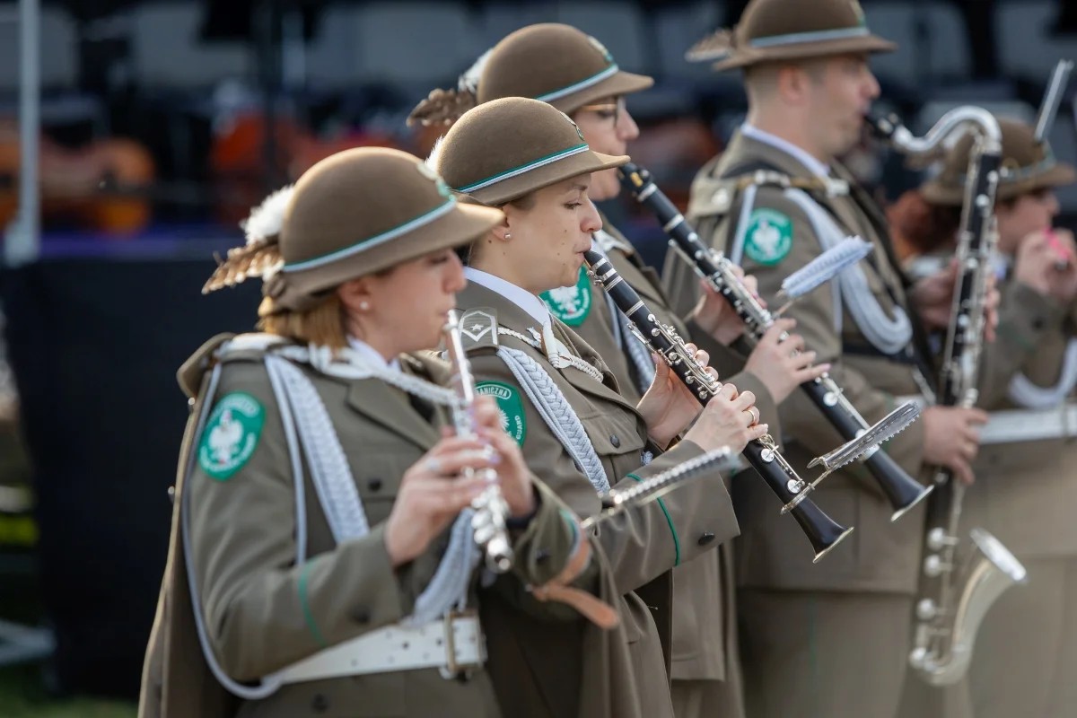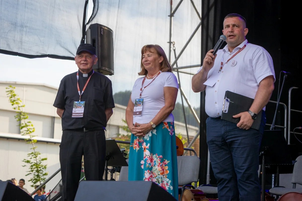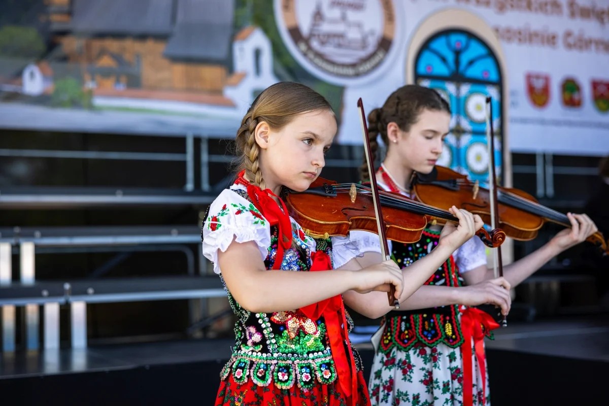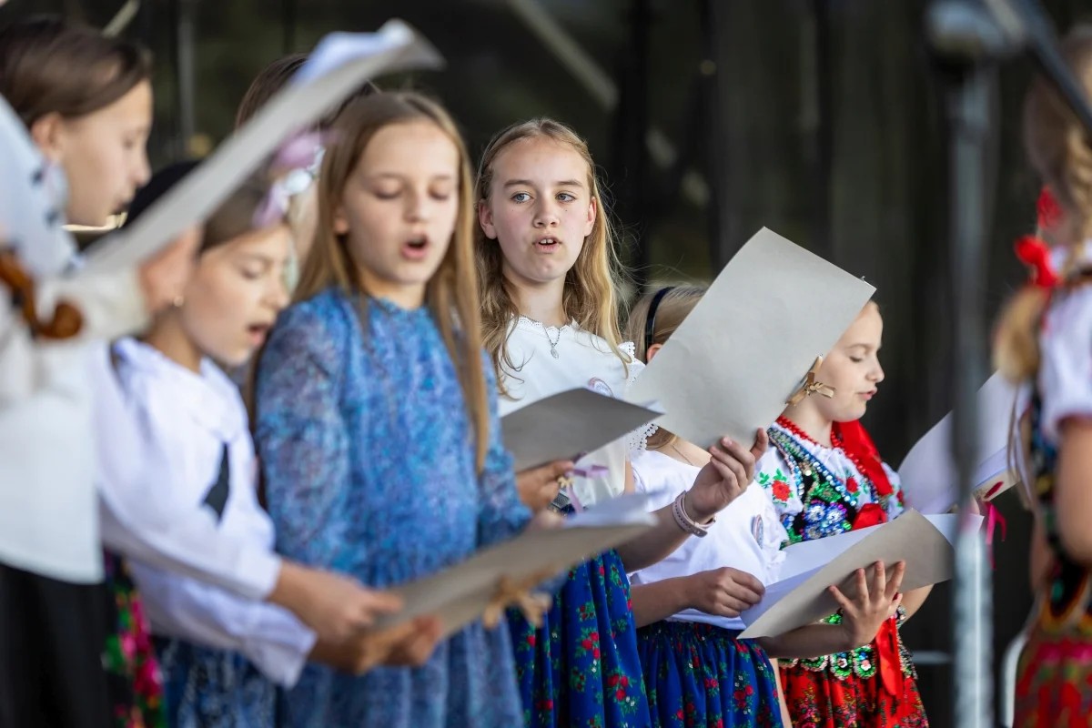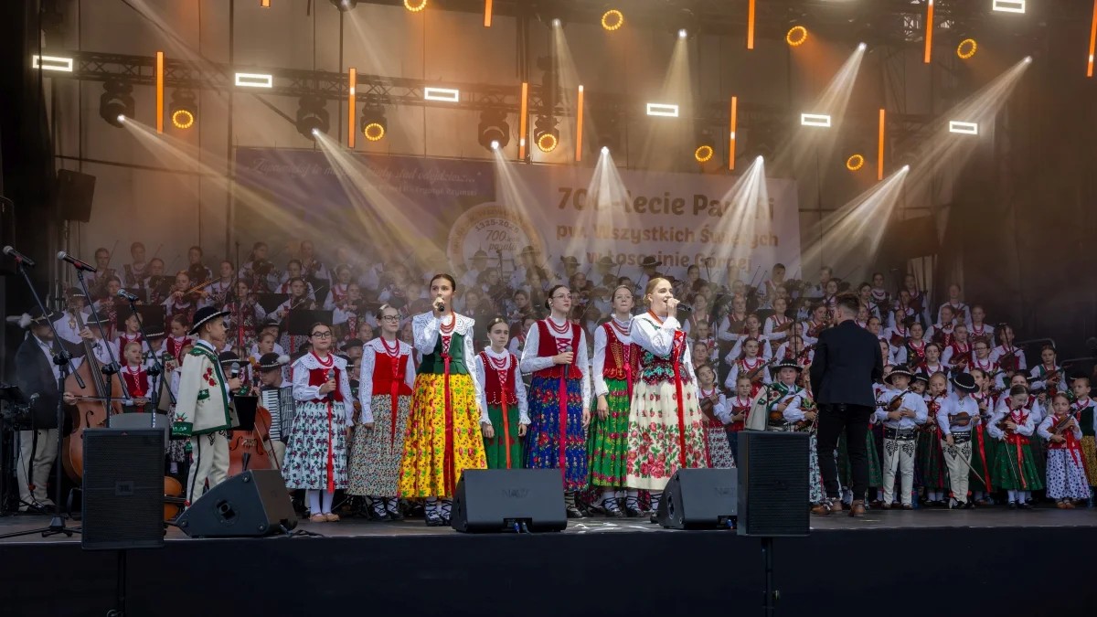 Małej Armii Janosika. Młodzi artyści, ubrani w tradycyjne, góralskie stroje, stworzyli niezapomniane widowisko. Ich występ był nie tylko hołdem dla muzyki i dziedzictwa regionu, ale również głębokim wyrazem wiary i jedności. W ich wykonaniu zabrzmiały utwory przeplatane słowami Świętego Jana Pawła II, co dodało koncertowi duchowej głębi i refleksyjnego tonu. Szczególnie wzruszające były momenty, gdy dziecięce głosy niosły się pod niebo – czyste, pełne nadziei, oddające piękno i niewinność młodego pokolenia. Widać było, że to, co najcenniejsze – tradycja, kultura i wiara – przekazywane są z serca do serca, z pokolenia na pokolenie.