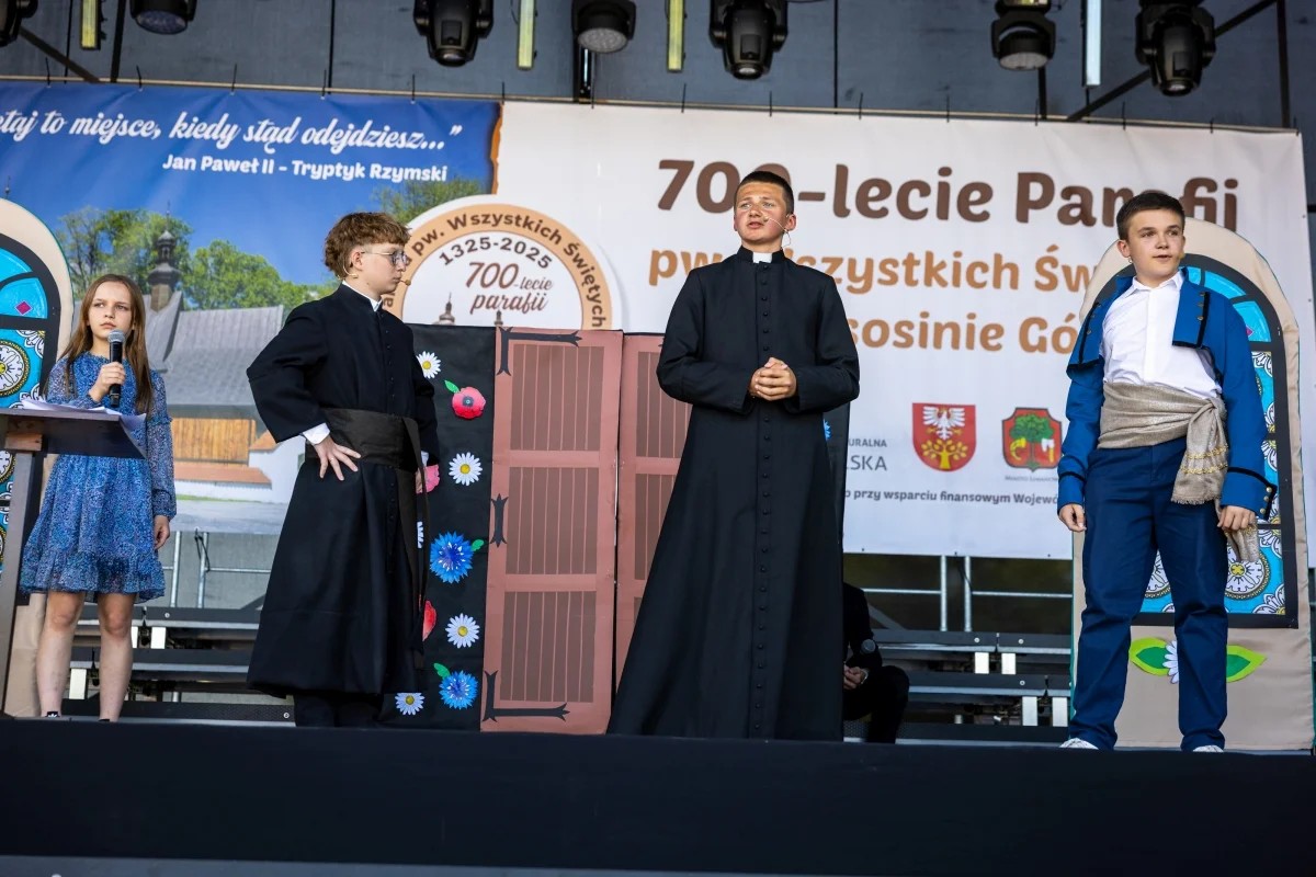 rupy teatralnej „Bajtek” z Zespołu Szkolno-Przedszkolnego nr 4 w Limanowej. Uczniowie zaprezentowali spektakl pt. „700 lat wierności wierze ojców naszych”, który spotkał się z bardzo ciepłym przyjęciem publiczności. Przedstawienie w symboliczny sposób ukazało historię i duchową tożsamość parafii, wzruszając i inspirując zgromadzonych.