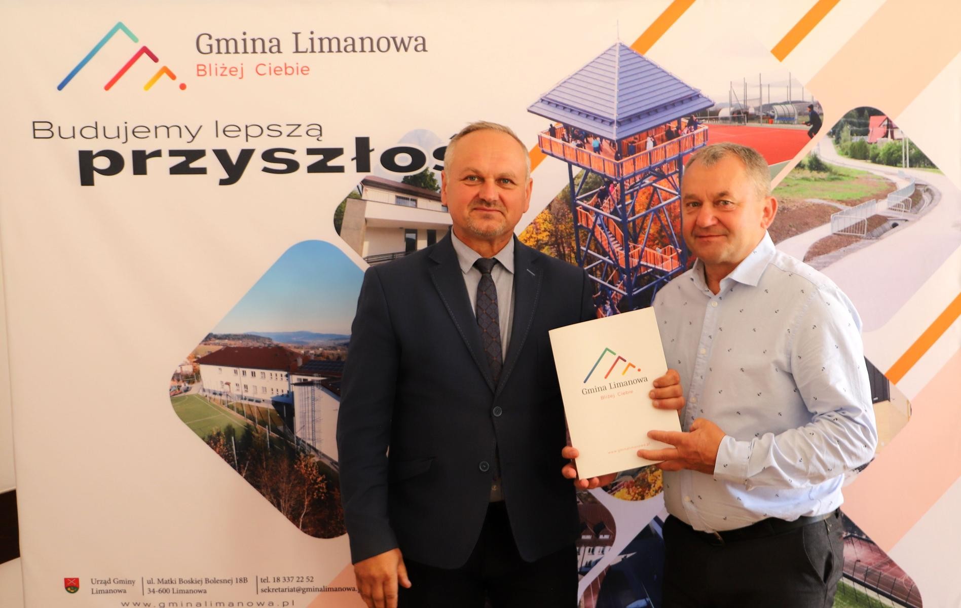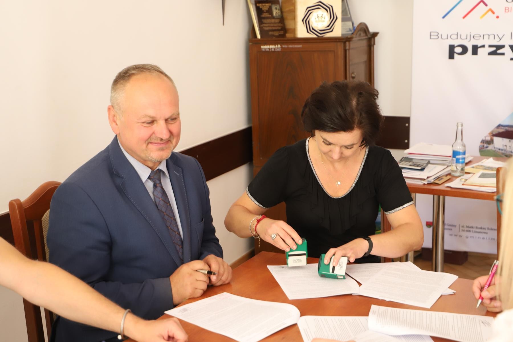 Umowę z wykonawcą wyłonionym w drodze postępowania przetargowego - Janem Wojtasem podpisał Jan Skrzekut Wójt Gminy Limanowa.