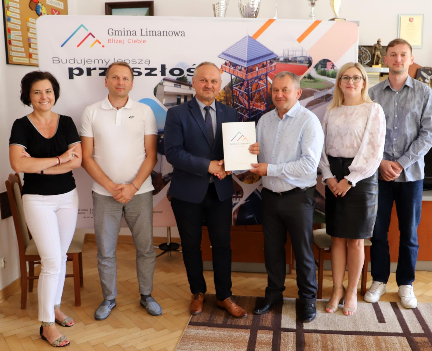 Przy podpisywaniu umowy obecni byli również: Wojciech Pazdan – Zastępca Wójta Gminy Limanowa, Edyta Król – Dyrektor Gminnego Zespołu Szkół w Limanowej, Artur Sosnowski Inspektor Wydziału Inwestycji i Funduszu Europejskich UG Limanowa oraz Agata Marcisz Specjalista ds. Zamówień Publicznych UG Limanowa.