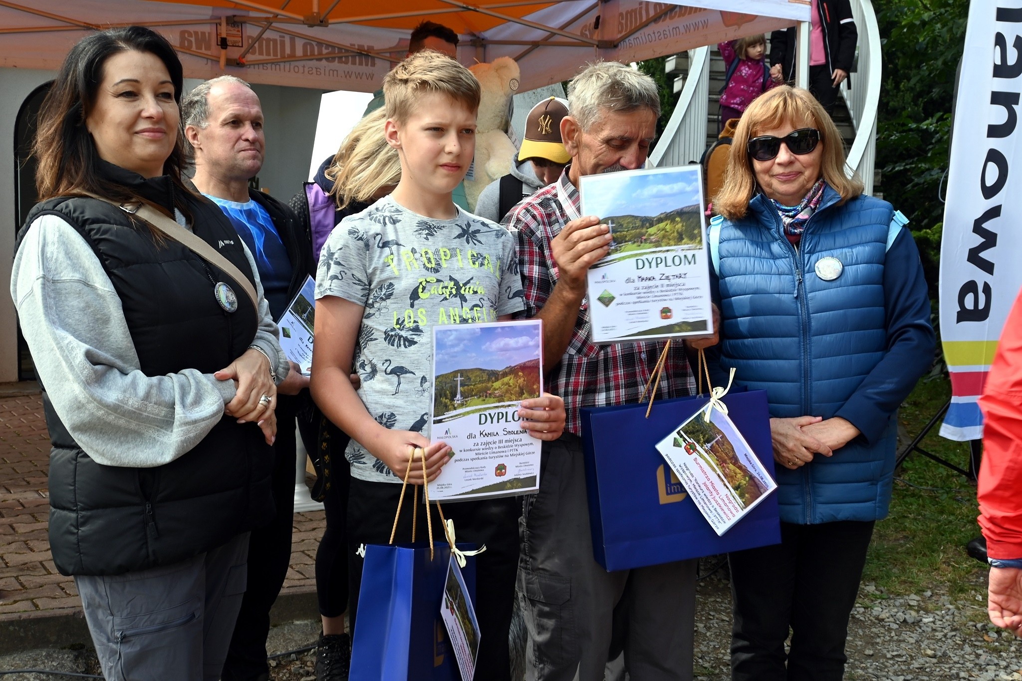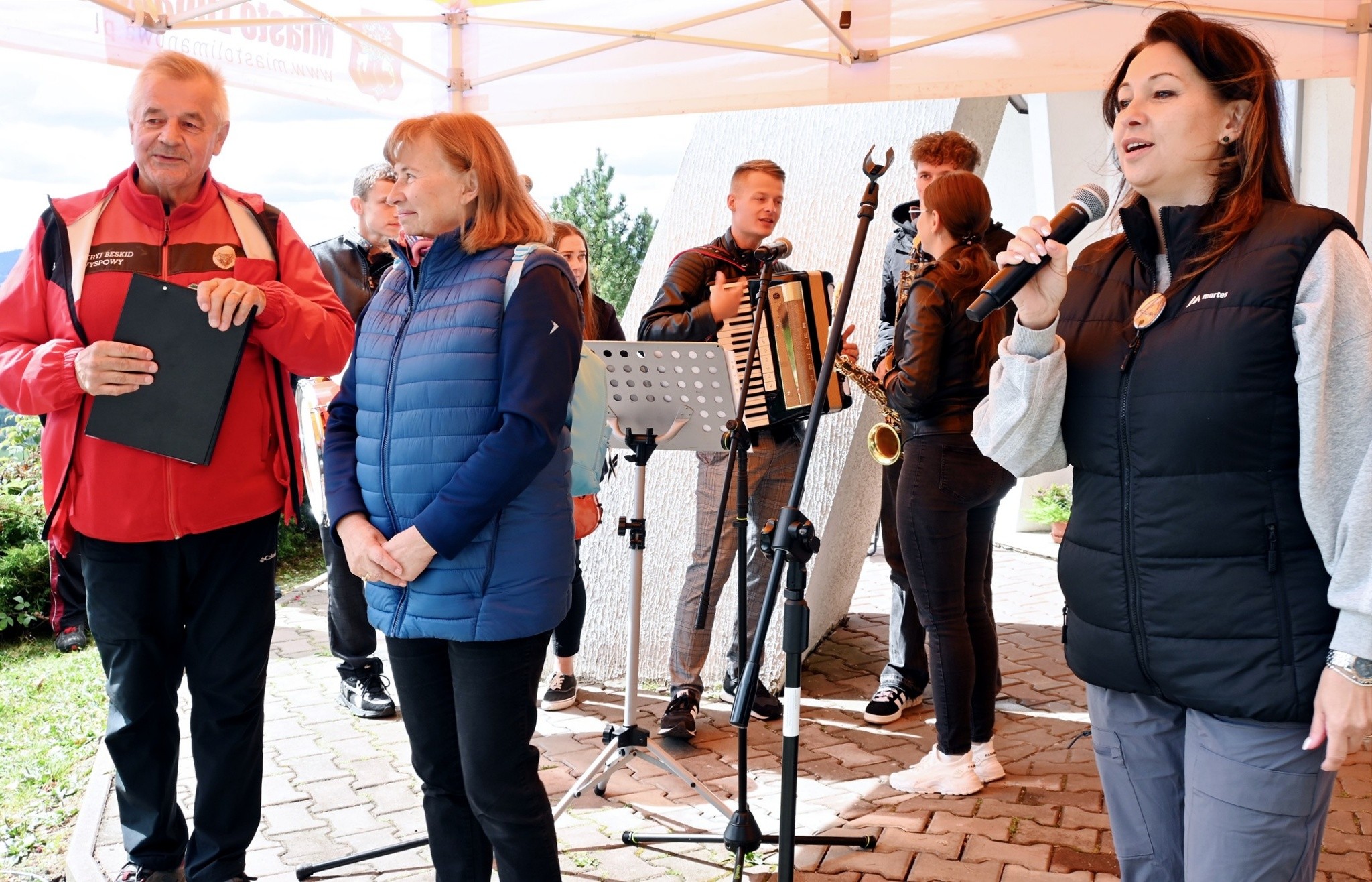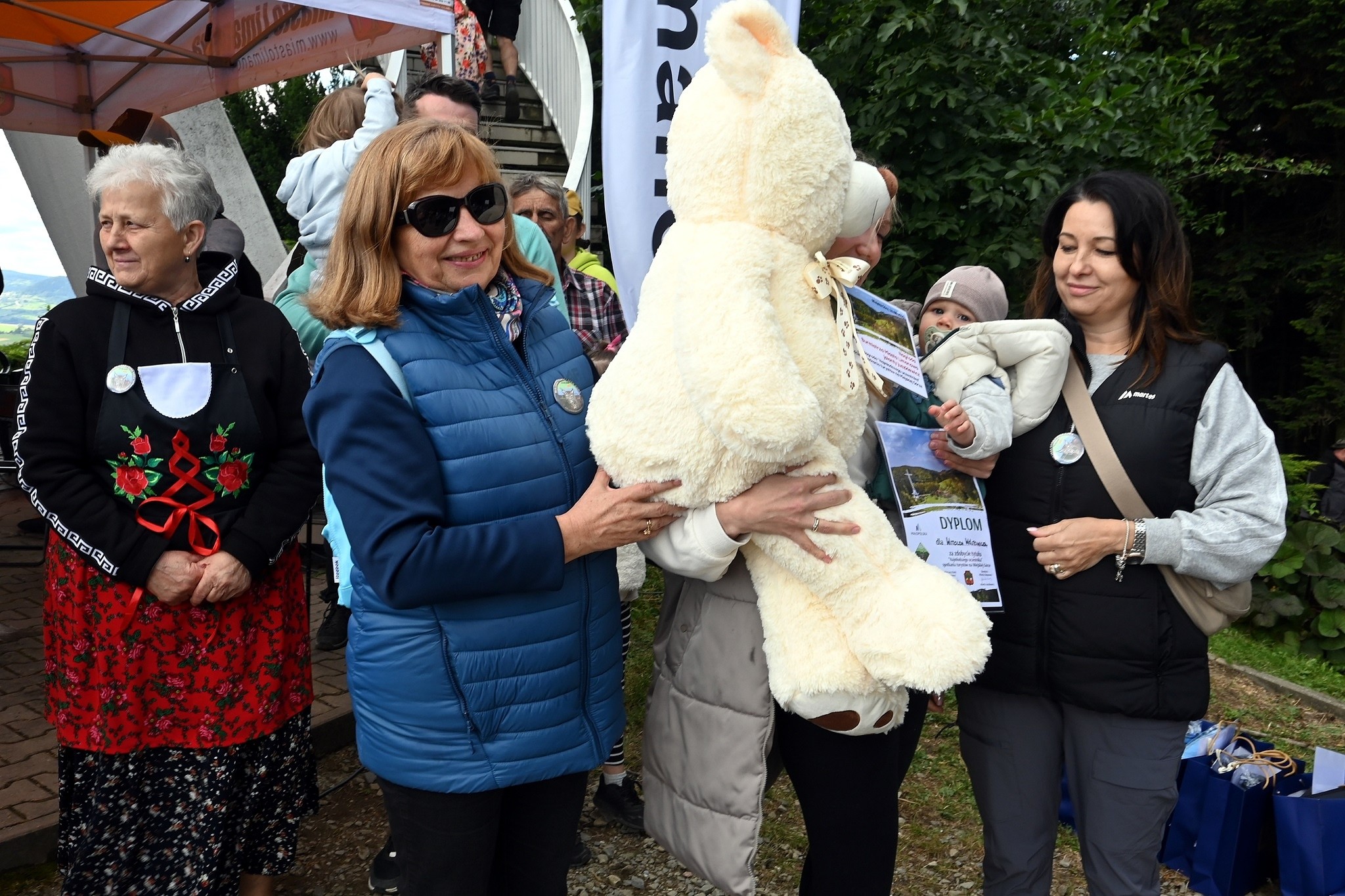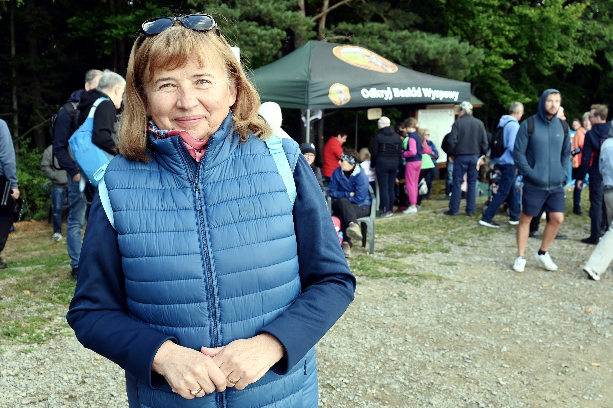 Ciekawostka- powrót po latach. Specjalne wyróżnienie od prowadzącego otrzymuje Pani Barbara Krawczyk z Gorzkowa w gminie Wieliczka, uczestniczka wczorajszej wędrówki na Miejską Górę. W 2018 roku Pani Barbara wraz z grupą koleżanek wzięła udział w VII Tour Mszana Dolna, przemierzając 37 kilometrów i zdobywając 6 Beskidzkich Wysp.