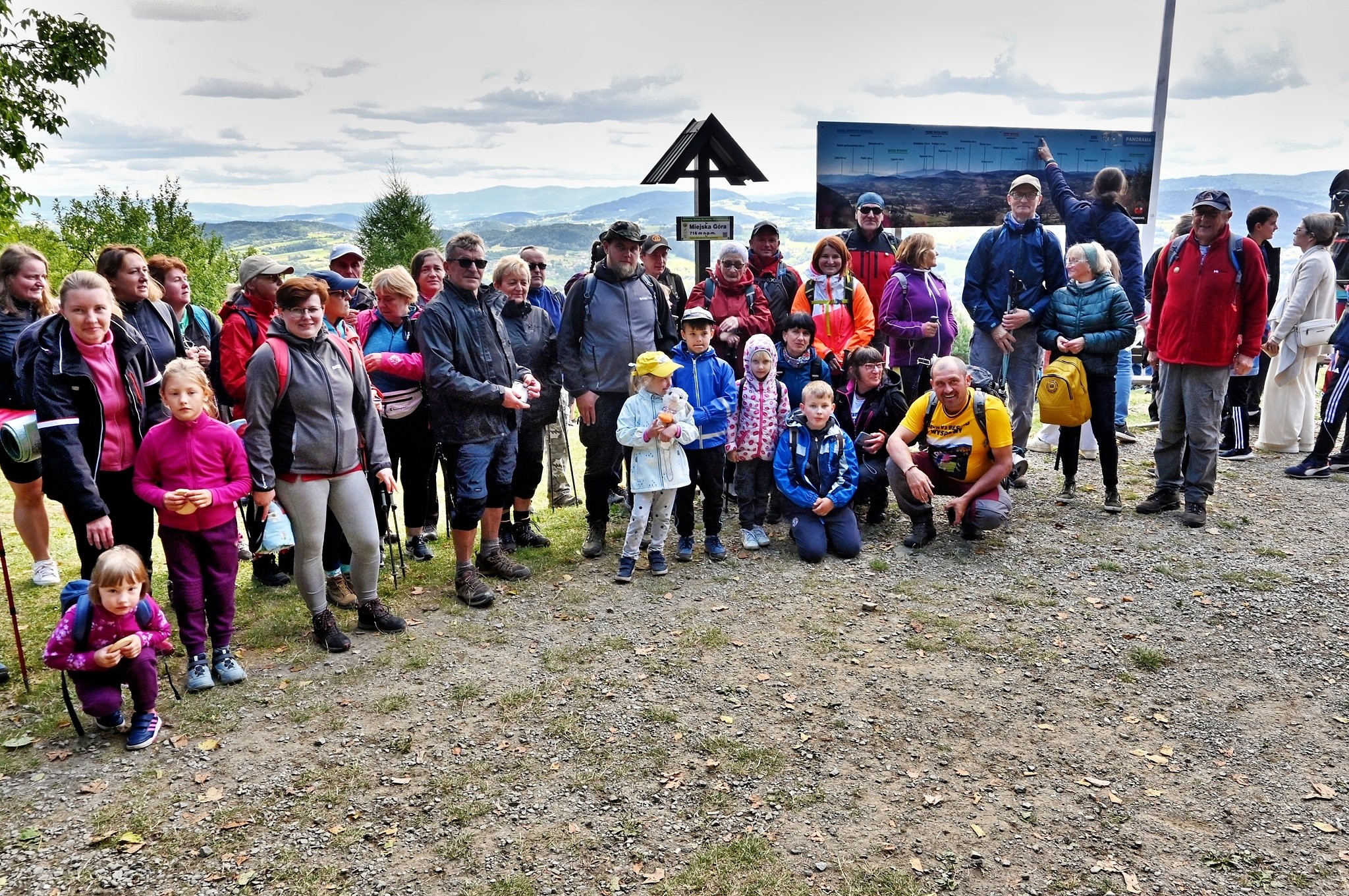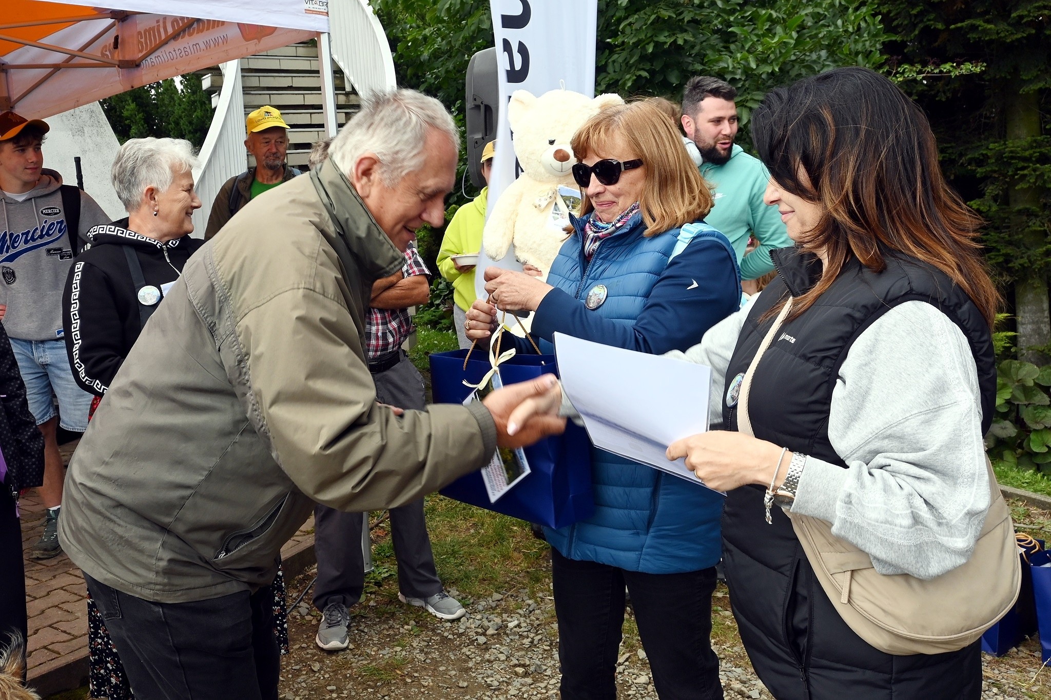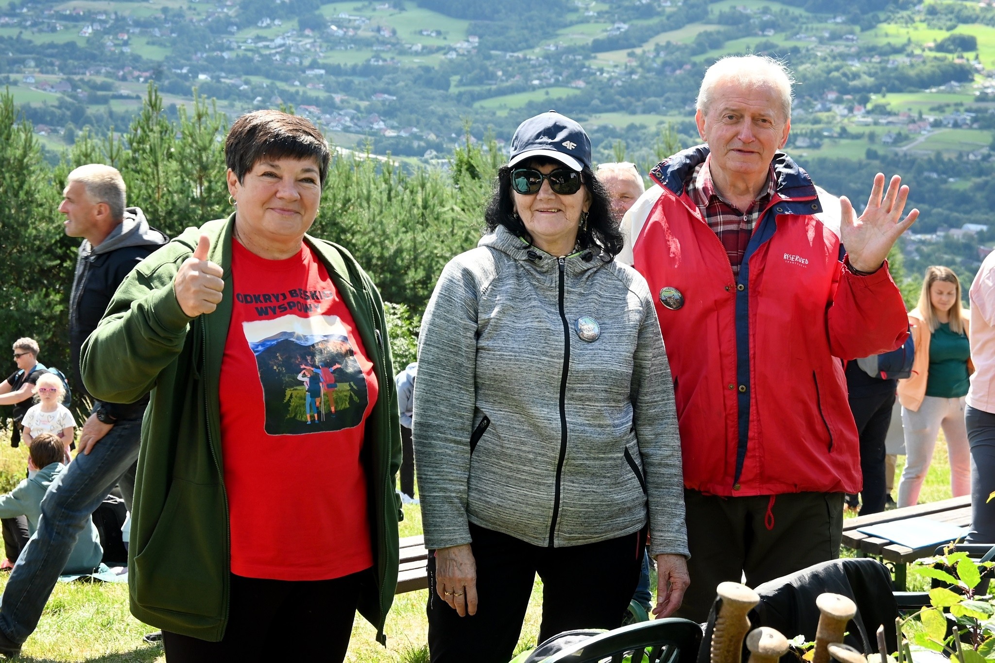 Ciekawostka- powrót po latach. Specjalne wyróżnienie od prowadzącego otrzymuje Pani Barbara Krawczyk z Gorzkowa w gminie Wieliczka, uczestniczka wczorajszej wędrówki na Miejską Górę. W 2018 roku Pani Barbara wraz z grupą koleżanek wzięła udział w VII Tour Mszana Dolna, przemierzając 37 kilometrów i zdobywając 6 Beskidzkich Wysp.