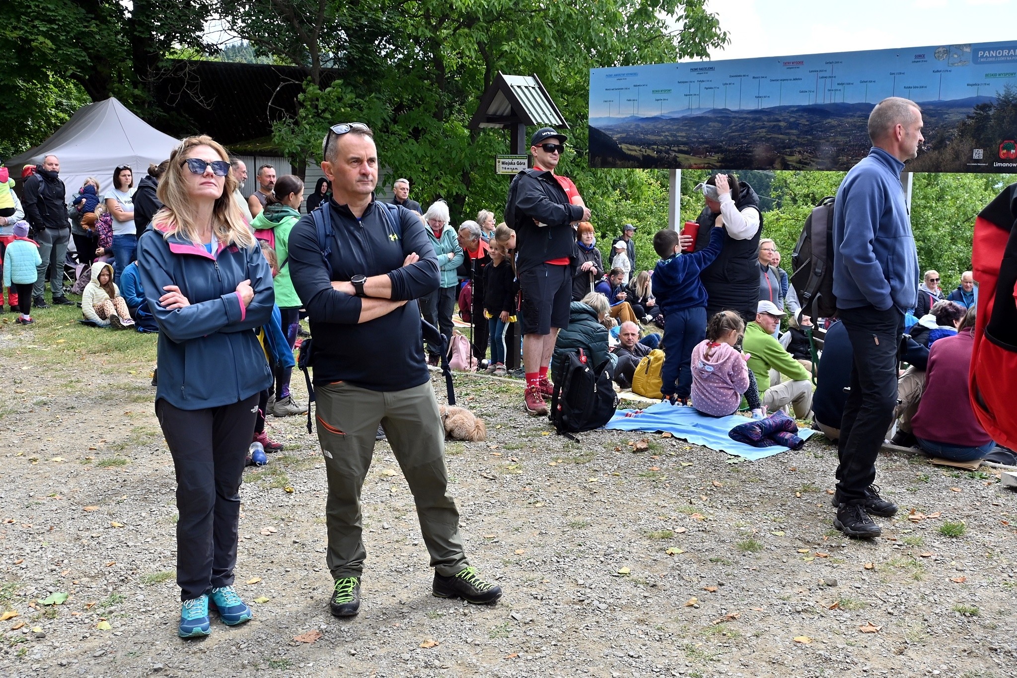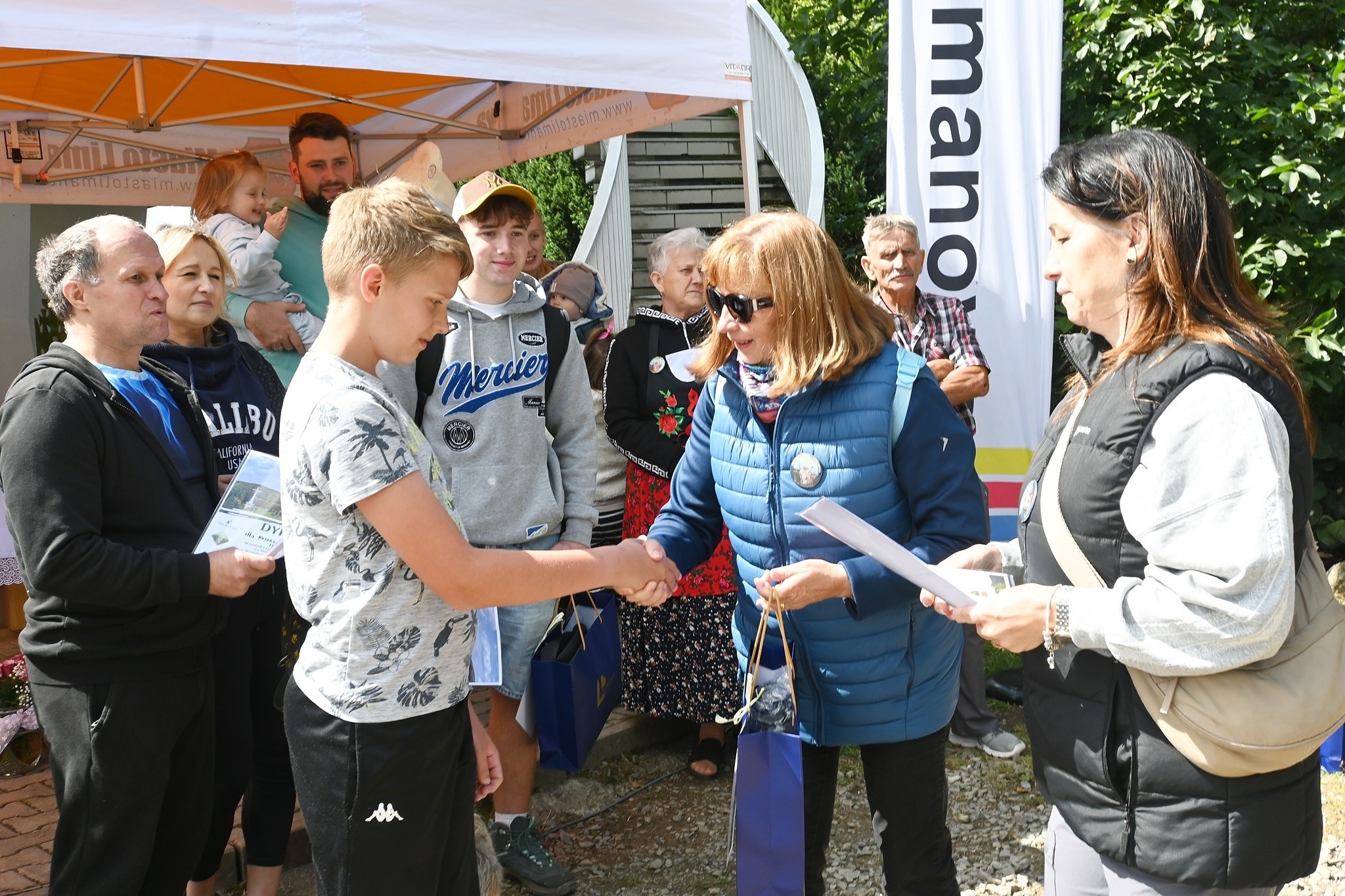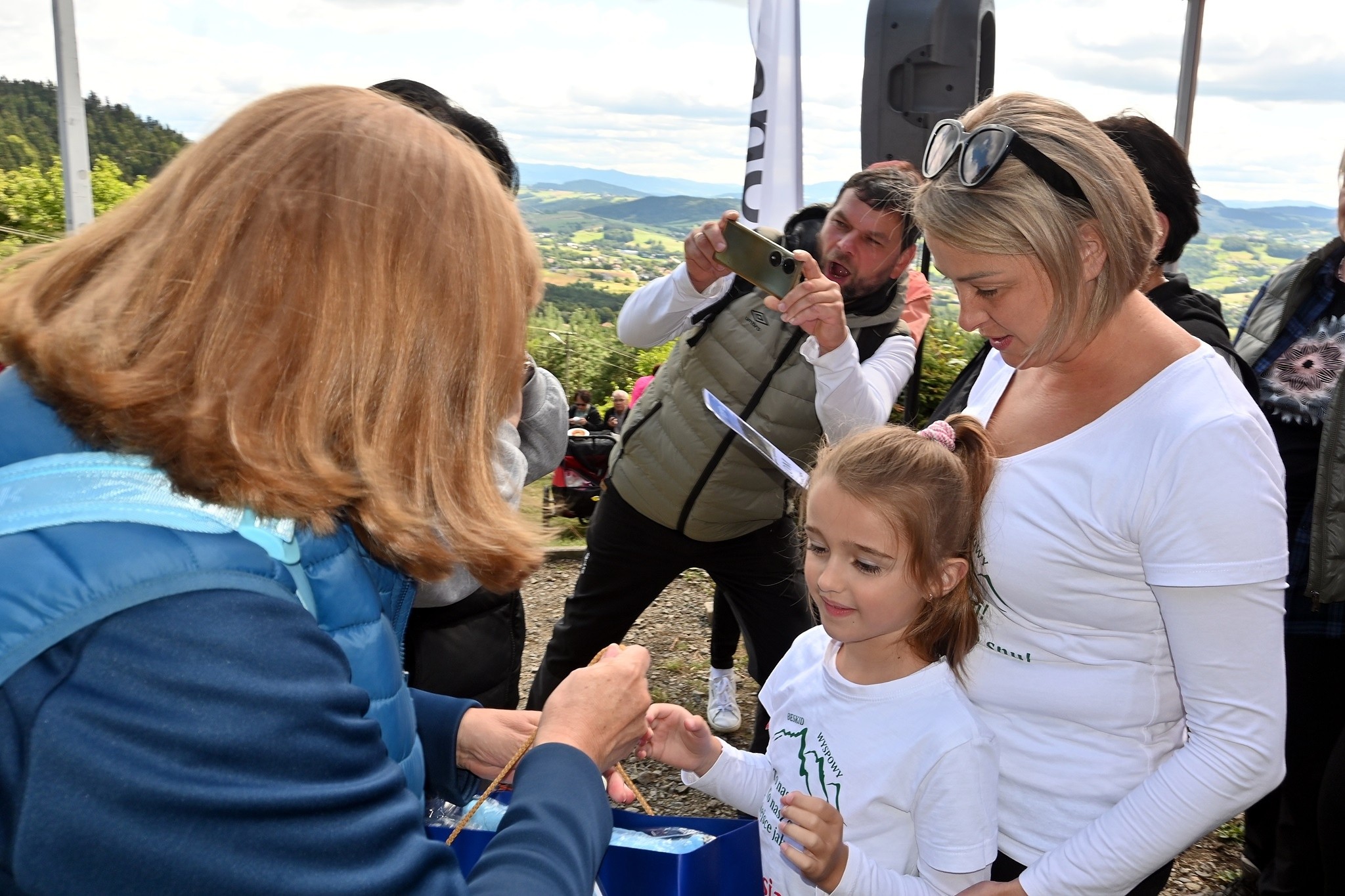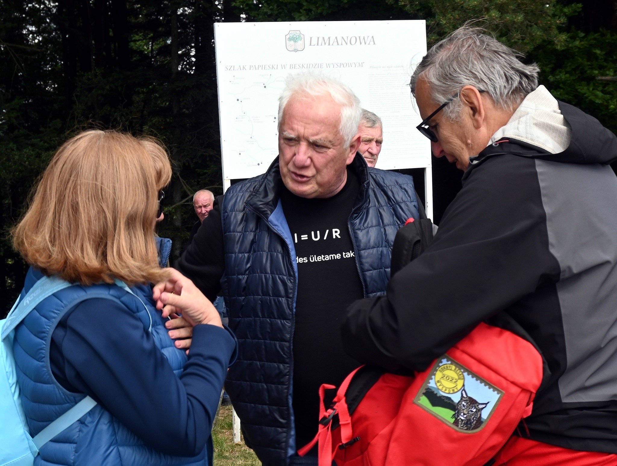 Ciekawostka- powrót po latach. Specjalne wyróżnienie od prowadzącego otrzymuje Pani Barbara Krawczyk z Gorzkowa w gminie Wieliczka, uczestniczka wczorajszej wędrówki na Miejską Górę. W 2018 roku Pani Barbara wraz z grupą koleżanek wzięła udział w VII Tour Mszana Dolna, przemierzając 37 kilometrów i zdobywając 6 Beskidzkich Wysp.