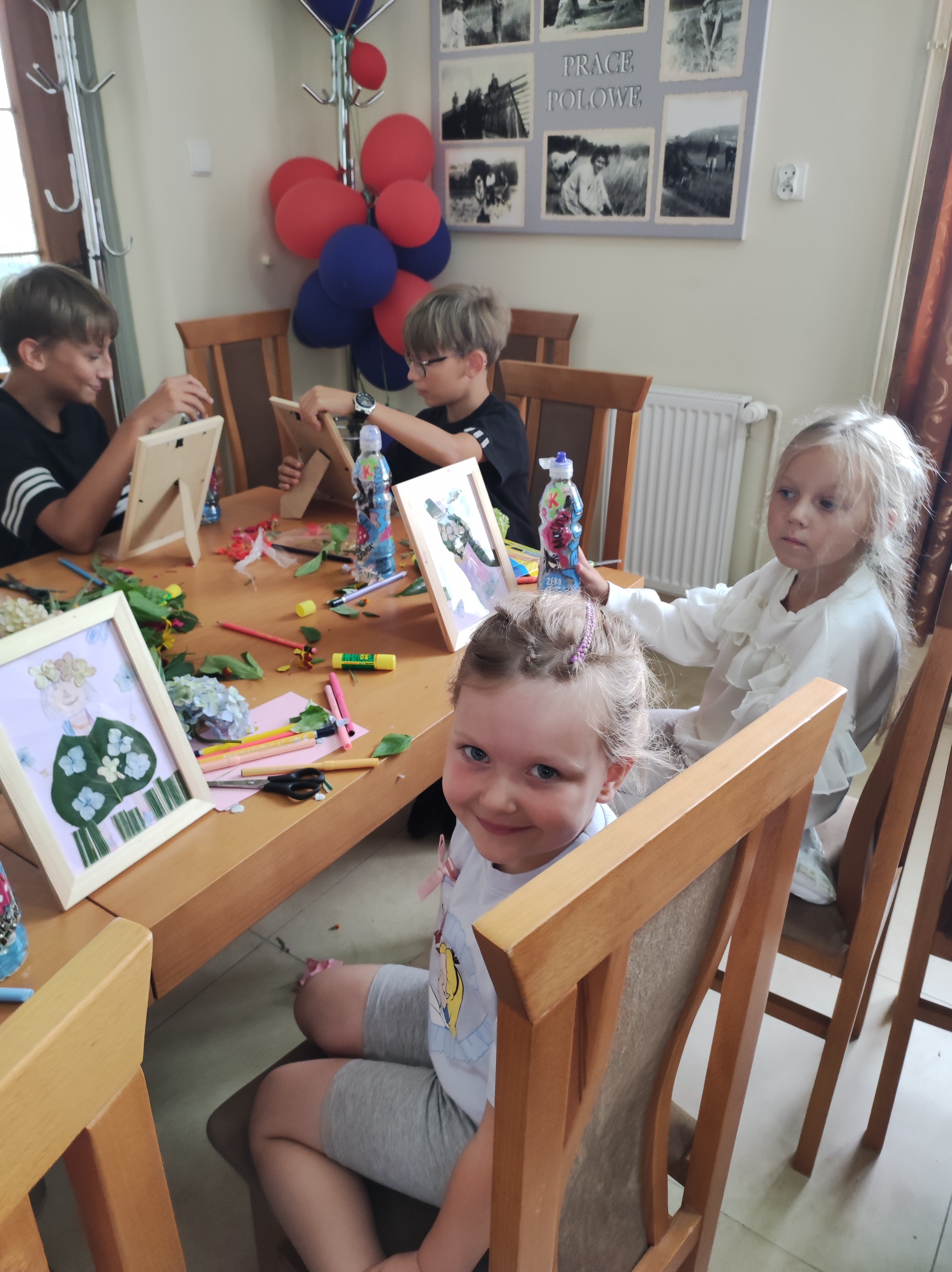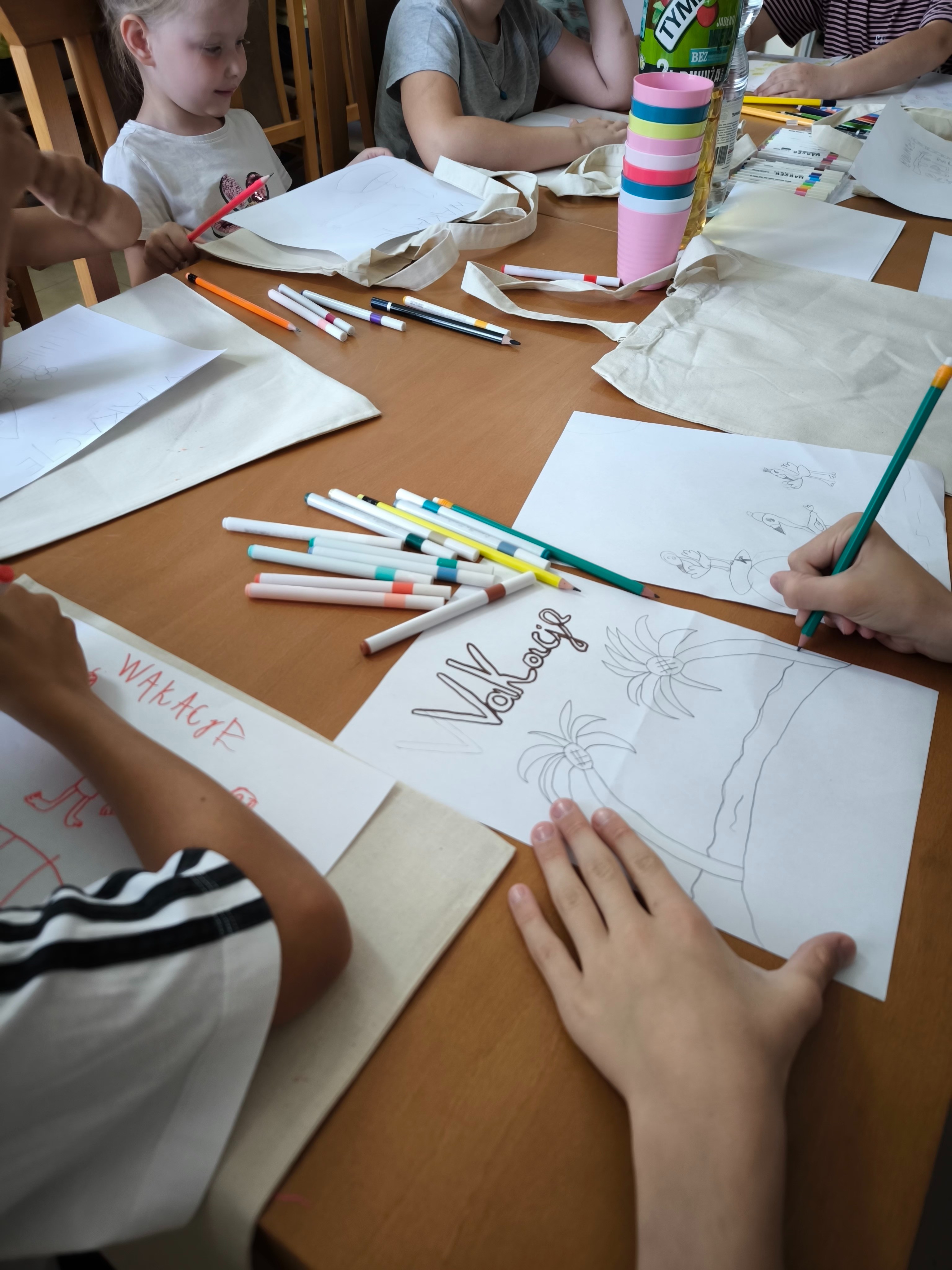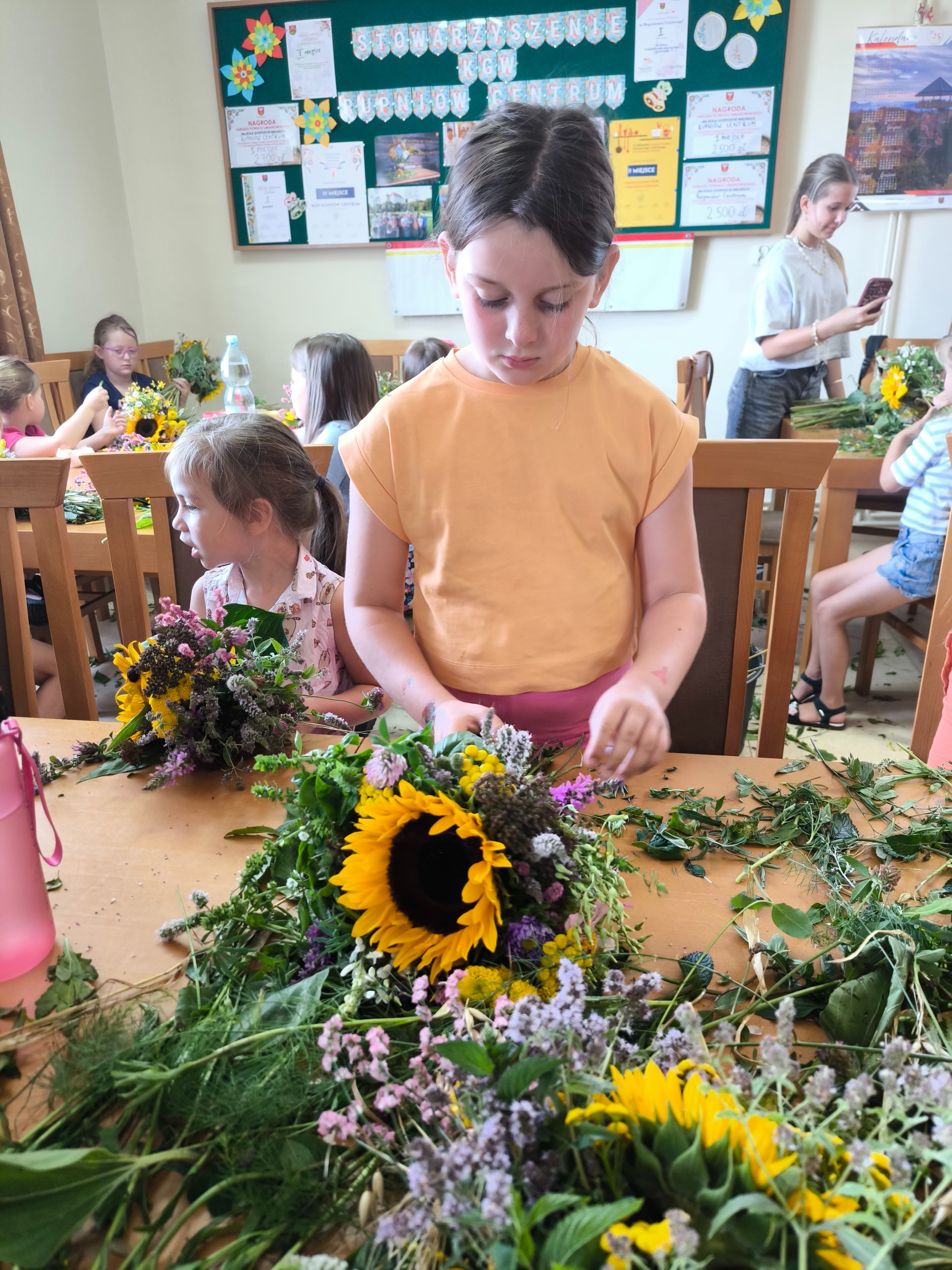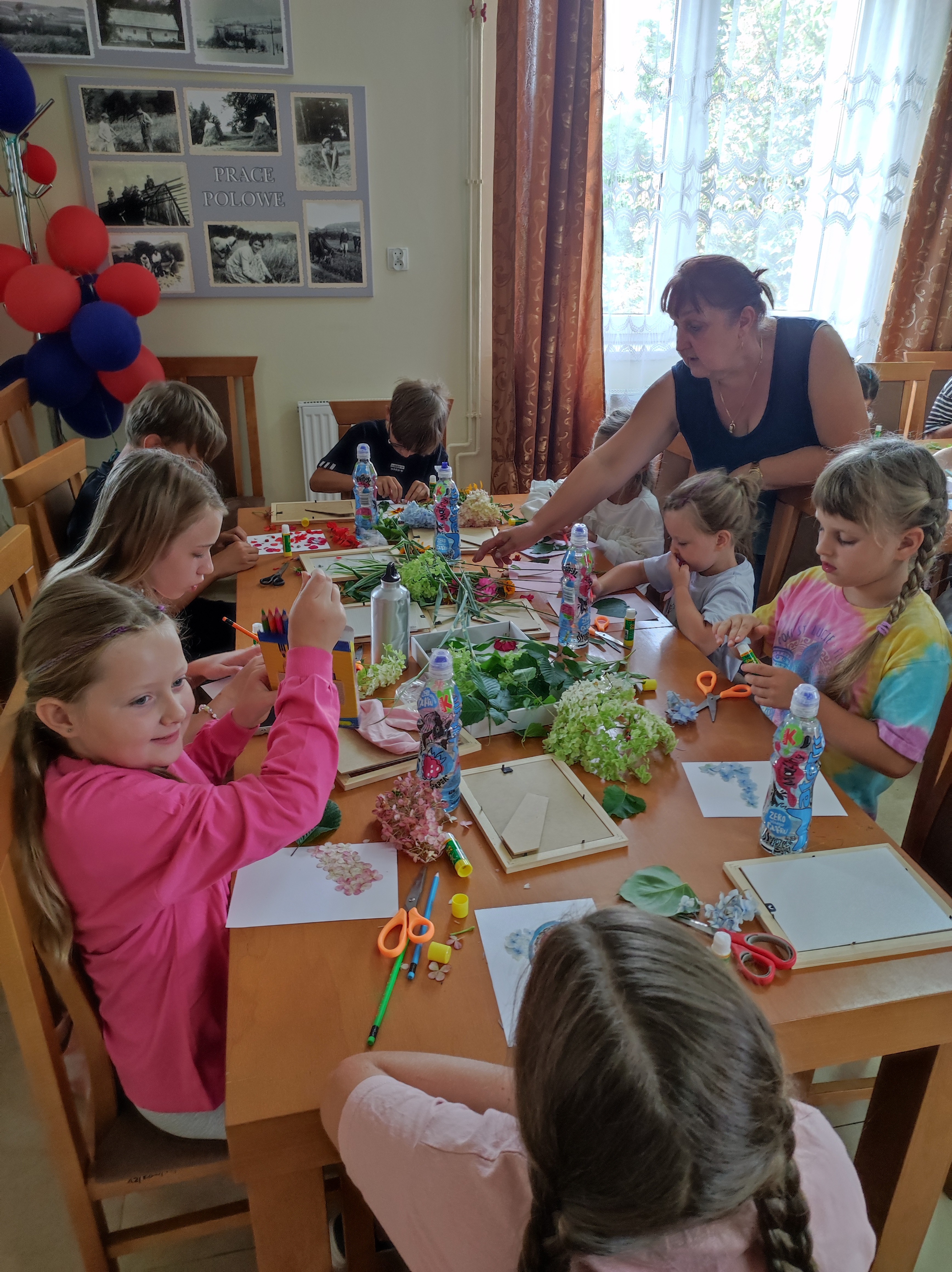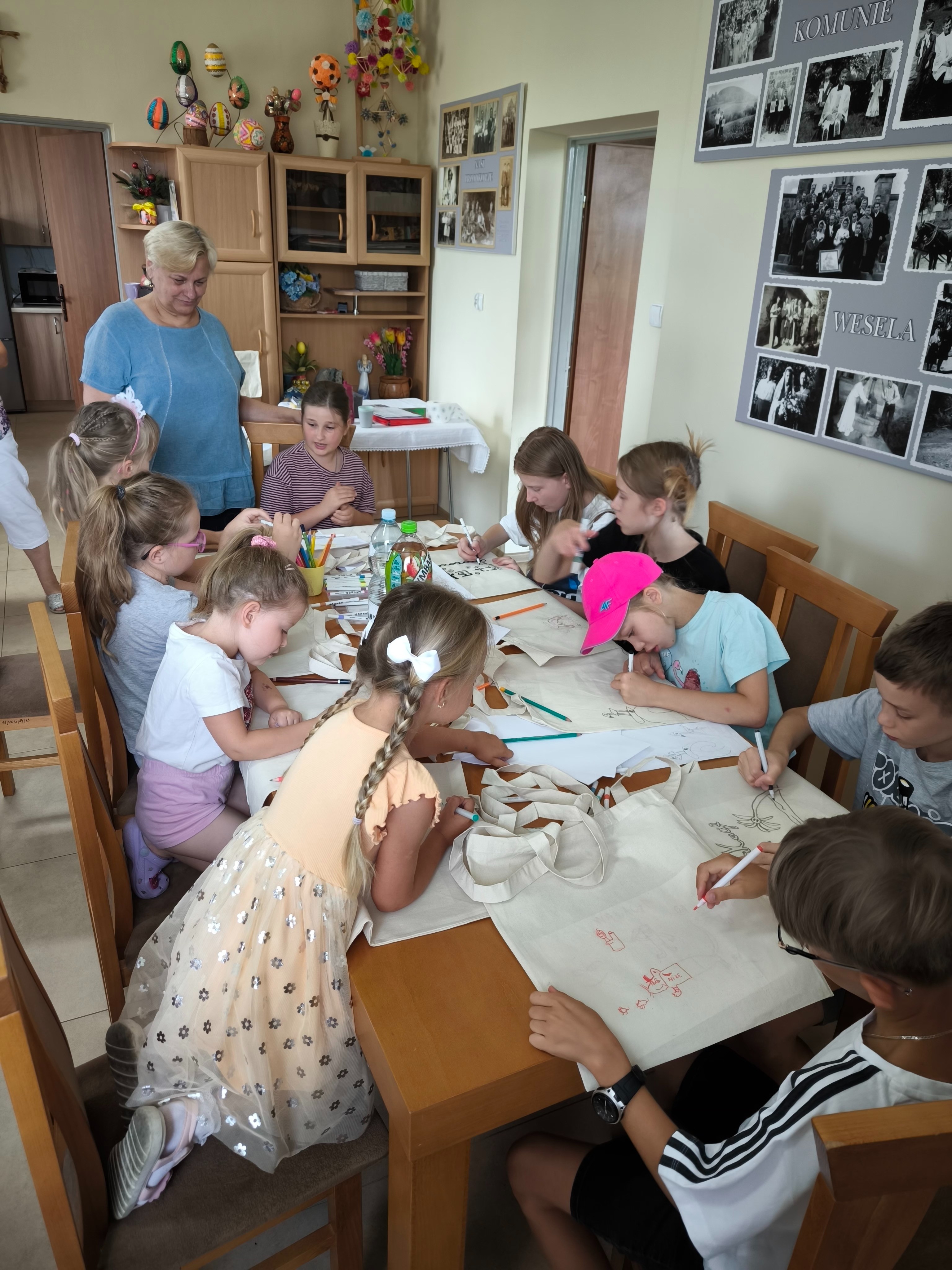 Podczas warsztatów uczestnicy mogli spróbować swoich sił w różnych formach rękodzieła – dzieci szyły maskotki, tworzyły lampiony, przygotowywały obrazki na folii aluminiowej, a także piękne bukiety z krepiny. Zainspirowane naturą wykonywały obrazki z motywami roślinnymi, a z okazji Święta Matki Boskiej Zielnej tradycyjne wiązanki z żywych kwiatów. Ponadto każdy ozdobił własną torbę, która stała się wyjątkową pamiątką na lata.