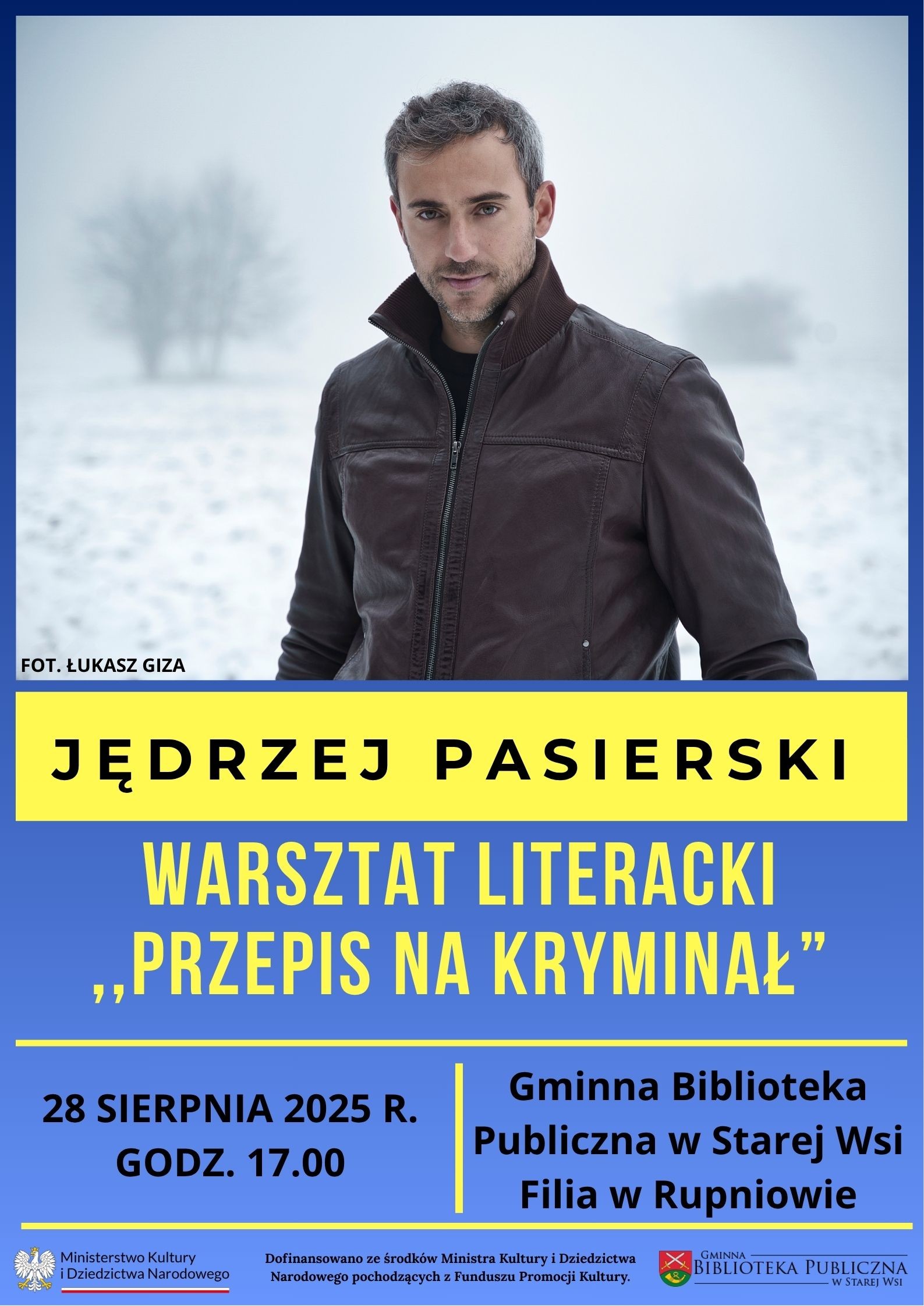Gminna Biblioteka w Starej Wsi filia w Rupniowie serdecznie zaprasza w dniu 28 sierpnia o godz. 17.00 na warsztat literacki pn.: „Przepis na kryminał” z Jędrzejem Pasierskim.