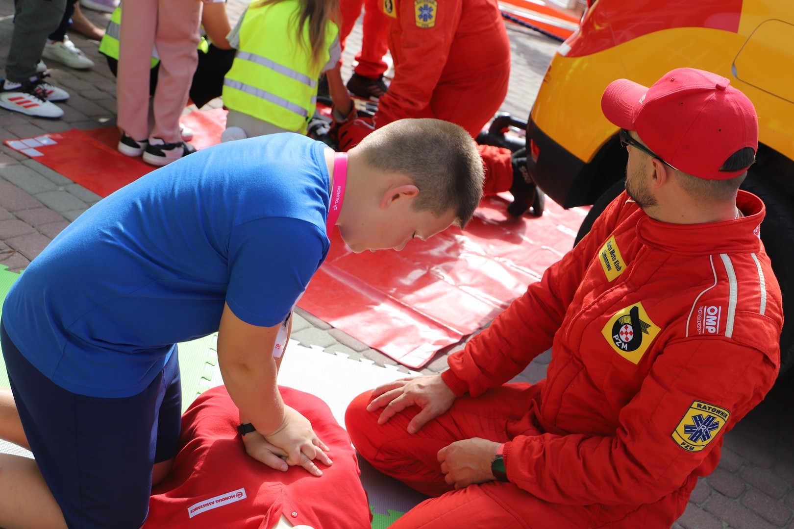 warsztaty z udzielania pierwszej pomocy, podczas których dzieci ćwiczyły podstawowe czynności ratownicze. Był