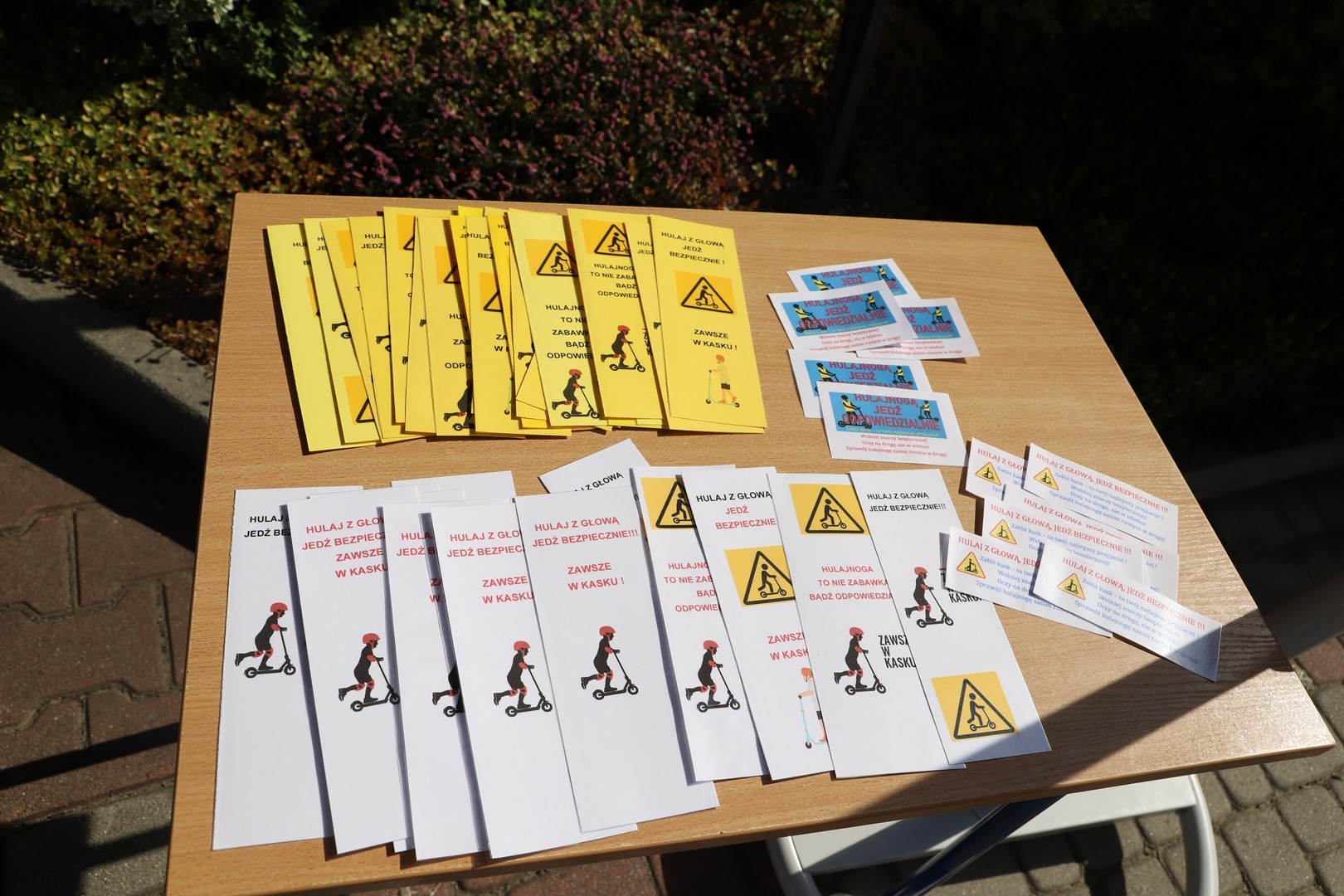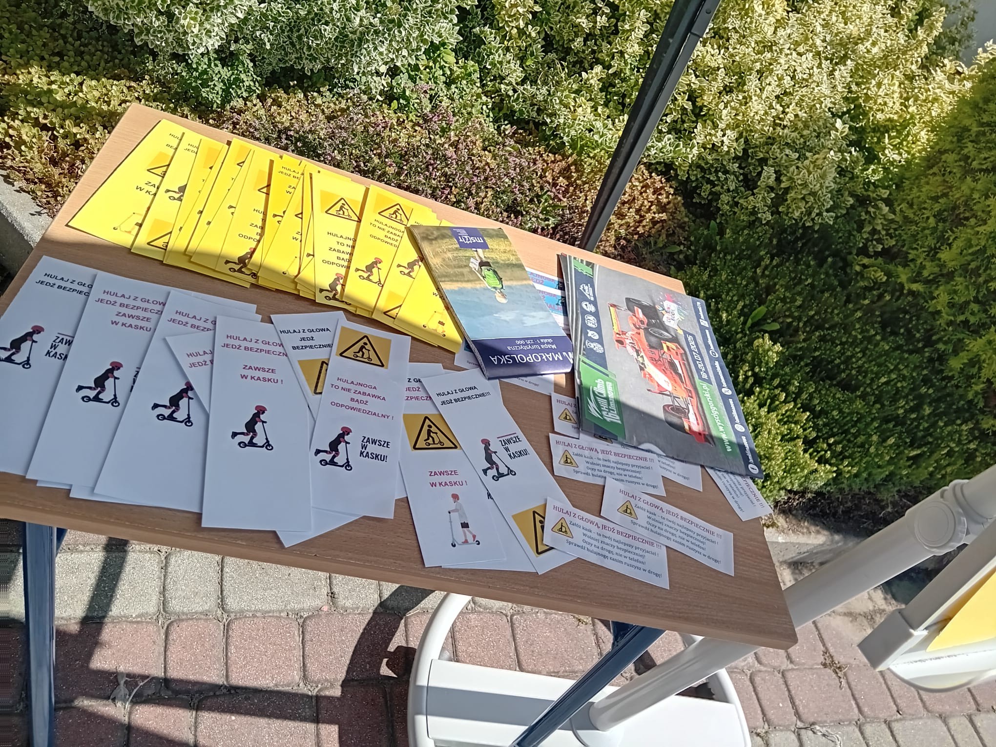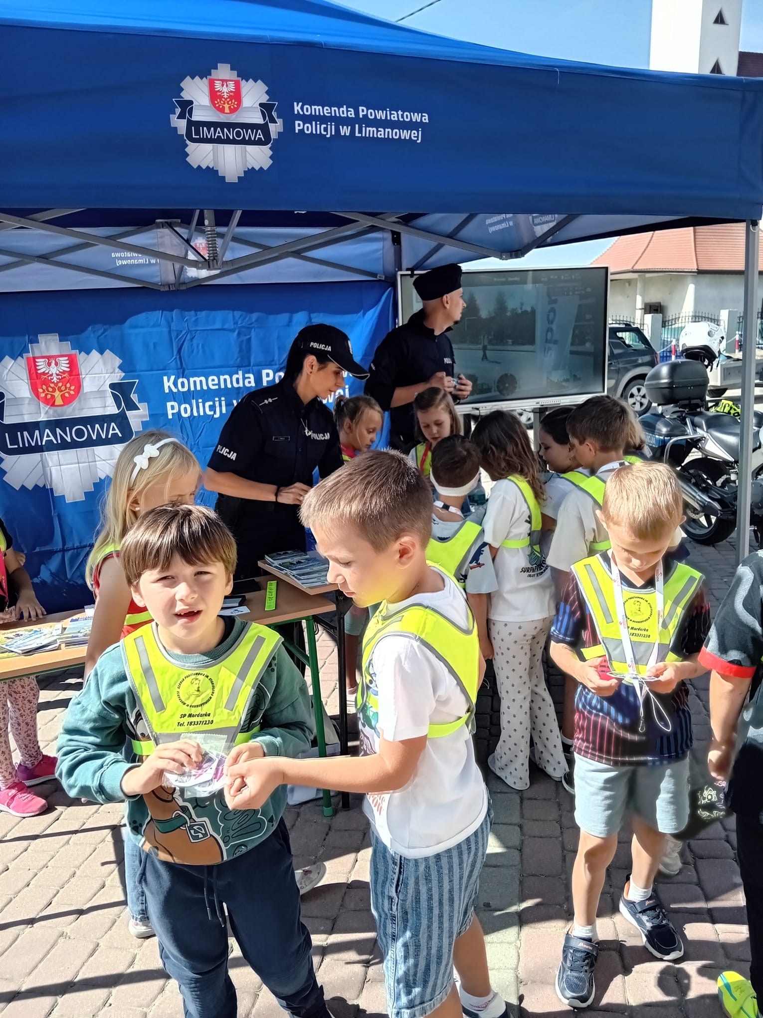upominki i gadżety odblaskowe, przekazane przez funkcjonariuszy Policji oraz przedstawicieli Auto Moto Klubu Limanowa. Uczniowie otrzymali także zakładki i ulotki o zasadach bezpiecznej jazdy na hulajnodze, przygotowane przez szkołę. Akcja przebiegła w atmosferze zaangażowania, nauki i współpracy służb z lokalną społecznością.