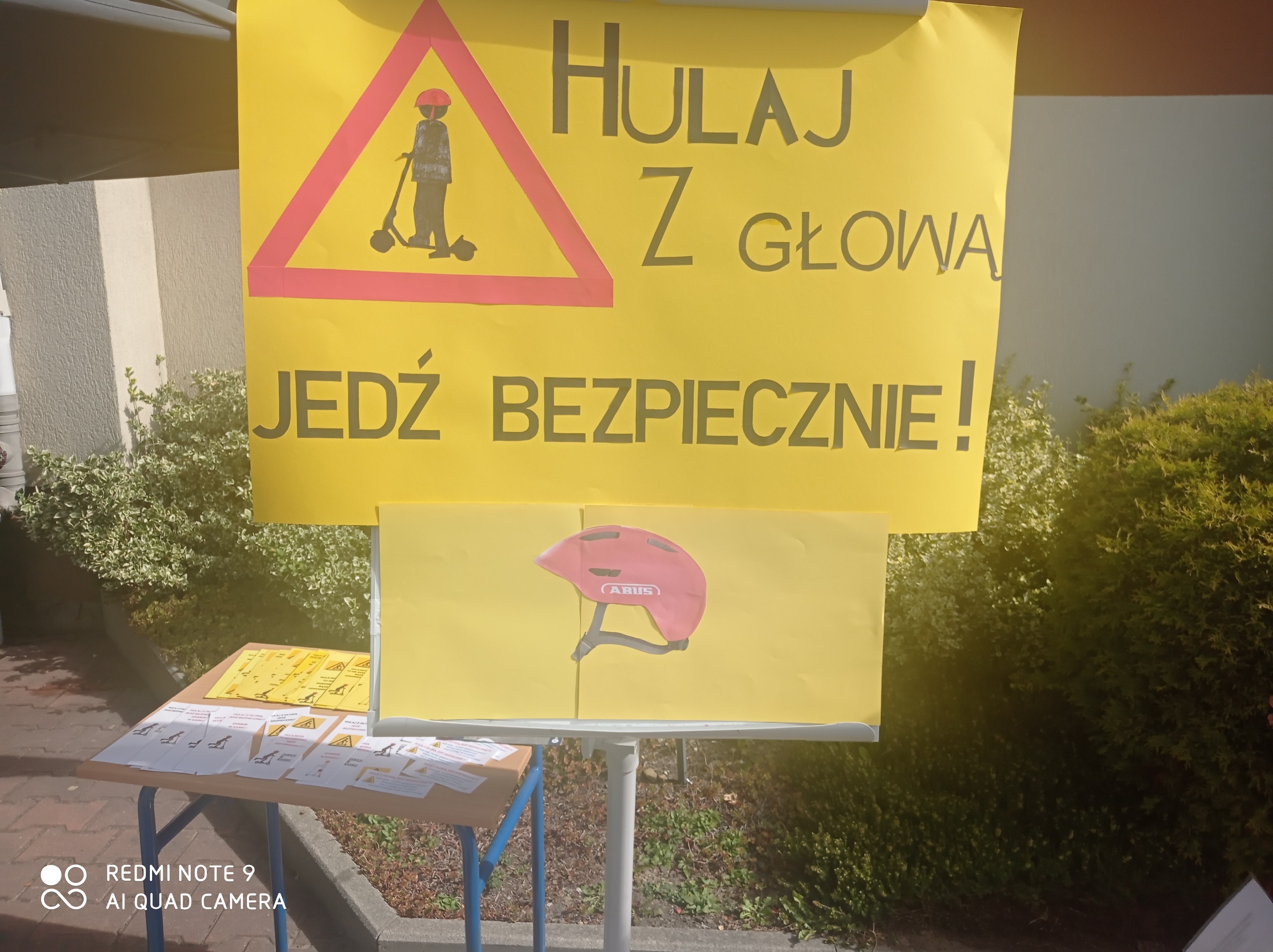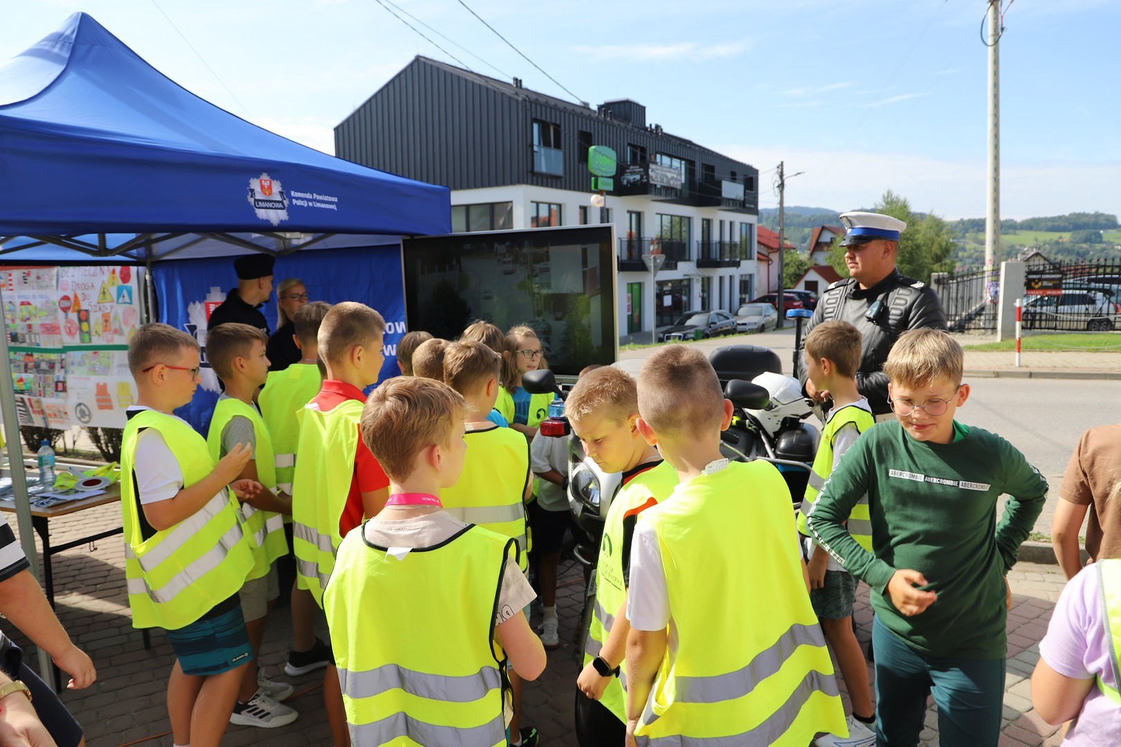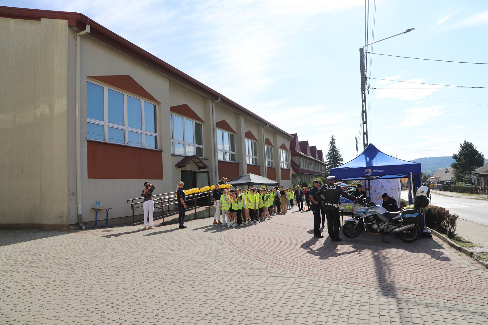 upominki i gadżety odblaskowe, przekazane przez funkcjonariuszy Policji oraz przedstawicieli Auto Moto Klubu Limanowa. Uczniowie otrzymali także zakładki i ulotki o zasadach bezpiecznej jazdy na hulajnodze, przygotowane przez szkołę. Akcja przebiegła w atmosferze zaangażowania, nauki i współpracy służb z lokalną społecznością.