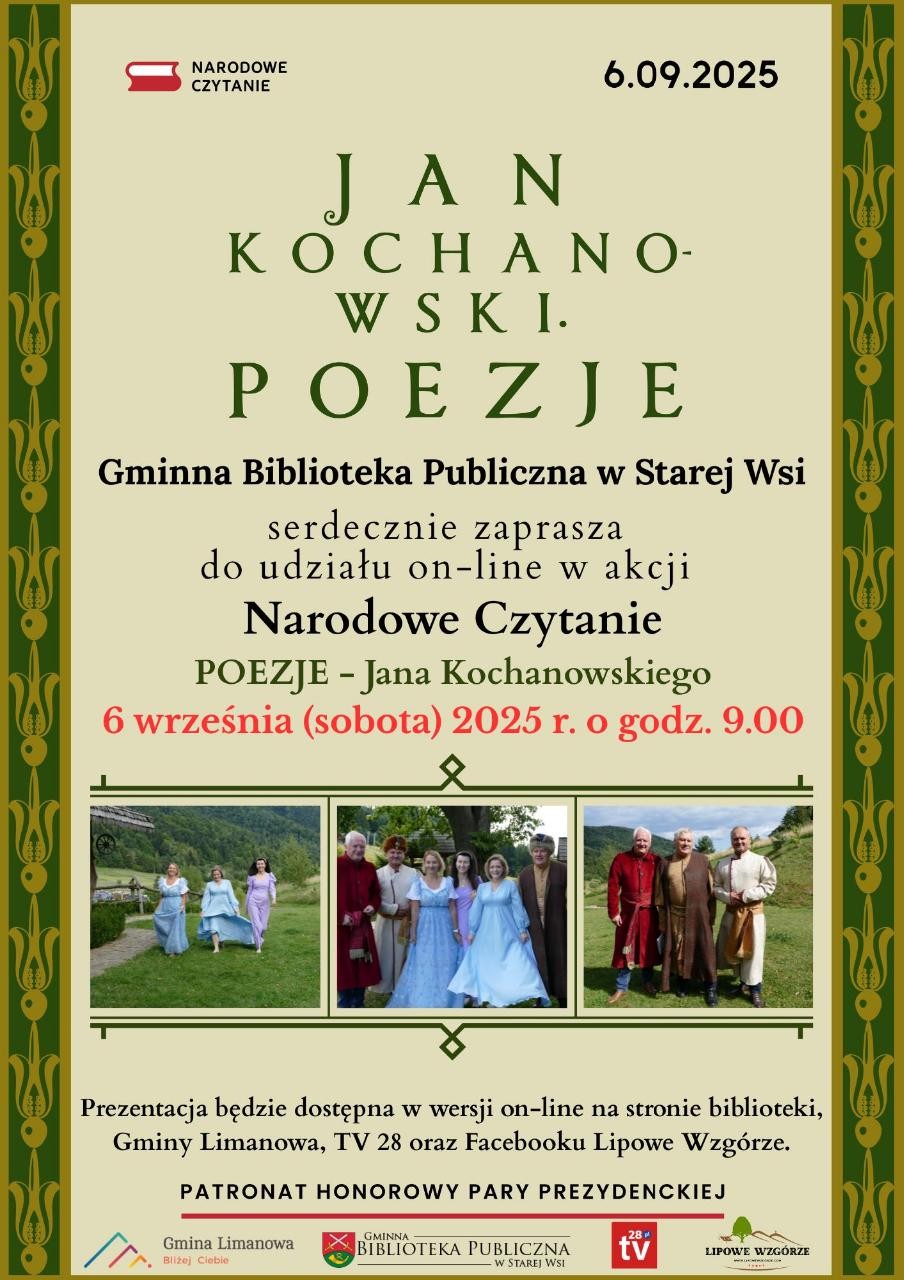 Gminna Biblioteka w Starej Wsi od pierwszej edycji aktywnie włącza się w akcję Narodowego Czytania. W ostatnich latach wydarzenie przybiera szczególną formę – nagrań online w stylizowanych strojach z epoki, które pozwalają przenieść widzów w historyczną atmosferę prezentowanych utworów.