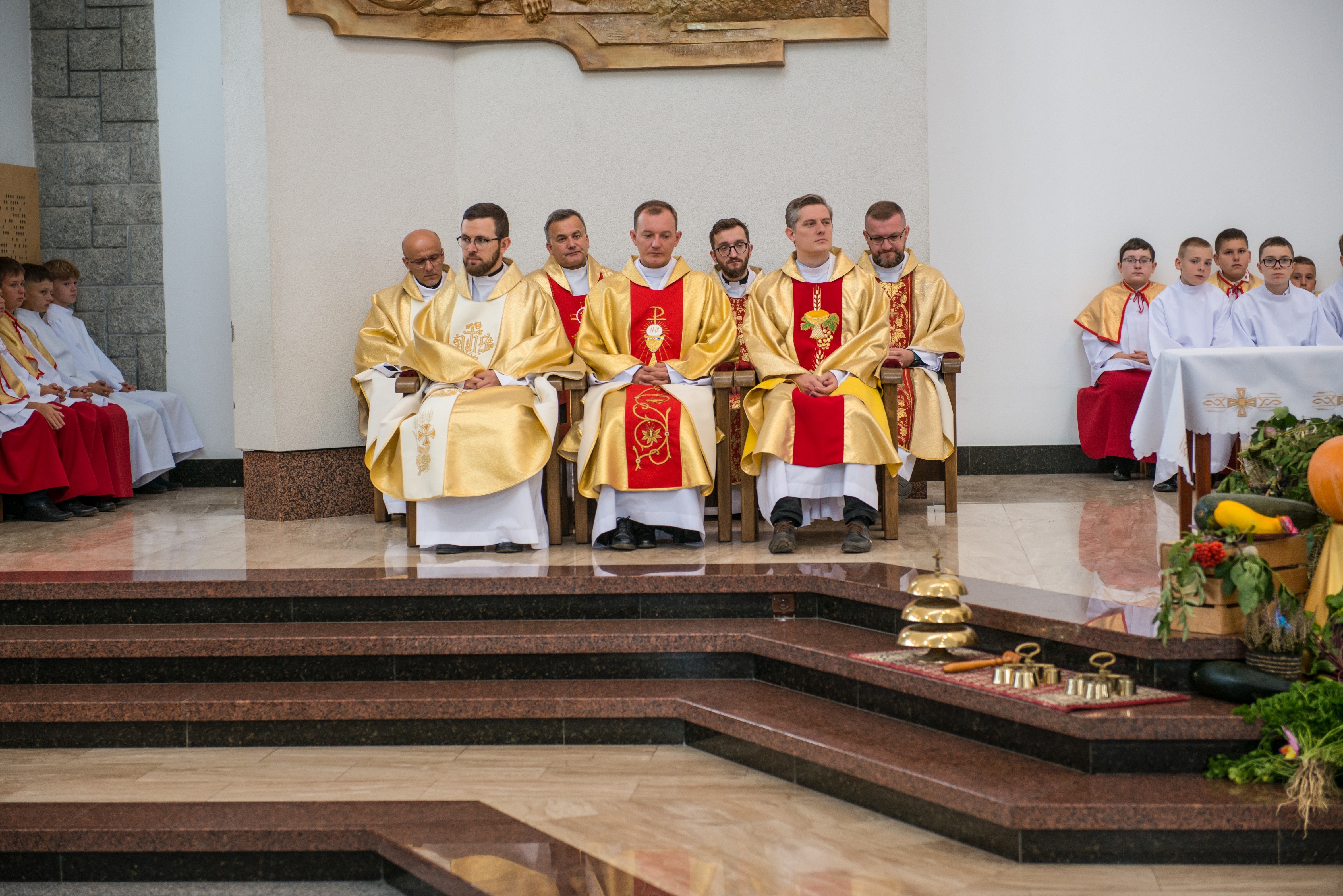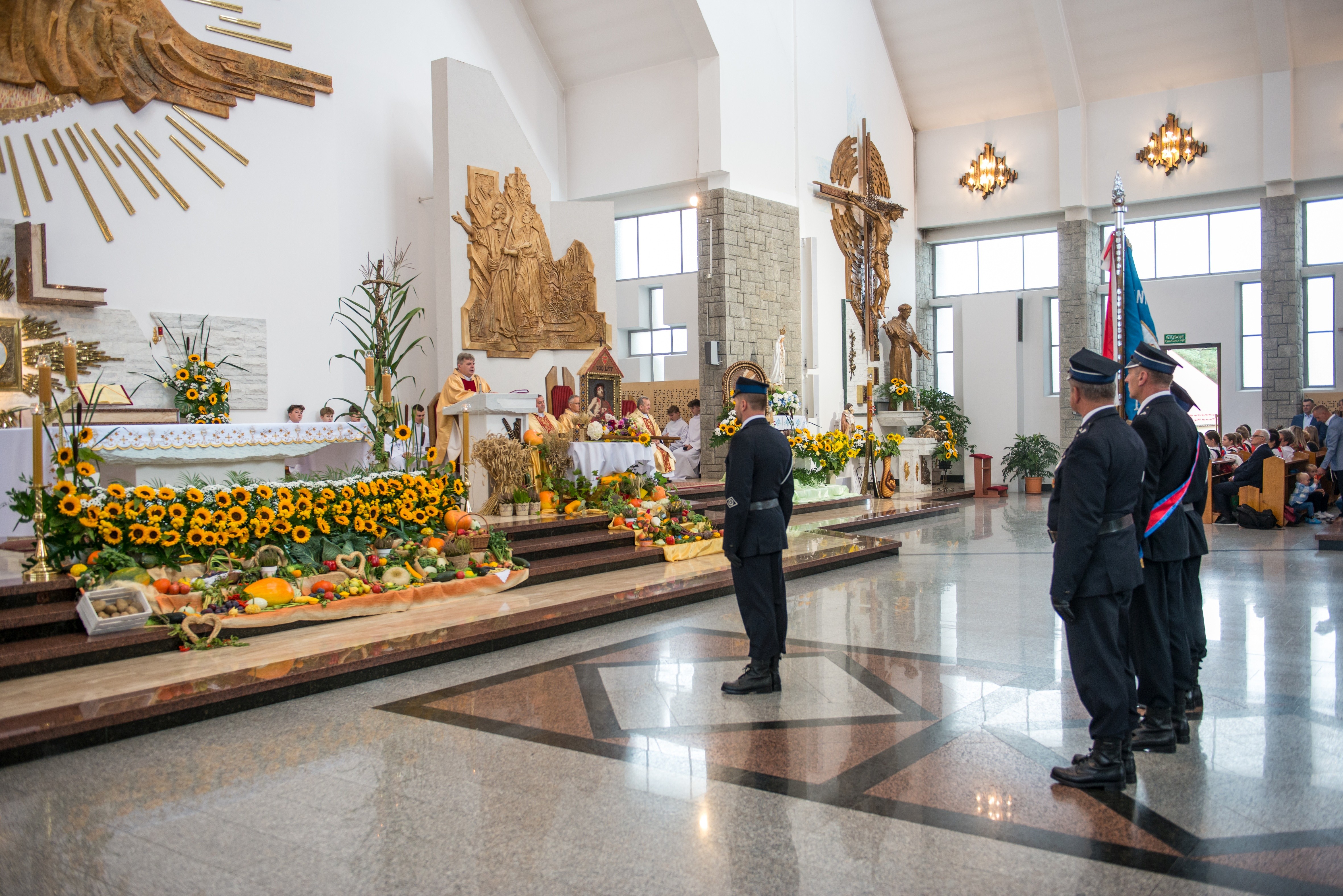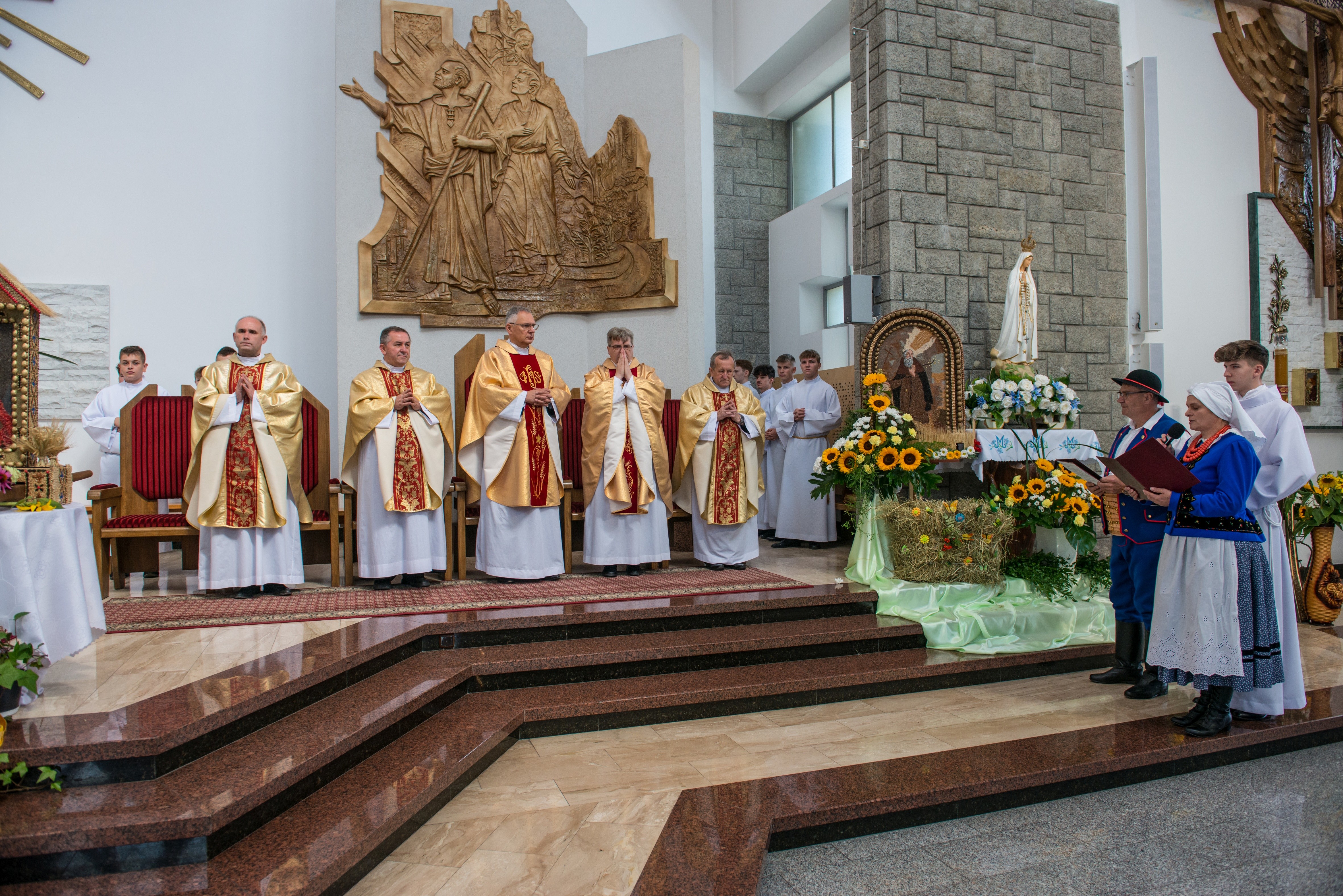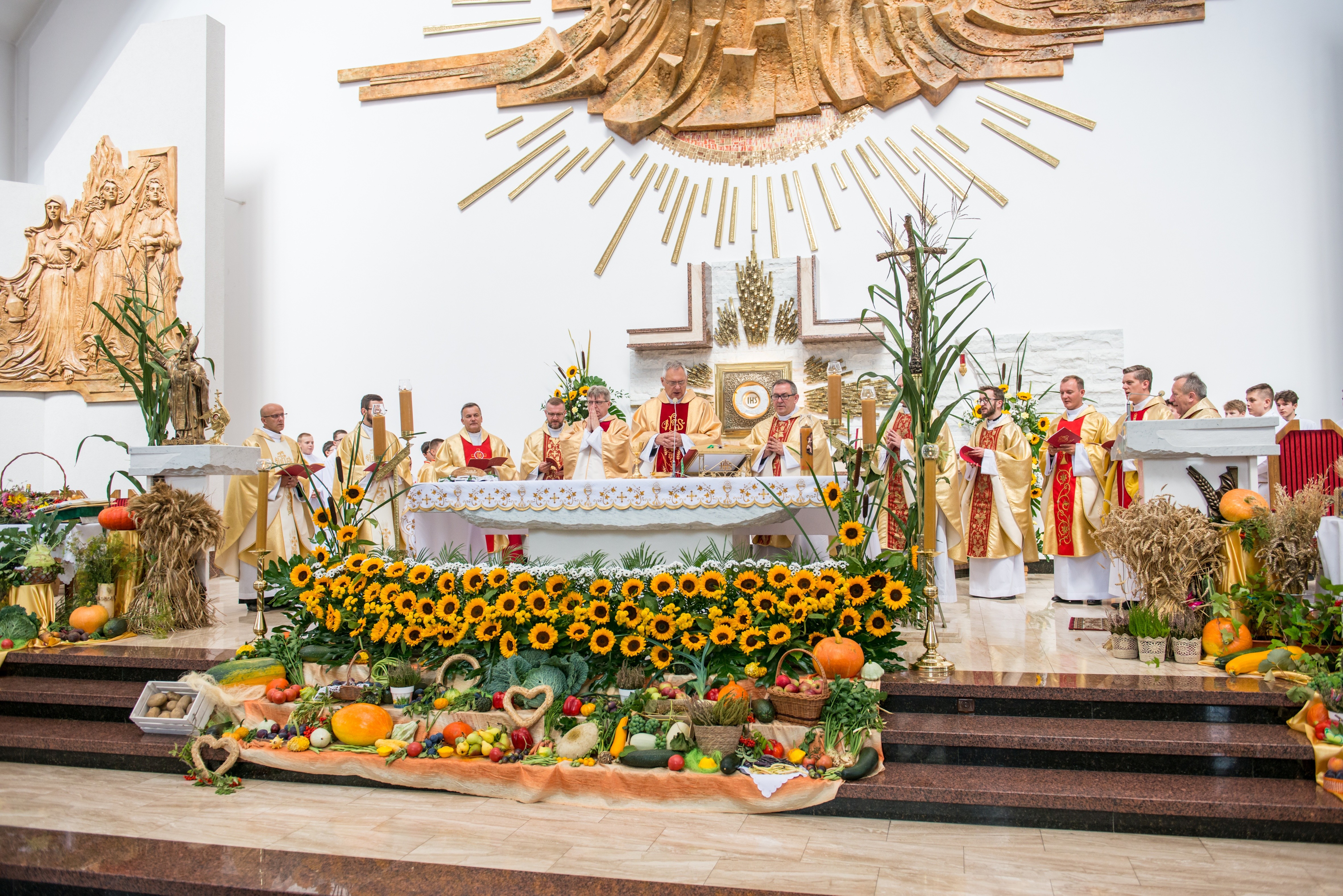 Mszy św. dożynkowej przewodniczył ks. prałat dziekan dr Wiesław Piotrowski. Uroczysta suma była początkiem wspólnego świętowania. Parafianie wdzięczni Bogu za tak piękny jubileusz stanęli na wysokości zadania i wszystko dopięte zostało na przysłowiowy ostatni guzik. Od pięknie przygotowanej liturgii, w którą licznie włączyli się przedstawiciele grup parafialnych, aż do przygotowania imprezy dożynkowej, w której udział wzięli nie tylko parafianie Męciny i zaproszeni goście, ale także osoby z sąsiednich miejscowości.