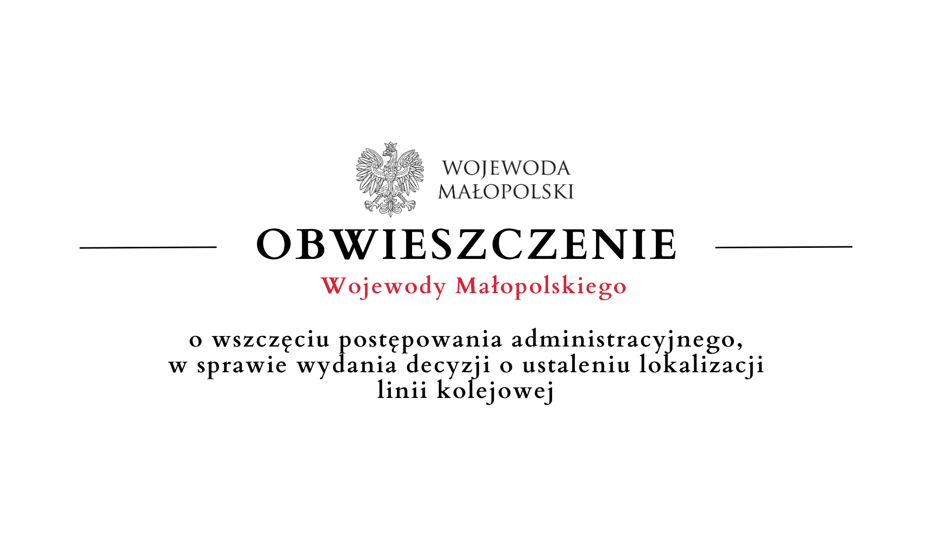 zawiadamia się, że zostało wszczęte postępowanie administracyjne, w sprawie wydania decyzji o ustaleniu lokalizacji linii kolejowej dla inwestycji pn.: Budowa układu drogowego wraz z rozbiórką budynku mieszkalnego nr 451 w km. proj. ok. 57+085 linii kolejowej nr 104 Chabówka – Nowy Sącz na odc . D w ramach projektu pod nazwą: „Budowa nowej linii kolejowej Podłęże – Szczyrzyc – Tymbark / Mszana Dolna oraz modernizacja istniejącej linii kolejowej nr 104 Chabówka – Nowy Sącz – Etap I: prace przygotowawcze”, na wniosek z 16 września 2025 r. złożony przez pełnomocnika reprezentującego inwestora: PKP Polskie Linie Kolejowe S.A. (ul. Targowa 74, 03-734 Warszawa).
