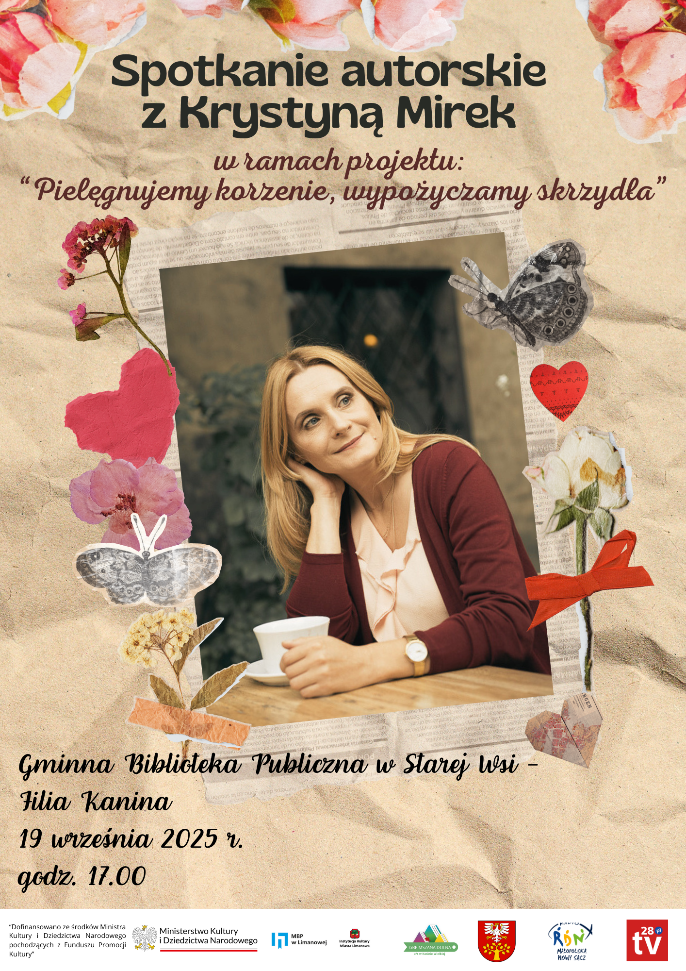 Spotkanie autorskie jest częścią projektu „Pielęgnujemy korzenie, wypożyczamy skrzydła”, realizowanego dzięki dofinansowaniu ze środków Ministra Kultury i Dziedzictwa Narodowego z Funduszu Promocji Kultury.
